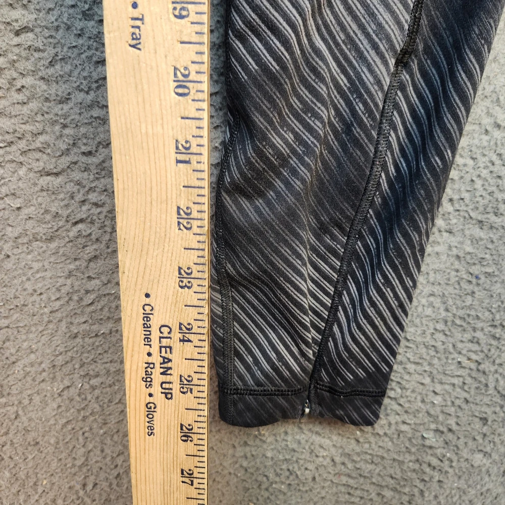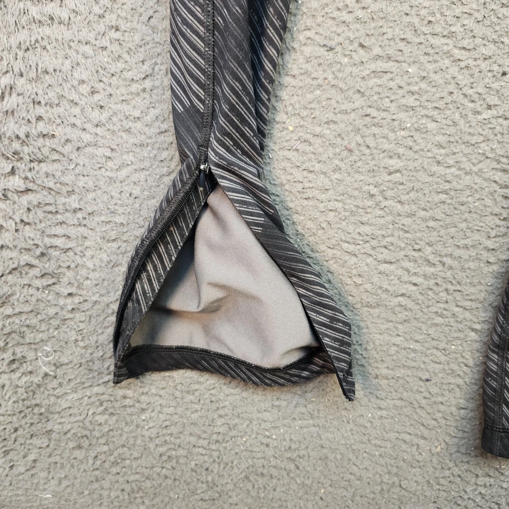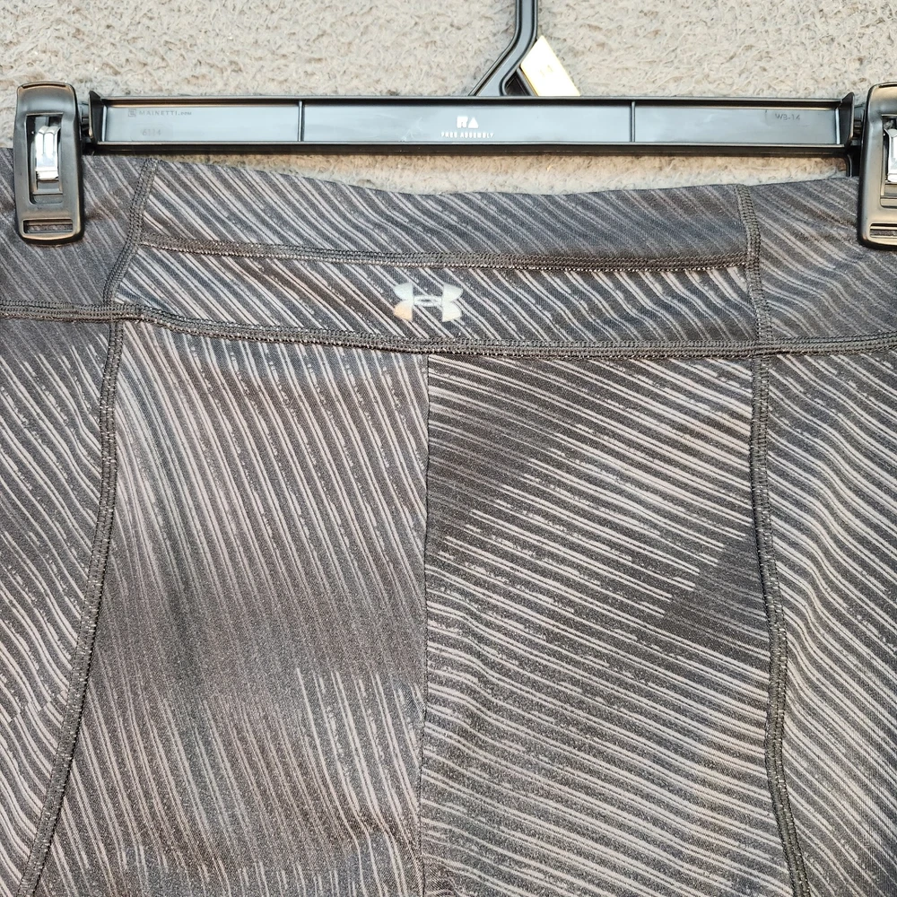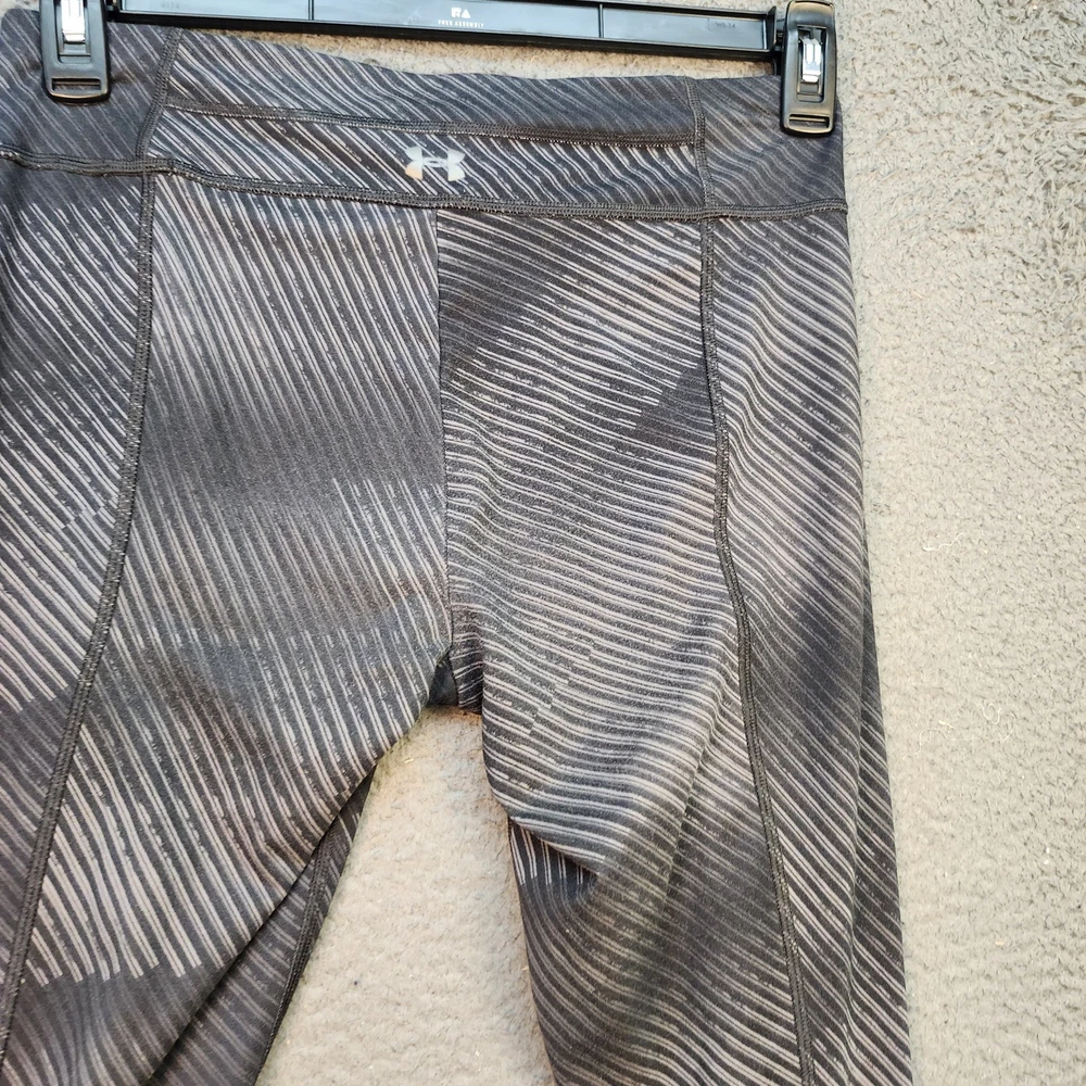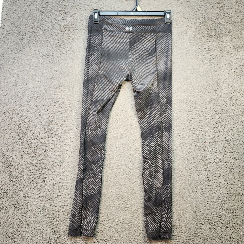 Under Armour Leggings Womens Small Black Gray Compression Running Athletic Pants Condition: Good pre-owned condition with light overall wear. No holes or stains noted. Black and gray with a geometric diagonal stripe pattern throughout Compression fit with stretchy performance fabric, great for running and athletic wear Full length with reflective details and ankle zippers for easy on and off Under Armour logo at the back waistband in silver Small internal waistband pocket for keys or essentials Flat waistband for comfort during workouts Tag size is Small, please refer to measurements for best fit Measurements (approximate): Waist laid flat: 13.5 in, Inseam: 27 in Material and country of origin tag not present