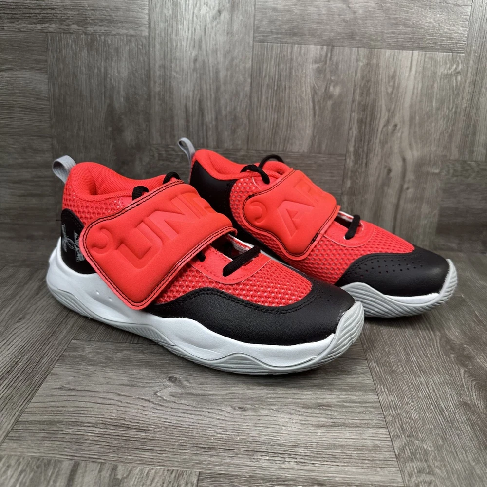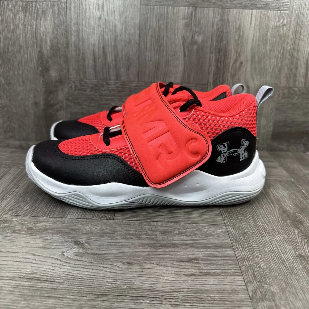 Elevate your young athlete's game with the Under Armour Zone BB 2 basketball shoes. Designed for the future stars of the court, these sneakers feature a sleek black colorway with vibrant red accents, providing an eye-catching style that's just as cool as their on-court performance. Crafted for basketball but versatile enough for any athletic activity, these shoes come in a unisex kids' size 2.5Y, ensuring a comfortable fit for developing feet. The durable construction and responsive cushioning ensure that every move on the court is supported with the same energy and spirit as their dreams.