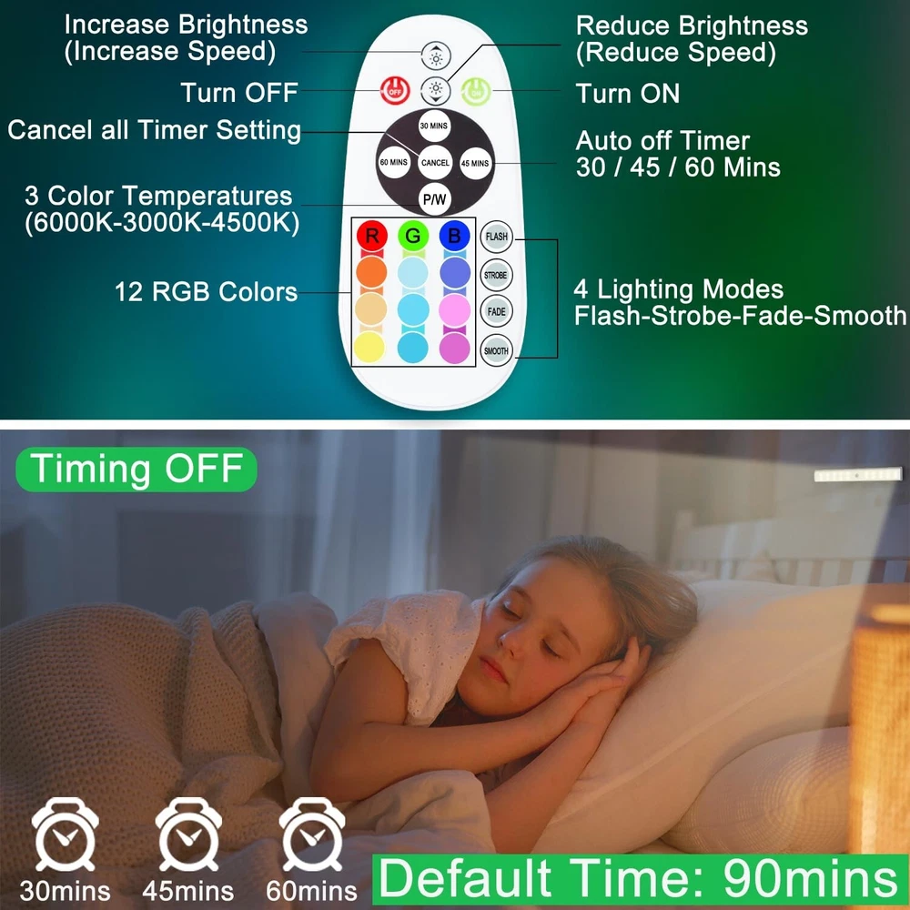 Under Cabinet Lights Wireless, Dimmable 48 LED Closet Lights Rechargeable, Under Counter Lighting with Remote, 15 Color Changing Night Light RGB Bar for Home Shelf Kitchen Pantry Stair, 4 Pack Description: Features: 15 Colors & 4 Dynamic Modes: 4 packs of RGB under cabinet lights wireless are available in 15 different colors (12 RGB colors and 6000K/4500K/3000K), measuring 7.5" L x 1.2" W x 0.6" H, The high brightness can reach 160 lumens. In addition to being able to be used as ambient light and emergency lighting, it can also be used as a mood light. 4 color changing modes - Flash, Strobe, Fade, Smooth. 12 RGB colors flash in a loop, you can use them together in different areas to create a fun mood. Remote Control Cabinet Light: Each set comes with 1 remote control, remote control can easily operate multiple lights within 10-15 feet range. Convenient and time-saving, the remote control has functions such as switching lights, color changing, dimming, timing, etc. In "ON" mode, the remote control can be used, and in "OFF" mode, the power is off. (Warm Tip: The wireless cabinet lights no induction function). USB Rechargeable & Super Easy to Install: Wireless LED closet light built-in 3.7V 1100mAh rechargeable battery, no need to replace battery, save power and money, it takes 2-3 hours to fully charge. After full charged, it can be last 8-9hours in RGB mode (In ON mode: 7-8H). Under cabinet lighting is equipped with sticky magnetic strip, remove the tape and stick it on any clean surface, easy to install, no screws or wires required, is a good choice for temporary and permanent installation. Dimming & Timing: The best choice for bedroom night lights, 10-level of brightness (10%-100%), low brightness to meet the brightness needs of your sleep, high brightness to meet the brightness you need for work, under-counter lights fixture can be set to auto-off after 30, 45 or 60 minutes, if you do not want to set the timer, press the CANCEL key to cancel all timer settings, and you don't have to worry about forgetting to turn off the cabinet lights even if you fall asleep or go out. Widely Use & Guarantee : We provide Lifetime quality assurance, if you have any questions about our products, please feel free to contact us, we will reply you within 24 hours. This rgb led under cabinet lighting is perfect for your cupboard, closet, cabinet, stairs, bedroom, kitchen, pantry, bookcase, bathroom, hallway, stairs, basement, garage, pantry, stair, workshop, storage, shelf, bookcase, display cabinet, wardrobes, etc. Product Details: Brand: LAJOSO Color: 12 RGB Color & 6000K/4500K/3000K Material: Aluminum Style: Remote Control Lights/ 4 Pack Light fixture form: Sconce Brand: LAJOSO Color: 12 RGB Color & 6000K/4500K/3000K Material: Aluminum Style: Remote Control Lights/ 4 Pack Light fixture form: Sconce Room Type: Living room, Cupboard, Closet Light, Bookcase Lighting, Wardrobes, Cabinet, Closet, Stairs, Display Cabinet, Kid's Room, Garage, Workshop, Storage, Shelf, Bookshelf, Stairway, Pantry, Party, Entryway, Kitchen Lights, Bathroom, Basement, Bedroom, Hallway, Product Dimensions: 7.28"L x 1.18"W x 0.59"H Specific Uses For Product: gun safe light, tap light, rechargeable under cabinet lighting, under counter lights for kitchen, home, cabinet lights, stick on lights, kitchen cabinet lights Indoor/Outdoor Usage: Indoor Power Source: Built in 1100 mAh Rechargeable Lithium Battery Installation Type: Magnetic strip Special Feature: Indoor Use Only, Under Counter Lights for Kitchen, Wireless Under Cabinet Lights, Under Cupboard Lighting, LED Strip Lights with Remote, Rechargeable Closet Light, 15 RGB color night light bars, Dimmable, Portable, Color Changing, Portable, Adjustable Color Temperature, Multi Colored Under Cabinet Lights Control Method: Remote Light Source Type: LED Finish Type: Polished Shade Material: Aluminum Number of Light Sources: 48 Voltage: 5 Volts Light Color: 6000K White light, 3000K Warm light, 4500K Natural light, 12 RGB colors Shape: Straight Included Components: 1 x remote control, 1 x user manual, 4 x charging cables, 4 x magnetic strips, 4 x wireless under cabinet lights Warranty Type: Lifetime Lighting Method: Adjustable Brightness Item Weight: 16 ounces Number of Items: 4 Wattage: 2 watts Controller Type: Remote Control Switch Type: remote control/touch control Unit Count: 4.0 Count Water Resistance Level: Not Water Resistant Brightness: 160 Lumen Mounting Type: Double-sided adhesive magnetic strip paste Fixture Type: Removable Assembly Required: No Manufacturer: LAJOSO UPC: 712215624765 Model Name: RD10 4 Pack Part Number: RD10 Item Weight: 1 pounds Country of Origin: China Item model number: RD10 Batteries: 1 Lithium Ion batteries required. (included) Size: Remote Control Lights 4 Pack Finish: Polished Plug Format: ac Special Features: Indoor Use Only, Under Counter Lights for Kitchen, Wireless Under Cabinet Lights, Under Cupboard Lighting, LED Strip Lights with Remote, Rechargeable Closet Light, 15 RGB color night light bars, Dimmable, Portable, Color Changing, Portable, Adjustable Color Temperature, Multi Colored Under Cabinet Lights Batteries Included?: Yes Batteries Required?: Yes Battery Cell Type: Lithium Ion Average Battery Life: 50000 Hours Warranty Description: 1 year. Date First Available: March 9, 2022 On Nov 20, 2024 at 19:55:28 PST, seller added the following information: