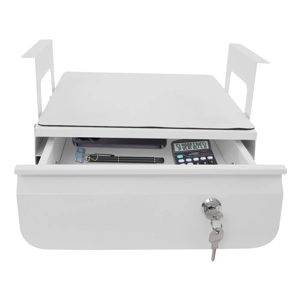 Have a nice day~ Description This sliding pull-out drawer is very suitable for use in offices and study rooms. Premium material and exquisite workmanship ensure its beauty and durability. The pull-out design makes accessing files and items simple and convenient, and the locking design can better protect your privacy. Its large size provides enough space to organize your items and keep your office and study environment tidy. With it, you will enjoy a more convenient life. Key Features Last for Years: It is made of premium steel with welding and painting processes, which is scratch-resistant, abrasion-resistant, rust-resistant , and sturdy, ensuring aesthetics and long-term use. Excellent Organizer: The 11.5*14.3-inch large drawer, top additional platform, and 4.4 lbs proper load capacity provide enough space and ability to store various files and items. Space Optimization: Its under-desk mounting method utilizes the under-desk space cleverly to expand the storage space to keep your desktop clean and organized. User Friendly: The smooth sliding device and embedded handle design allow you to pull out the drawer easily and quietly, making it more convenient to access items. Moreover, the lockable design can better protect your privacy, ensuring the security of your personal belongings and confidential documents. Simple Installation: With complete accessories and a simple structure, you can easily install it and put it into use quickly! Easy to Clean: It has a simple construction and smooth surface, so you can wipe the stains off its surface with a damp rag. Ideal Gift: Thanks to its practicality and beauty, you can give it to your friends as a Christmas or housewarming gift! Modern Appearance: The simple and elegant style, as well as the classic white color, make it compatible with various drawer styles and enhance the overall beauty. Details Rounded Corners: This design is comfortable to touch, can care for your skin, and enhances the design of this product. Spare Key: It has two keys and you can use one as the spare key for emergency use. Rubber Pad: It can effectively prevent slipping and improve the safety of item placement. Application It is installed under the tabletop and can store various items, such as books, iPads, phones, pens, pencils, glue, erasers, adapters, earphones, cosmetics, or other small items used regularly. It fits both standing desks and standard fixed-height workstations. Specification Color: White Shape: Rectangular Material: Steel, Rubber Process: Welding, Painting Assembly Required: Yes Mounting Type : Under Desk Applicable Min. Desktop Thickness: 20mm/0.79in Load-bearing Capacity: 2kg/4.4 lbs Desk Bottom to Drawer Top: 8.38cm/3.3in Each Mounting Bracket Length: 17.78cm/7in Each Mounting Bracket Height: 18.3cm/7.2in Installed Bracket Spacing : 33.27cm/13.1in Drawer Size(L*W): 29.21*36.32cm/11.5*14.3in Package Size: 38.5*32*6cm/15.16*12.6*2.36in Gross Weight: 4.7kg/10.36 lbs Net Weight: 4.2kg/9.26 lbs Package Included 1* Under Desk Pull-out Drawer 2* Keys 1* Pad 2* Mounting Brackets Other Accessories for Assembly Notes Please measure your desk size before purchasing. Please ensure that your desk can support the total weight of the drawer and its load capacity. Please allow the slight color difference caused by the shooting light and 1-3cm error due to manual measurement and make sure you do not mind before ordering. Payment Delivery details Terms of sales About us Contact us Payment We accept ebay payment 。 Fees such as import duties, taxes are not included in the item price or shipping costs. These charges are the buyer's responsibility. Delivery details Shipping: 2-9 working days to: USA Terms of sales We maintain high standards of excellence and strive for hundred percent customer satisfaction. Feedback is very important to us. We hope that you contact us immediately before you give neutral or negative feedback, so that we can address your concerns. It is impossible to address issues if we do not know about them! About us Your satis faction is our ultimate goal. We work hard to earn your trust and future business. Our certified technicians have tested each item before shipping. The unit comes with 1 year limited warranty on all manufacturing defects. a) If you receive a defective item, you may return it or ask for a discount. Please contact us within 14 days after you receive the package. b) What you returned must be intact and in its original packaging as re? u. Customer is responsible for shipping costs of the returned item. c) We will cover the cost of shipping back t with the shipping rate indicated in the registration page. We will send you a new unit or refund the full payment you paid. Thank you. Contact us Business Hour Business Hour: Monday To Friday: 8:30 AM to 5:00 PM (Beijing China time) Due to time zones, our reply to your questions may not be immediately. But within above working time, we will reply your email within 24 hours. If it's non-workdays, please kindly be patient and wait till Monday. Please contact us with ebay message. Please feel free to contact us if you have any questions. Monday To Friday: 8:30 AM to 5:00 PM (Beijing China time) Due to time zones, our reply to your questions may not be immediately. But within above working time, we will reply your email within 24 hours. If it's non-workdays, please kindly be patient and wait till Monday. Please contact us with ebay message. Please feel free to contact us if you have any questions.