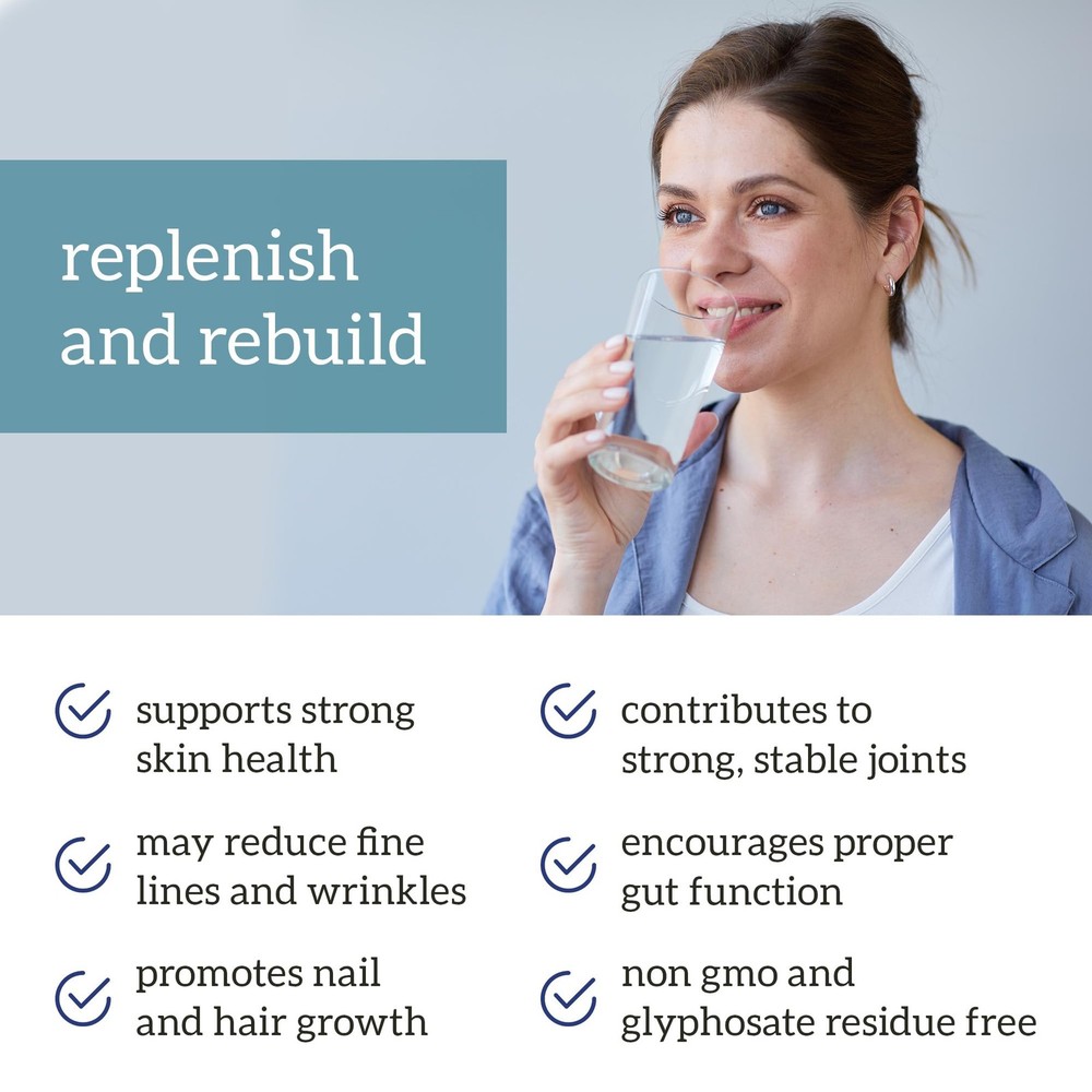 Collagen is a premium supplement enriched with hydrolyzed collagen peptides that offers whole-body replenishment. With a blend of multiple collagen peptides, Collagen has hair, skin, nails, digestion, and more total-body health benefits. Choose Collagen for a premium collagen supplement that goes beyond traditional expectations. Elevate your health journey with our collagen supplements, meticulously crafted to promote vitality and radiance. Experience the difference today! The Science Behind High-Quality Collagen Peptides Powder: At around 30 years old, our collagen fragments and fibroblast function lose steam, leading to decreased collagen production. Collagen's 19 different essential and nonessential amino acids, the building blocks of protein, can counter this. After the body breaks down these amino acids, it distributes them throughout the body for multiple health benefits. Radiant Skin, Stronger Nails, and Fuller Hair: Helping replenish and rebuild the body's most abundant protein is how Collagen supports skin health and promotes nail and hair growth. Collagen creates the infrastructure for elastin and hyaluronic acid, which are responsible for skin's elasticity and hydration, and repairs broken down skin fibers, or cellulite. Consuming high-quality collagen helps feed your hair nutrients to keep it thick and shiny. Collagen Helps You Glow: Adding collagen protein powder to your daily regimen can reduce fine lines and wrinkles, especially when you pair it with Glow. Glow, 's natural collagen support supplement, has 12 plant-based superfoods to promote natural collagen creation in the body. Together, Collagen and Glow can help you maximize collagen's benefits, including prolonging your youthful appearance. 5 Collagen Types, 4 Real Food Ingredients: Hydrolyzed bovine hide collagen peptides, eggshell membrane collagen, hydrolyzed fish collagen peptides, and chicken bone broth protein concentrate are Collagen's 4 real food ingredients. Combined, they offer 5 types of collagen: Types I, II, III, V, and X. Contributing to the World We Live In: ’s top-quality blends are shared across the globe. We started with a simple idea to make nutrition easy and delicious for everyone. This turned into a mission to unite the world through community, wholeness, and habit transformation.