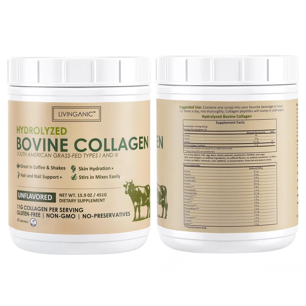 Unflavored Hydrolyzed Bovine Collagen Peptides Powder 15.9oz with 41 Serotypes