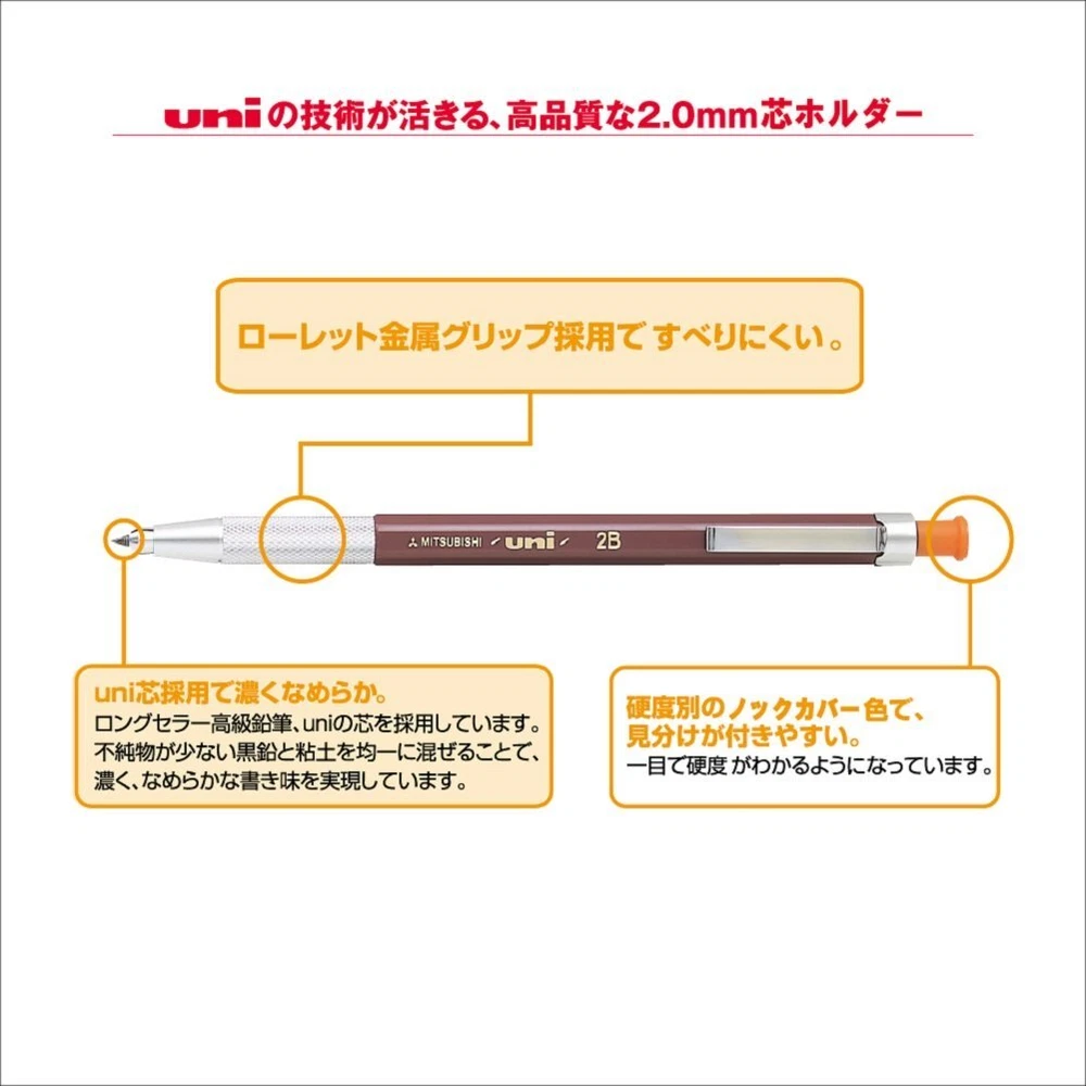 Finest writing instruments/ stationary products from Japan, lead drop holder Type Pencil, Roulette grip, for 2B 2. 0mm Lead drop holder type Pencil Roulette grip For 2B 2. 0mm