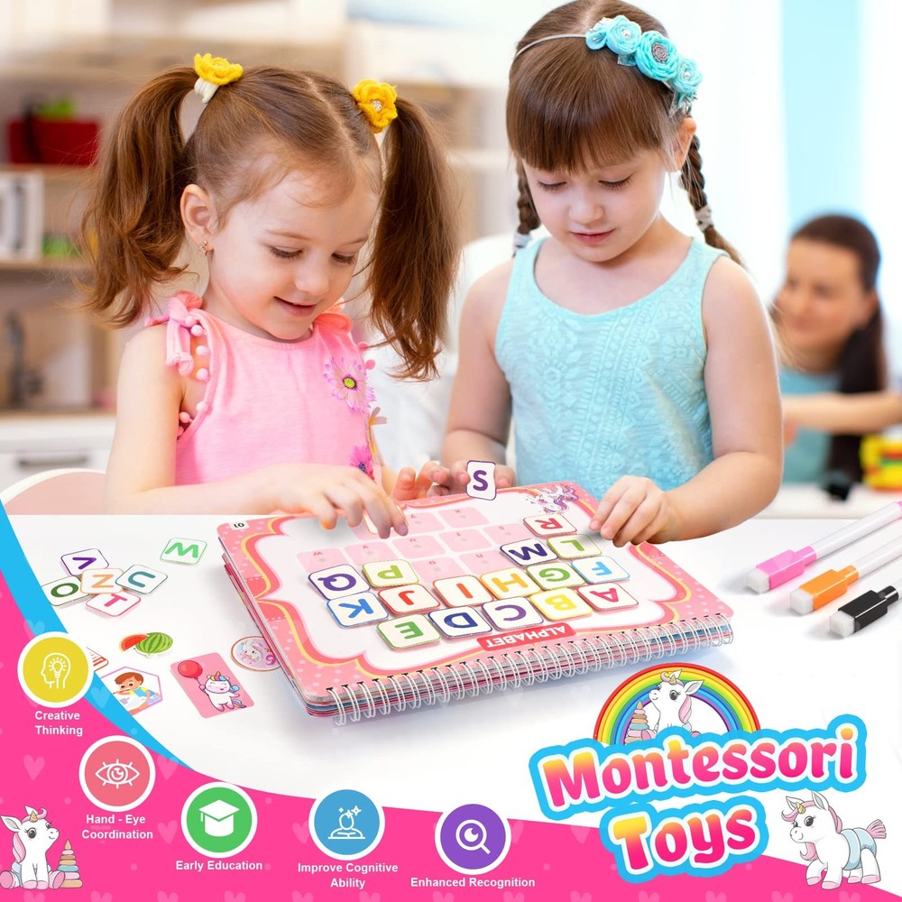 Features: NEWEST VERSIONMY UNICORN BUSY BOOK is the newest version of the busy book.Engaging illustrations, vivid velcro and fantastic doodle pages are some of the different elements that always attract children to learn new things. SUPER THEME BUNDLEWith 30 pages of high quality content, the busy book has a wide variety of learning topics and covers a wide range of knowledge.Not only can children learn about numbers, letters, colours and other knowledge represented in patterns, but they can also write and express themselves as they wish on the doodle pages. EDUCATIONAL TOYSThe bright colours of the busy book entice children to get their hands on it and complete it.This process will help to improve children's hand-eye coordination, creativity and imagination. SAFETY DESIGNThe material of the busy book is non-toxic and harmless, and the rounded corners are designed for the safety of children at all times.We have also included a storage bag for easy storage of the book and Velcro. IDEAL GIFTThe newest edition of the busy book has a very wide range of themes, vibrant colours and beautiful packaging.This would be a very good choice as a gift or toy for a child.Parents can build stronger bonds of communication with their children together.