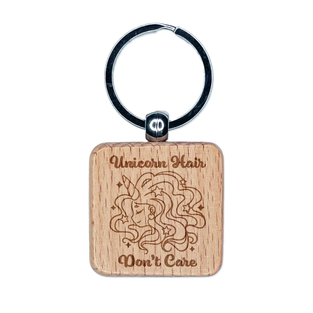 Unicorn Hair Don't Care Engraved Wood Square Keychain Tag Charm