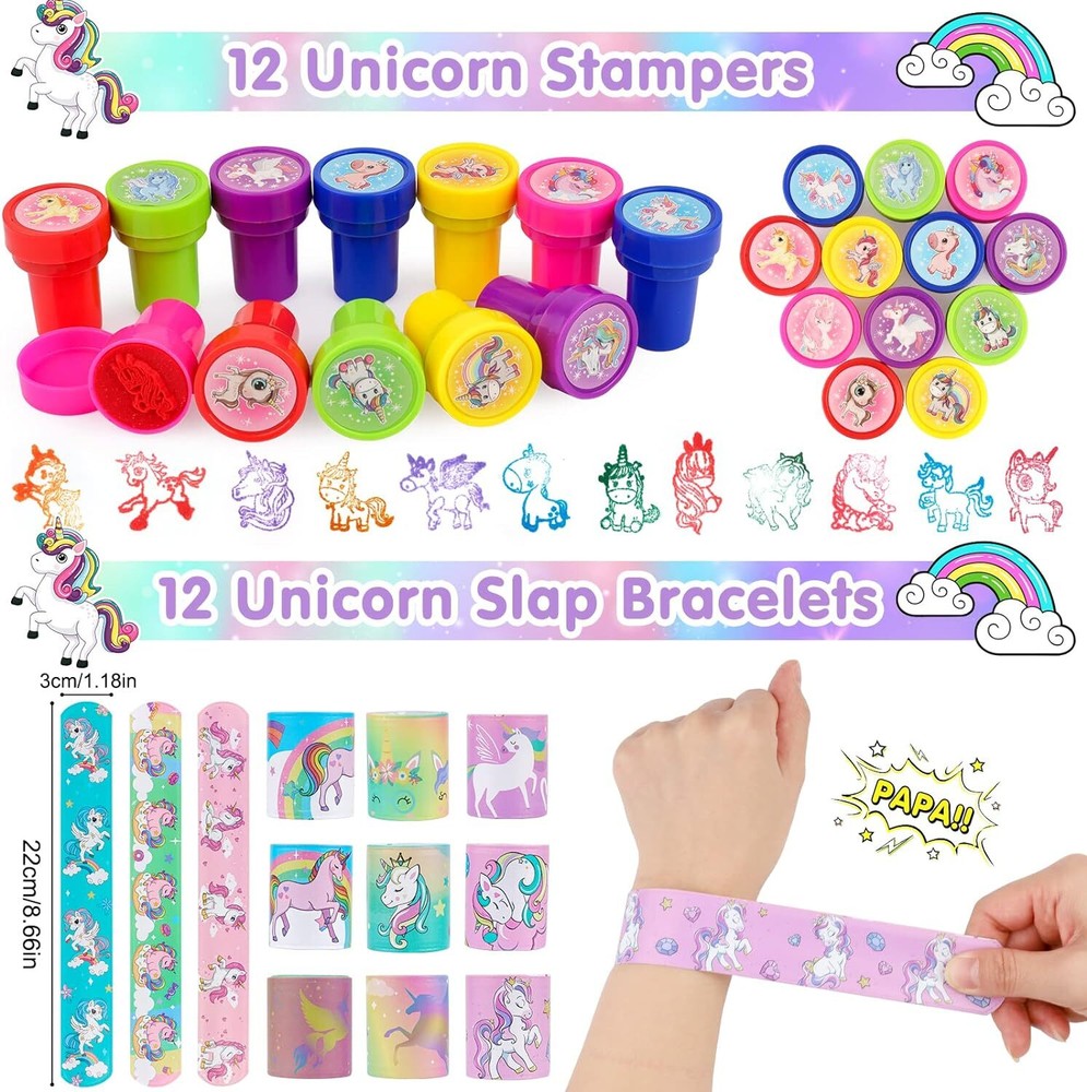 Free eBay listing template designed by dewiso.com Unicorn Party Favors for Boys and Girls, 134 Pcs Unicorn Birthday Party Supplies Unicorn Gifts Pinata for Birthday Girls Age 3-5, 6-8, Unicorn Party Favors Bags Treat Bags for Graduation, Birthday FREE AND FAST SHIPPING! About this item 8 STYLE UNICORN FAVORS FOR 12 KIDS - 134Pcs unicorn party bags fillers Includes 12 unicorn party favor goody bags, 12 unicorn slap bracel*ts, 12 rainbow scratch paper, 12 unicorn keychains, 12 unicorn riings, 12 unicorn stampers, 12 unicorn squishy toys, 50 unicorn stickers. SAFE PARTY SUPPLIES FOR KIDS - Our unicorn party favor gifts for boys girls are safe, non-toxic, round edges, so there is no need to worry about been scratched, kids can play with confidence. ALL IN ONE UNICORN PARTY FAVORS - You can put all the items into the goodie bag seperately and offer a speical take-home gift for little ones. This party pack also saves you the trouble of going to number of stores to collect these items. Ideal goodie bag fillers for unicorn themed party. MAKE AN IMPRESSIVE UNICORN BIRTHDAY PARTY - Our unicorn party favor pack is designed from bright colors and variety of cute unicorn style cartoon images, will definetly add more fun to your unicorn birthday party! IDEAL UNICORN GIFT FOR GIRLS KIDS - Perfect for unicorn themed party favors, unicorn party supplies, unicorn valentines day party favors, Easter egg fillers, classroom exchange party favors, pinata fillers, Birthday party favors, game Prizes and goodie bags stuffers. Product We offer a 30-Day Return Policy on items which you are not completely satisfied with. You have the option for a full-refund or an exchange of the item. No returns are available on items shipped outside of the US . Shipping We offer Free Shipping to the US and ship within 2 business days of payment, usually sooner. We use UPS express shipping. That's why your products are usually delivered within 3 days . Contact We try our very best to make sure every customer is completely satisfied. If there's a problem , message us! We're happy to help. 24/7 live chat available.