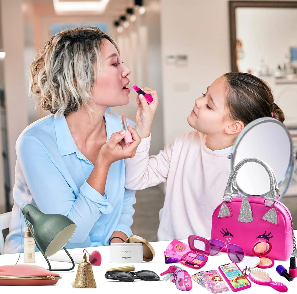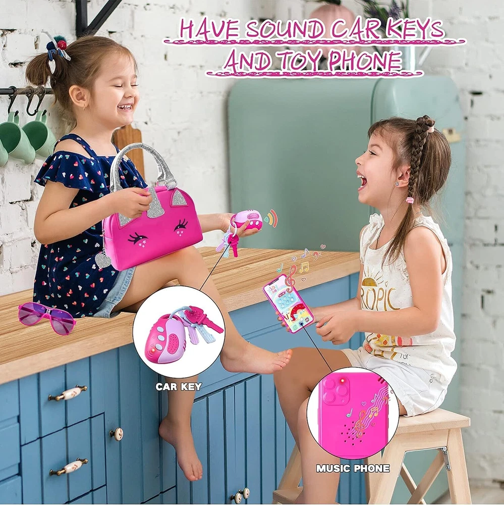 Unicorns Pretend Play Toddler Girl Purse with Makeup Toys Set Little Girls Purse