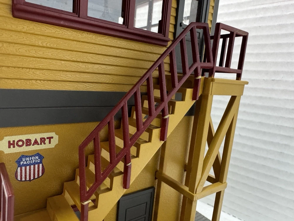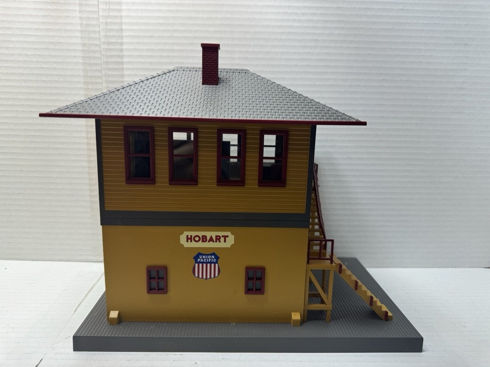 Rail king o gauge Union Pacific switch tower. No .30-9048. In good condition and original box, although please see pictures as some of the step railings are missing and the other ones are pushed to the side. If you have any questions, please feel free to message me. Thank you and have a good day.