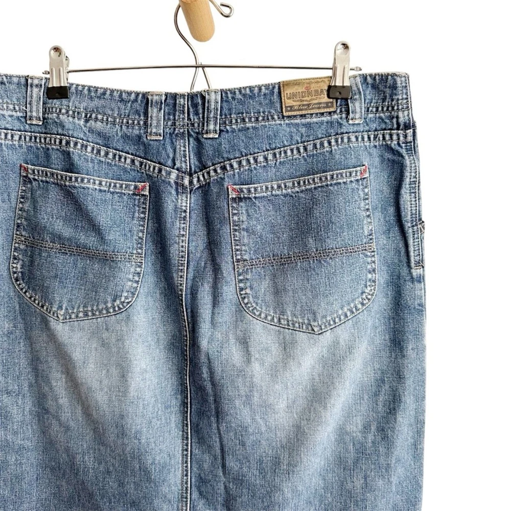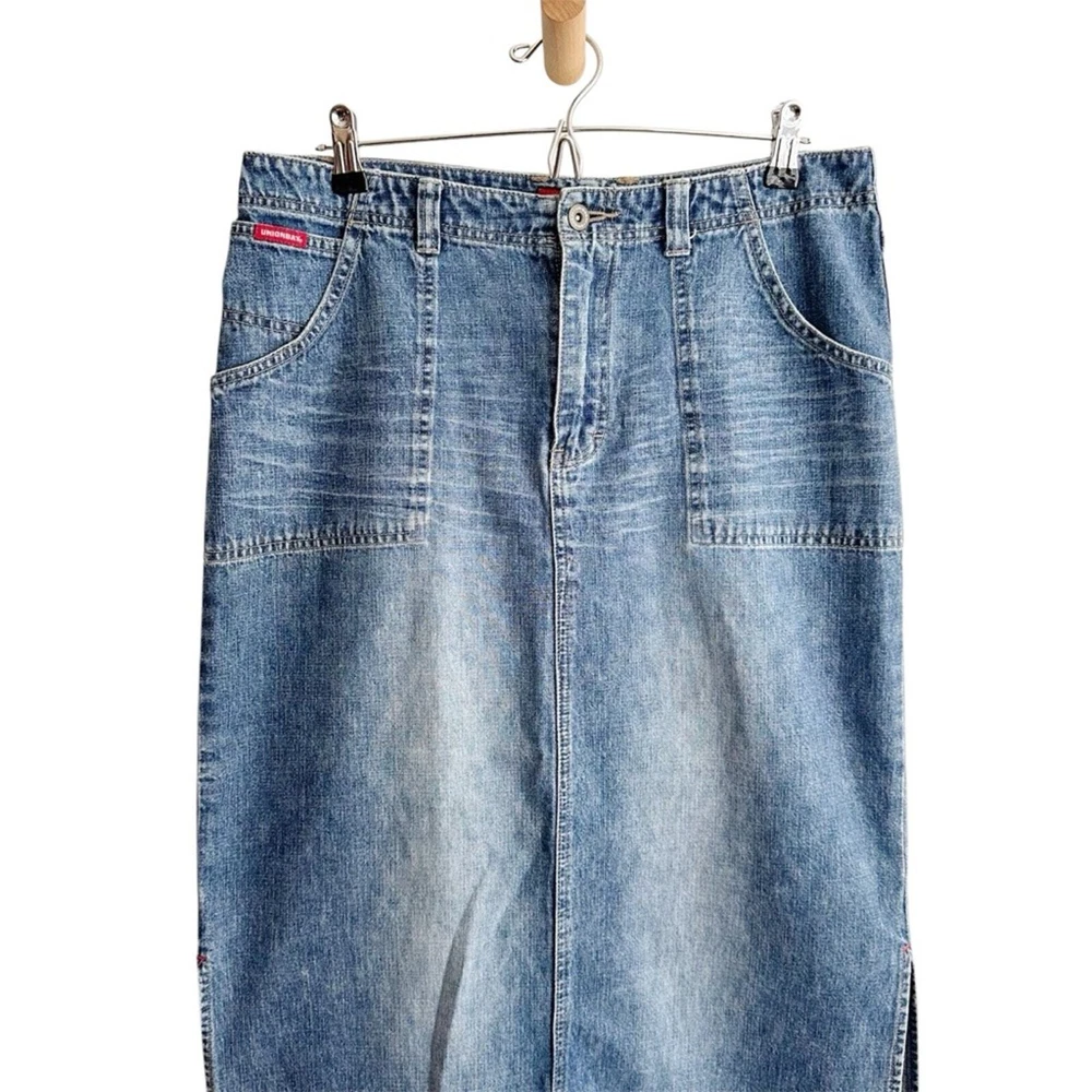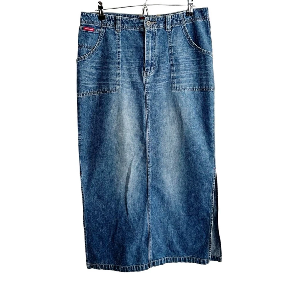 Unionbay Vintage y2k Maxi Denim Skirt with Side Slits Low Rise Cotton Factory Fading Side slits 100% Cotton Size: 11 Excellent pre owned condition, no flaws, see photos