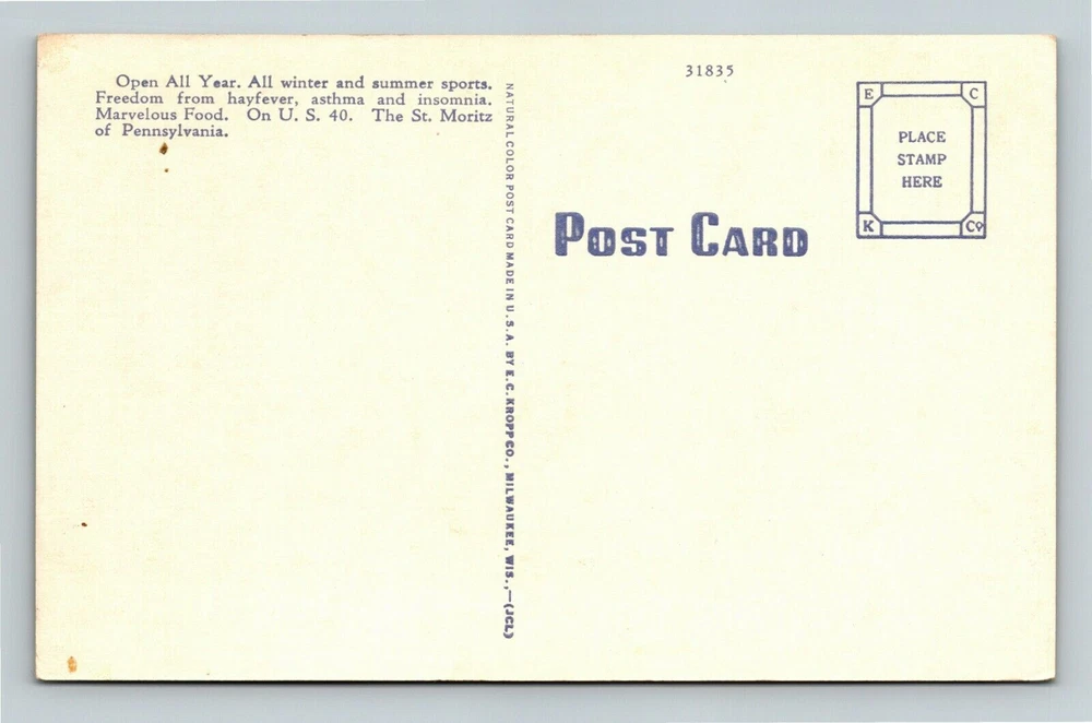 Uniontown PA-Pennsylvania, Summit Hotel, Mount Summit Vintage Souvenir Postcard