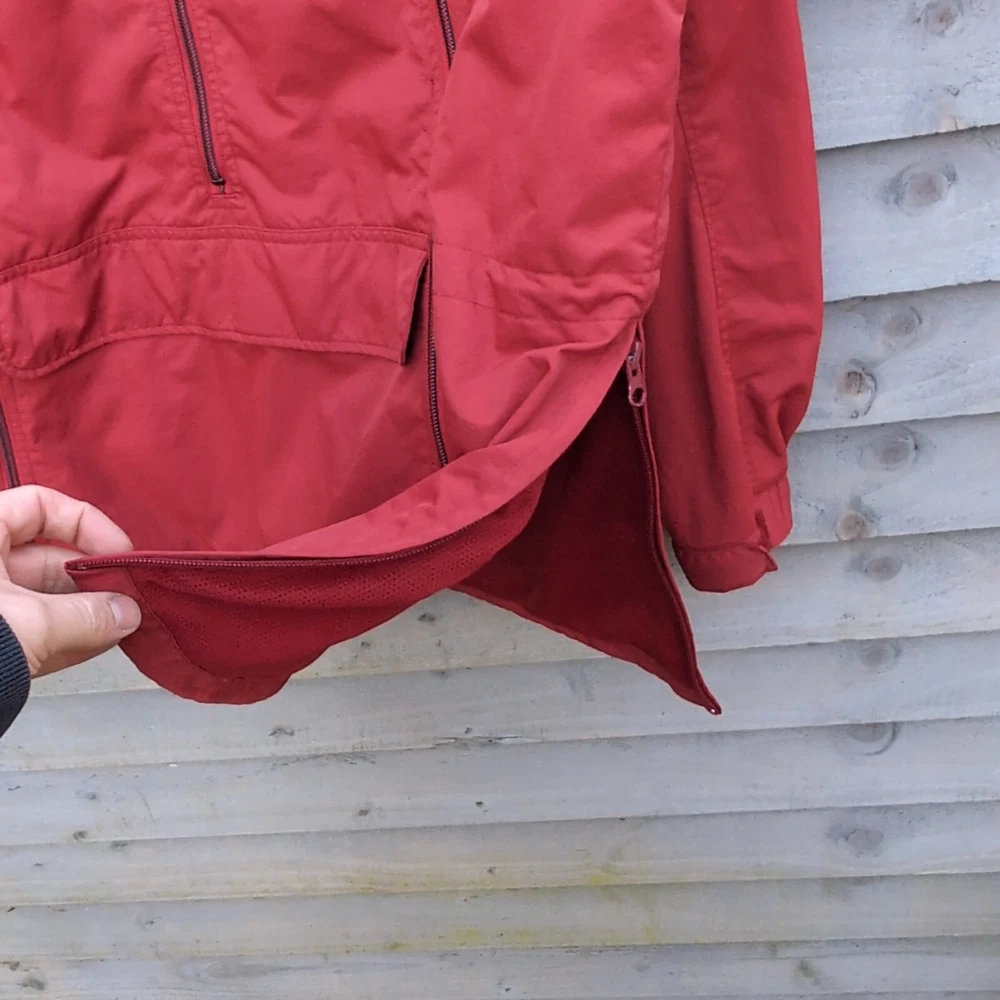 Uniqlo Avant Garde Red Zipper Style Anorak Rain Jacket Vintage early 2000s Y2K era Mens Medium Oversized Pit to pit 26" | Length 31" In overall good vintage preloved condition with just a slight mark area to the front (Pictured)