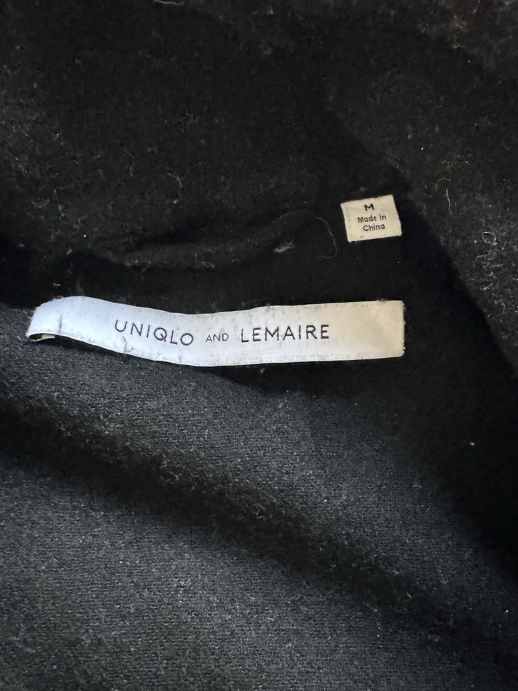 The Uniqlo Lemaire Black Wool Cashmere Size M Buttonless Coat is a stylish and versatile outerwear option for men. Made with high-quality wool and cashmere, this coat is perfect for keeping warm during the winter season. The sleek black color and buttonless design add a modern touch to the classic overcoat style, making it suitable for casual occasions. With its reputable Uniqlo brand and comfortable size M fit, this coat is a must-have collectible for any fashion-forward individual looking to elevate their wardrobe.