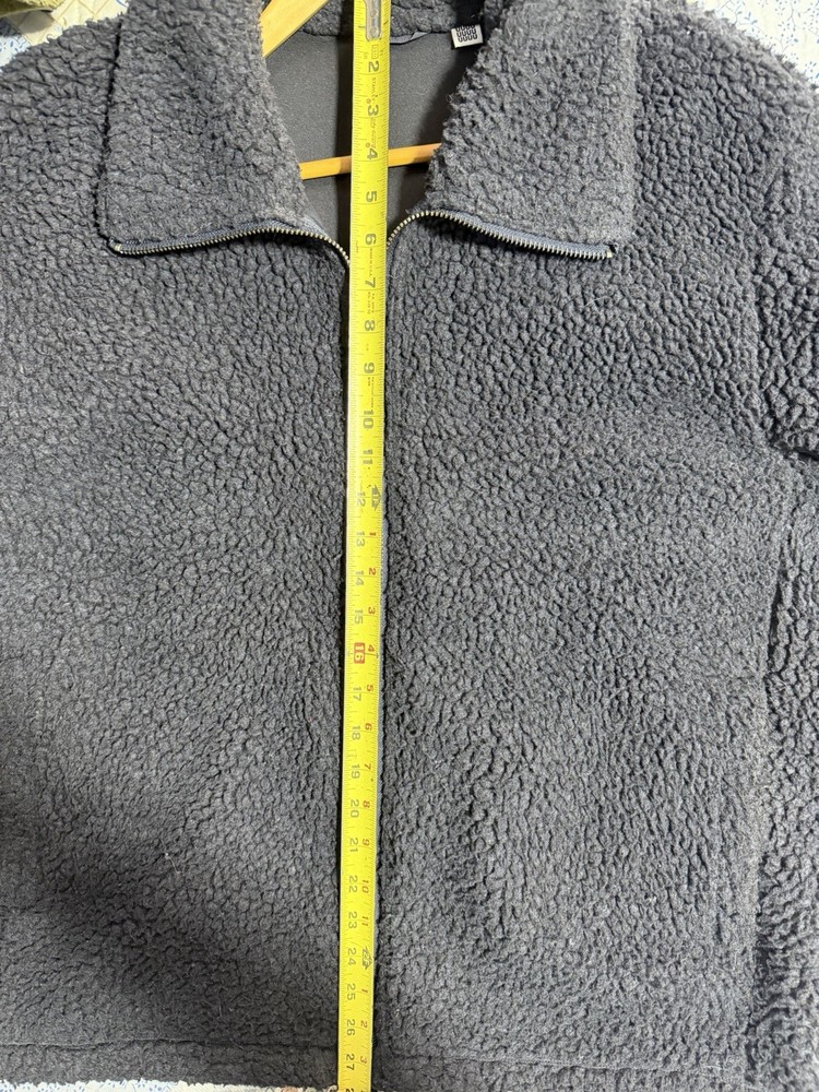 Uniqlo U fleece jacket from 2017 collection pretty good condition and really warm , versatile jacket the collar zips full can be worn up or like a regular collar and is a good heavy weight jacket when layered is very warm.