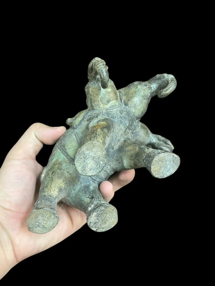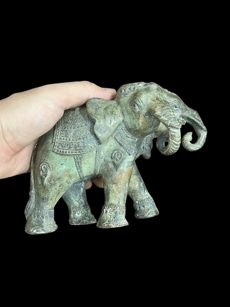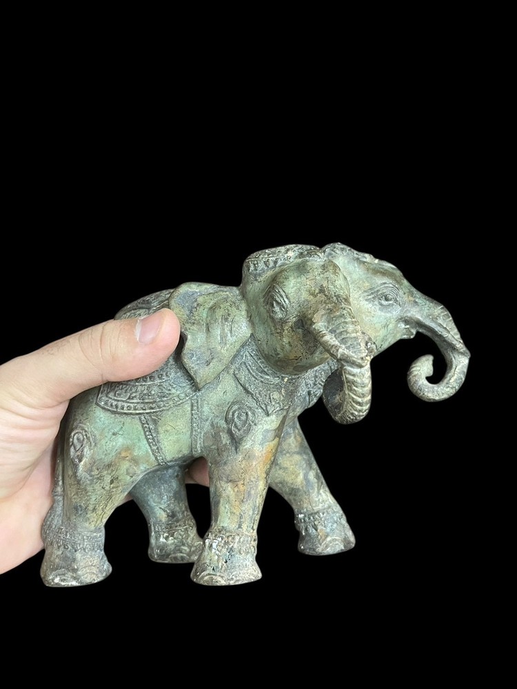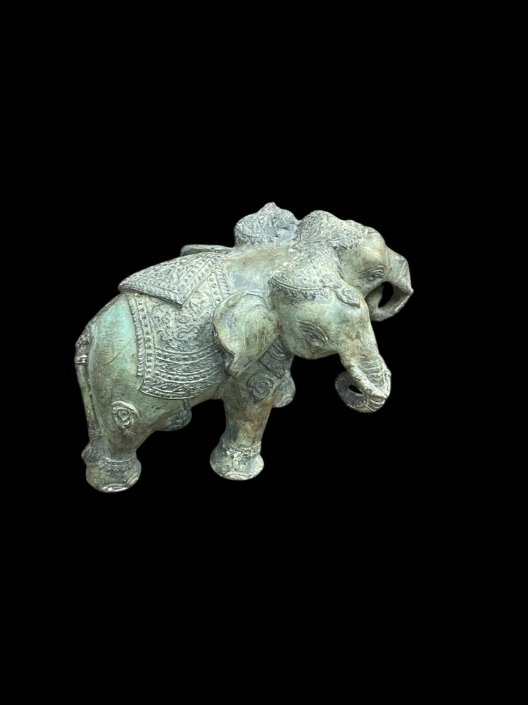 This unique Ancient Indo Greek bronze statue features a three-headed elephant, showcasing the intricate craftsmanship and artistic style of the period. Made of bronze, it is an original piece that captures the essence of ancient artistry. The statue's depiction of the mythical creature adds a touch of mystique and historical significance to any collection or display.