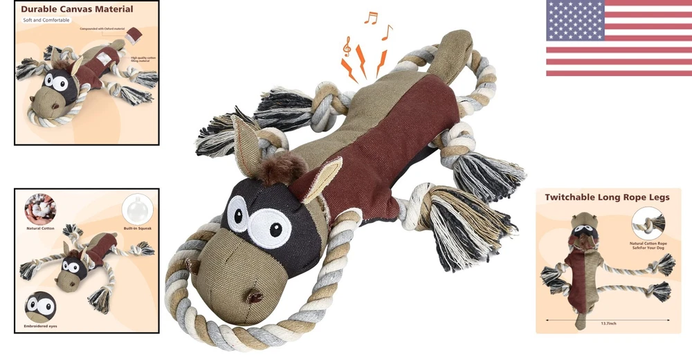 Unique Donkey Design Dog Toy - Relieves Boredom and Promotes Dental Health ‹ › ‹ › ‹ › ‹ › ‹ › ‹ › ‹ › ‹ › ‹ › Unique Donkey Design Dog Toy -Relieves Boredom and Promotes Dental Health Features: Made with double-layer fabrics compounded with high temperature and pressure Outer layer is made of upgraded soft and durable canvas Inner layer is made of high-strength and thicker oxford cloth Stuffed with organic cotton Large size - 13.3*9 inch Long twitchable ropes with length 13.7 inch Built-in squeaker for extra excitement Designed in the shape of a donkey Hand embroidered eyes, nose, and mouth for durability Machine washable Benefits: Durable and safe for puppies, small, medium, and large dogs Perfect for tug of war and interactive games Relieves boredom, anxiety, and depression in dogs Promotes dental and oral health Helps control weight through exercise Unique design for added fun and entertainment Machine washable for easy cleaning Why choose our Unique Donkey Design Dog Toy? Looking for a durable and entertaining toy for your furry friend? Our Unique Donkey Design Dog Toy is the perfect choice! Made with high-quality materials and designed to promote dental health, this toy is safe and fun for dogs of all sizes. With long ropes for interactive play and a built-in squeaker for extra excitement, your dog will never be bored again. Plus, the unique donkey design adds a touch of whimsy to playtime. Don't settle for boring dog toys - choose our Unique Donkey Design Dog Toy for hours of fun and dental health benefits! Shipping Free & Fast Shipping - We offer free shipping to most of the USA with a normal delivery time of 3-7 days. However, due to the current situation, additional delivery time (up to 3 weeks) may be required for some items. Alternative Carriers - We may use alternative carriers (e.g. USPS, FedEx, UPS, etc.) to ensure your package arrives safely and on time. Due to the use of multiple carriers, we are unable to provide a tracking number automatically. Handling Time - Orders are processed and shipped within 1-2 business days of receiving cleared payment. Shipping Restrictions - Shipping to Alaska, Hawaii, Puerto Rico, Guam, and other US territories may incur shipping charges or delivery restrictions. Please contact us before ordering, or your order can be refunded/cancelled. State Restrictions - There may be restrictions based on your state of purchase. For example, certain items may not be shipped to California due to state regulations. Contact for Tracking Updates - If you require tracking updates or have any concerns about the delivery of your order, please feel free to contact us, and we will be happy to assist you. Return 30-Day Hassle-Free Returns - We want you to be completely satisfied with your purchase. If you are not, you can return the item within 30 days of receiving it for a full refund or exchange. Easy Return Process - To start a return, simply contact us and we will provide you with a prepaid return shipping label and detailed instructions. Restocking Fee - There are no restocking fees for returns. However, the buyer is responsible for return shipping costs if the return is not due to a seller's error. Refund Processing Time - Refunds will be processed within 5 business days of receiving the returned item in its original condition. Payment We accept all major credit cards, PayPal, and Apple Pay for your convenience. Your payment information is secure and encrypted to ensure a safe and seamless transaction. Please complete your payment within 3 days of purchase to avoid any delays in shipping. Feedback Your feedback is extremely important to us. We strive to provide the best products and customer service possible. If you are satisfied with your purchase, please take a moment to leave us a positive review. If you have any concerns or issues with your order, please contact us before leaving negative feedback. We are committed to resolving any problems and ensuring your satisfaction. Contact Us If you have any questions or concerns, please feel free to reach out to our customer support team. You can contact us through the eBay messaging system. We are available Monday to Friday, 9:00 am to 5:00 pm EST, and we will do our best to respond to your inquiry within 24 hours. Thank you for supporting our small family business!