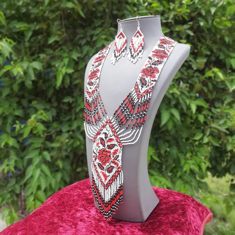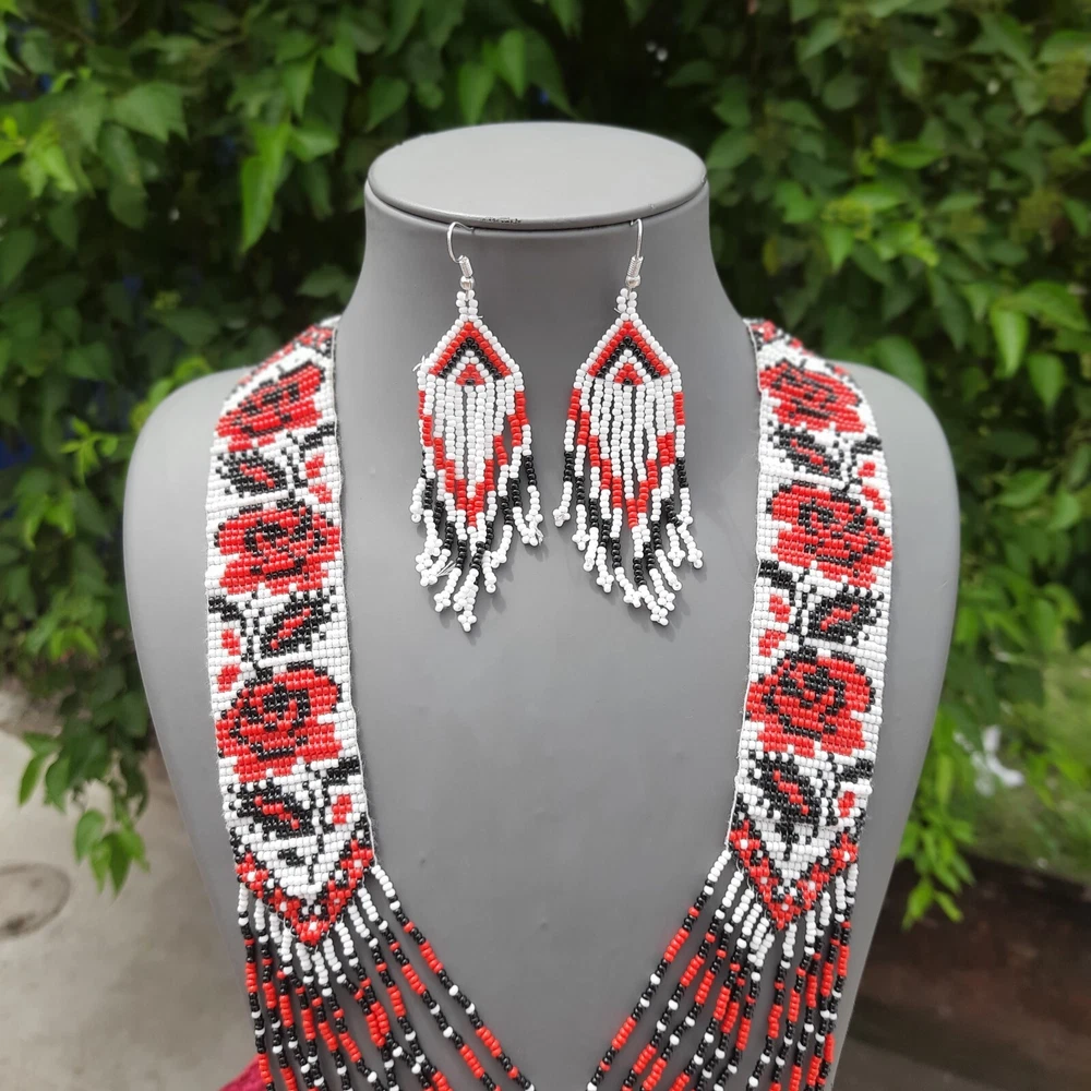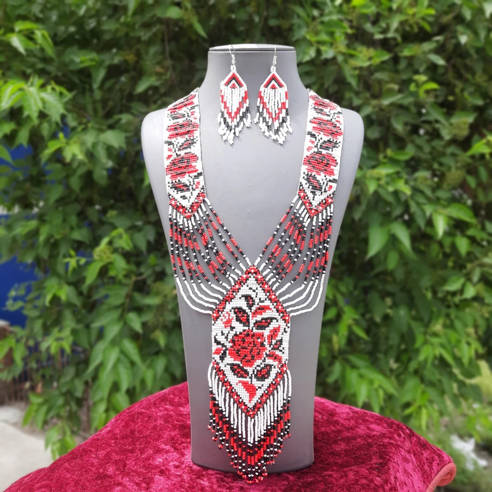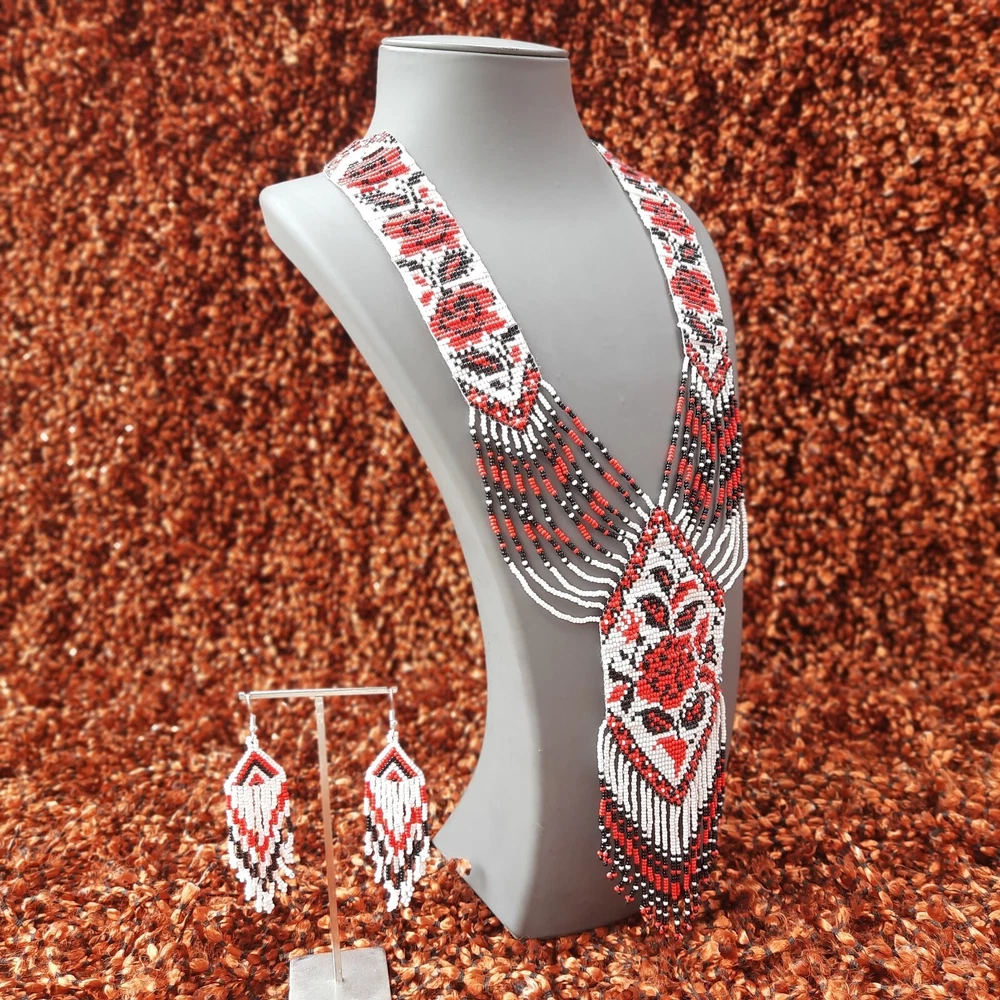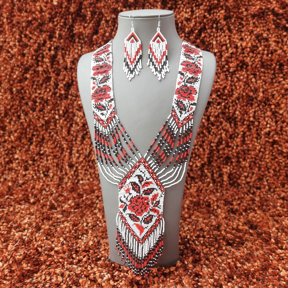 Unique Handmade Seed Bead American Style Boho Beaded Necklace & Earrings Set