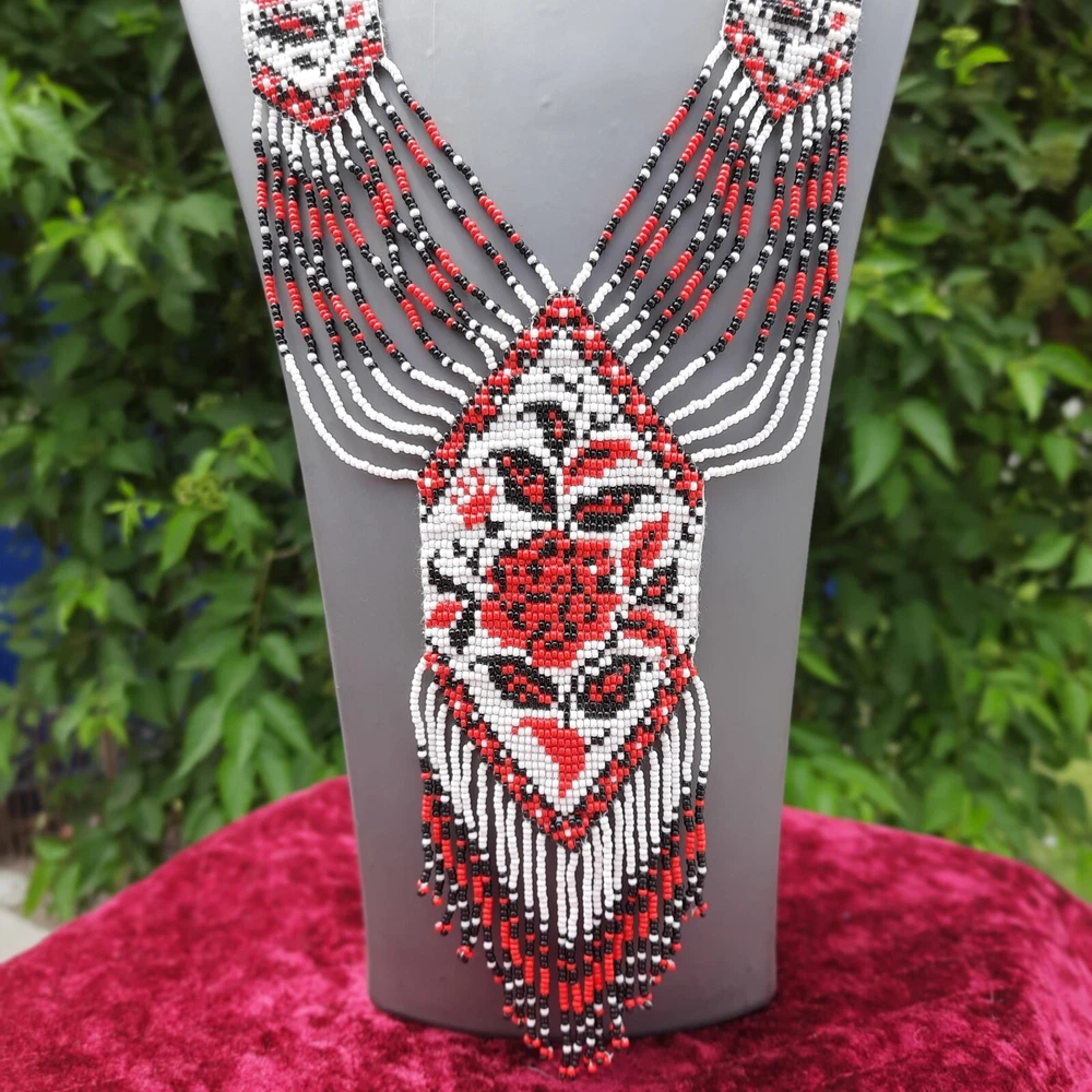Unique Handmade Seed Bead Necklace | Boho Chic American Style Artisan Jewelry Unique Handmade Seed Bead American Style Boho Beaded Necklace & Earrings Set This beautiful Handmade seed bead necklace and earring set adds a touch of boho chic to any outfit! Whether you're drawn to vintage vibes, a touch of Native American inspiration, or simply love the look of colorful glass seed beads, this seed bead statement necklace is sure to turn heads. Explore our shop to find the perfect seed bead jewelry design for you! Features Handcrafted : Unique , one-of-a-kind pieces made by skilled artisans. Durable : Long-lasting due to high-quality seed beads and sturdy construction. Versatile : Can be dressed up or down, perfect for various occasions . Affordable : Often priced lower than other types of jewelry. Lightweight : Comfortable to wear for extended periods. Easy to care for : Simply wipe clean with a soft cloth. Cultural significance : Often inspired by Native traditional folk art and craftsmanship. Specifications Specification Details Material Glass Seed Beads Necklace Length 20 inches Earrings Length 3.5 inches Color Multicolor Packaging Safe inside Bubble Paper JOIN US © The Artisanal House. All rights reserved.