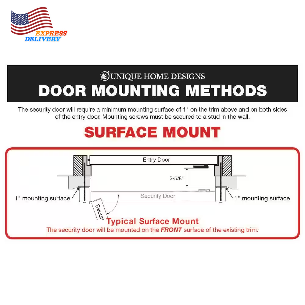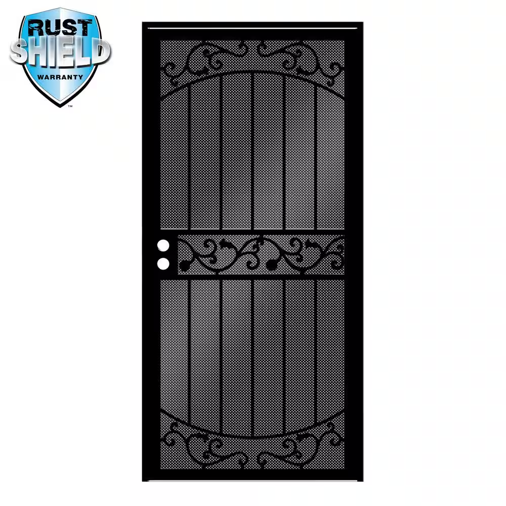 Store New Arrivals Add to Favorite View Feedback Contact Unique Home Designs Security Door 36" x 80" Perforated Screen Rust Shield Black Description Color Family Black Color/Finish Black Door Configuration Single Door Door Handing Universal/Reversible Door Type Security Finish Type Finished Included Instructions Material Steel Mount Type Surface Mount Product Weight (lb) 69.2 lb Returnable 90-Day Manufacturer Warranty 5 Year Corrosion Resistance Warranty Actual Door Height (in) 81.563 in Actual Door Thickness (in) 1.6 Actual Door Width (in) 38.5 in Door Height (in) 80 in Door Thickness (in) 1.6 in Door Width (in) 36 in Nominal Door Height (in) 80 in Nominal Door Thickness (in) 2 in Nominal Door Width (in) 36 in Heavy-duty steel frame enhances security Perforated metal screen provides added security Rust Shield electrocoat treatment protects from corrosion Bring the garden to your door with the Unique Home Designs La Entrada Security Door. The Rust Shield, full immersion, electrocoat treatment protects from corrosion from top to bottom from inside to out. It has an appealing floral and vine motif in a welded-steel frame with 1/2 in. square-tube pickets that deter forced entry. A durable perforated metal screen enhances your security and helps keep out insects. The door is reversible for easy installation and has a heavy-duty lockbox with a 2-3/8 in. backset (lockset sold separately). ABOUT US We offer the best prices around on high quality products. Our E-store includes media such as books, movies, music and games while offering electronics, toys, sporting apparel, clothing, tools, general home, garden items and more. SHIPPING We are always working hard to ensure your package arrives as soon as possible. Please understand that some factors like weather, high postal traffic, and the performance of shipping companies are outside of our control. We offer free shipping to the lower 48 states and ship within 2 business days of payment, usually sooner. We do not accept P.O. Boxes. Please provide a physical address. For shipping outside of the continental USA, we only use eBay's Global Shipping Program.The item is shipped to KY and then sent to the rest of the world. International customers are responsible for all duties and taxes. Continue to check out in order to calculate costs for shipping the item to your country. Messages regarding eBay's Global Shipping Program MUST be directed at eBay EXCLUSIVELY. RETURNS Before making a purchase, please carefully review our complete Return Policy located under the “Buy Now” section to ensure you fully understand the terms and conditions. Please note: Returns are not available on items shipped outside of the USA. PAYMENT We accept PayPal. CONTACT US This page content is yet to come Please ad us to your favorite seller and visit again later Thank You CUSTOMER SATISFACTION We try our very best to make sure every customer is completely satisfied. If there's a problem, message us! We're happy to help. WE ACCEPT Copyright © 2021 AutoDS. | All Rights Reserved