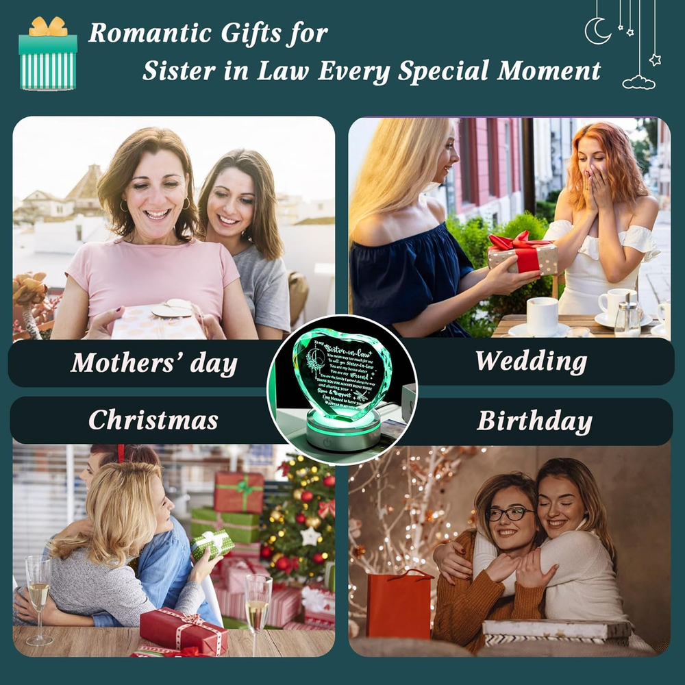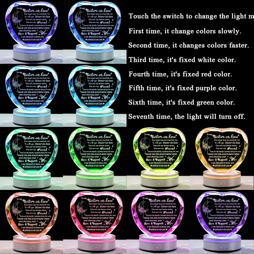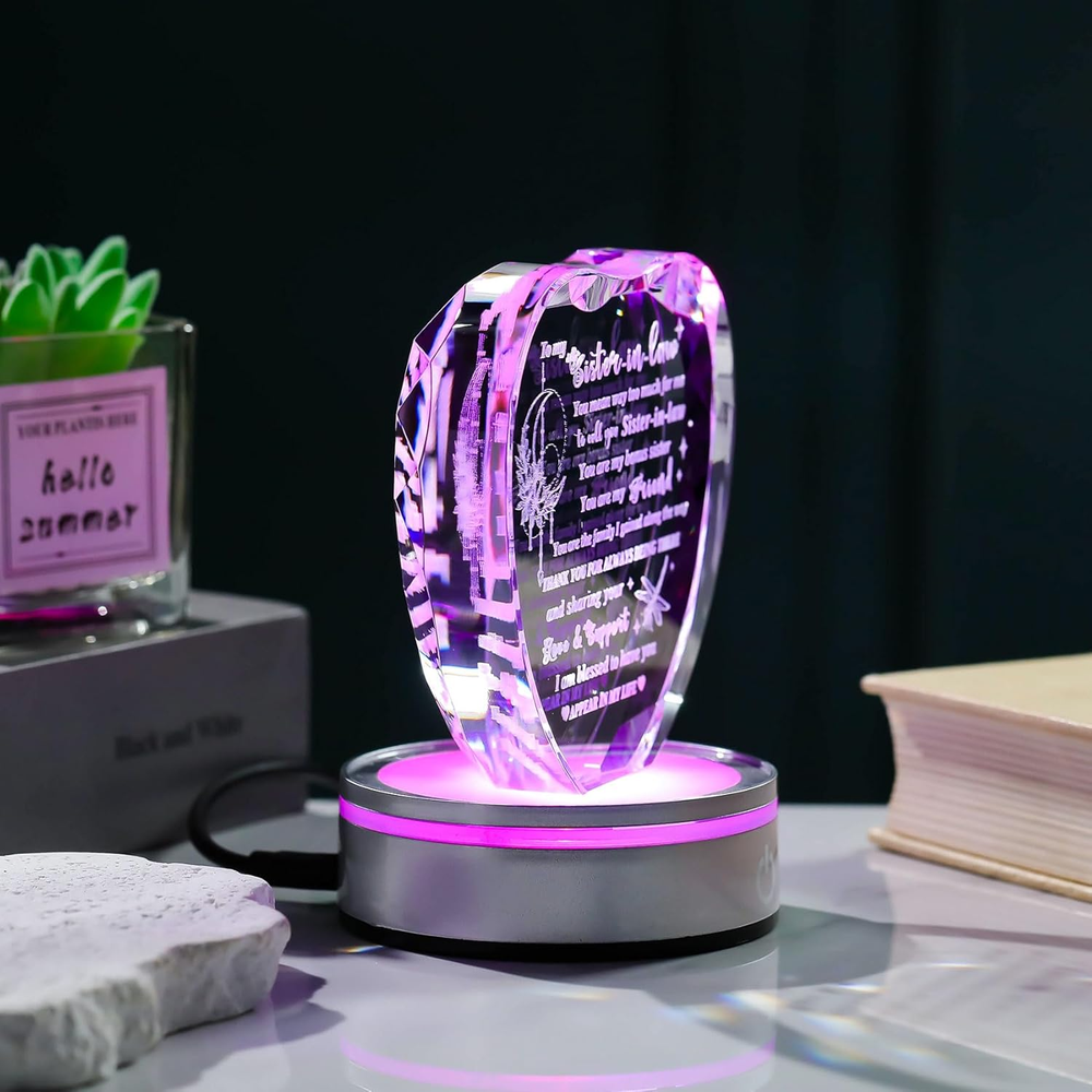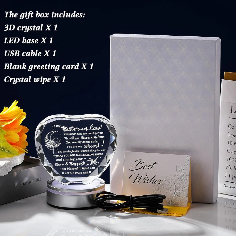 Store New Arrivals Add to Favorite View Feedback Contact Gifts for Sister in Law Crystal Ornament Birthday Unique Gifts, Laser Engraved Sister in Law Gifts for Women from Sister in Law on Christmas Mothers Day with Colorful LED Base Description Light Source Type LED Style Sister in law-2 Number of Items 1 Power Source Corded Electric Number of Light Sources 1 Material Type Crystal Lighting Method LED Finish Types Polished Lamp Type Desk Lamp Room Type Living Room Product Dimensions 3.1"D x 4.3"W x 5"H Model Number 1 Installation Method Tabletop Finish Type Polished Specific Uses For Product Decoration Included Components Gift Box, Wiping Cloth, Gift Card Is Product Cordless No Control Method Touch Water Resistance Level Not Water Resistant Item Weight 1.69 Pounds Connectivity Technology USB Special Features 变色 Mount Type Tabletop Shade Color Clear Color Sister in Law-2 Item Dimensions D x W x H 3.1"D x 4.3"W x 5"H Indoor Outdoor Usage Indoor Base Material Glass Recommended Uses For Product Decoration Shade Material Glass Switch Type Push Button 💕Sister in Law Birthday Gifts: If you want to show your sister in law how much you appreciate her presence in your life, this keepsake is the perfect present for Christmas, Birthday, Wedding or Mothers Day 🎁Original And Best Sister In Law Gifts: Our meaningful gifts for sister-in-law is the perfect way to welcome the new sister in law in your life. Whether she has been in the family for years now or it is the wedding day, our best sister-in-law gifts will be sure to give her joy when she opens it. The sweet message is a way to tell her that she is the best, and that you are so thankful that you get to be a part of her family 🎁Materials & High Quality: Made with the highest k9 crystal, Each crystal is hand-polished, without any bubbles, impurities or scratches. The words laser engraved inside the crystal will never fade or disappear. It is transparent, shiny and very durable 🎁Specification & Gifts package: Size is about 4.3*3.9in". Every Crystal gift will come with a nice gift box, wiping cloth, and Gift card. It can be placed independently, placed in the living room, bedroom or office as decoration, and placed on the fireplace, desk, closet, or storage cabinet will be very attractive 💕Movdyka Vision- The crystal gifts can be used as home decor for any place, Movdyka strives to bring the best quality products with a special message of hope and encouragement to each one. If there are any problems with the product, please , we will help to fix the problem any time Crystals Sister In Law Gifts For Women, Heart Shape Glass Keepsake Decor Anniversary Wedding Birthday Gifts For Sister In Law Product Features: 1. Made with K9 Highest-quality Crystal, Making the Crystal More Transparent and Glossier. 2. The Laser Engraved Pattern, without Breaking the Surface of Crystal, All Patterns are Clear and Distinct. 3. The Exquisite Packing Box Looks Delicate and Classy. Product Specification: Color of Crystal: Clear Material: K9 Crystal Crystal Size: 4.3*3.9in" Package Include: 1 x Crystal 1 x Cloth for Cleaning Crystal 1 x Gift Card 1 x Cardboard Gift Box 1 x LED Base 1 x USB cable Order yours today and enjoy! ABOUT US We offer the best prices around on high quality products. Our E-store includes media such as books, movies, music and games while offering electronics, toys, sporting apparel, clothing, tools, general home, garden items and more. SHIPPING We are always working hard to ensure your package arrives as soon as possible. Please understand that some factors like weather, high postal traffic, and the performance of shipping companies are outside of our control. We offer free shipping to the lower 48 states and ship within 2 business days of payment, usually sooner. We do not accept P.O. Boxes. Please provide a physical address. For shipping outside of the continental USA, we only use eBay's Global Shipping Program.The item is shipped to KY and then sent to the rest of the world. International customers are responsible for all duties and taxes. Continue to check out in order to calculate costs for shipping the item to your country. Messages regarding eBay's Global Shipping Program MUST be directed at eBay EXCLUSIVELY. RETURNS We offer a 30-Day Return Policy on items which you are not completely satisfied with. You have the option for a full-refund or an exchange of the item. No returns are available on items shipped outside of the USA. PAYMENT We accept PayPal. CONTACT US This page content is yet to come Please ad us to your favorite seller and visit again later Thank You CUSTOMER SATISFACTION We try our very best to make sure every customer is completely satisfied. If there's a problem, message us! We're happy to help. WE ACCEPT Copyright © 2021 AutoDS. | All Rights Reserved
