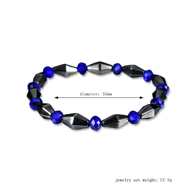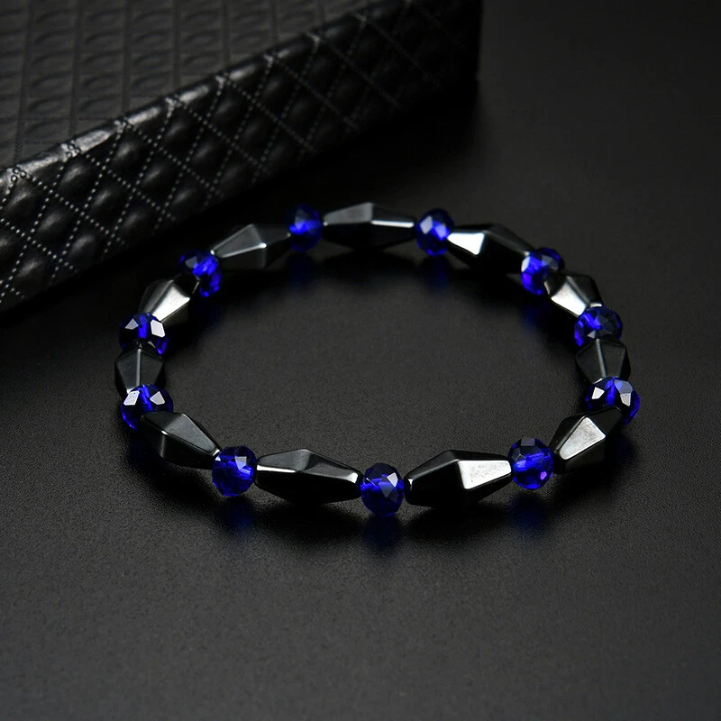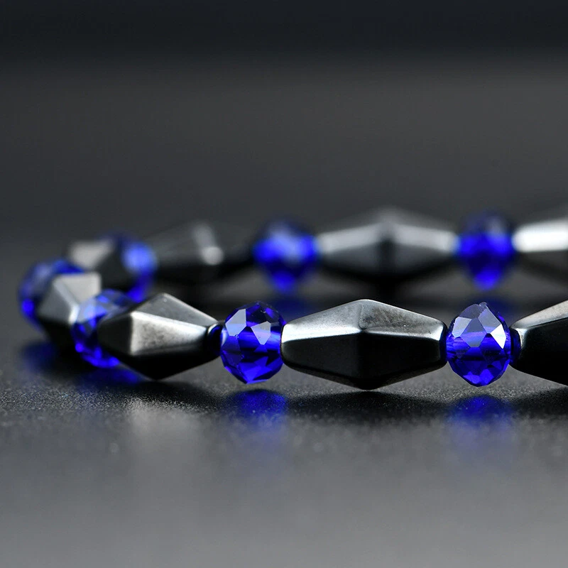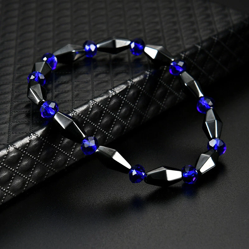Unique Natural Energy Stone Healing Hematite With Blue Crystal Beads Bracelet Stunning Bracelet Modern Design / 062 Black & Blue Color Brand new Buy now before it\'s gone. You can\'t go wrong with this elegant bracelet. The upscale craftsmanship and quality. Brand new with tag.