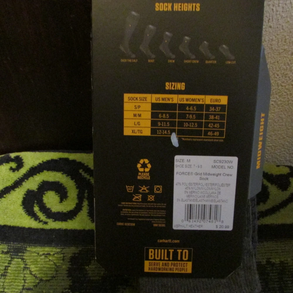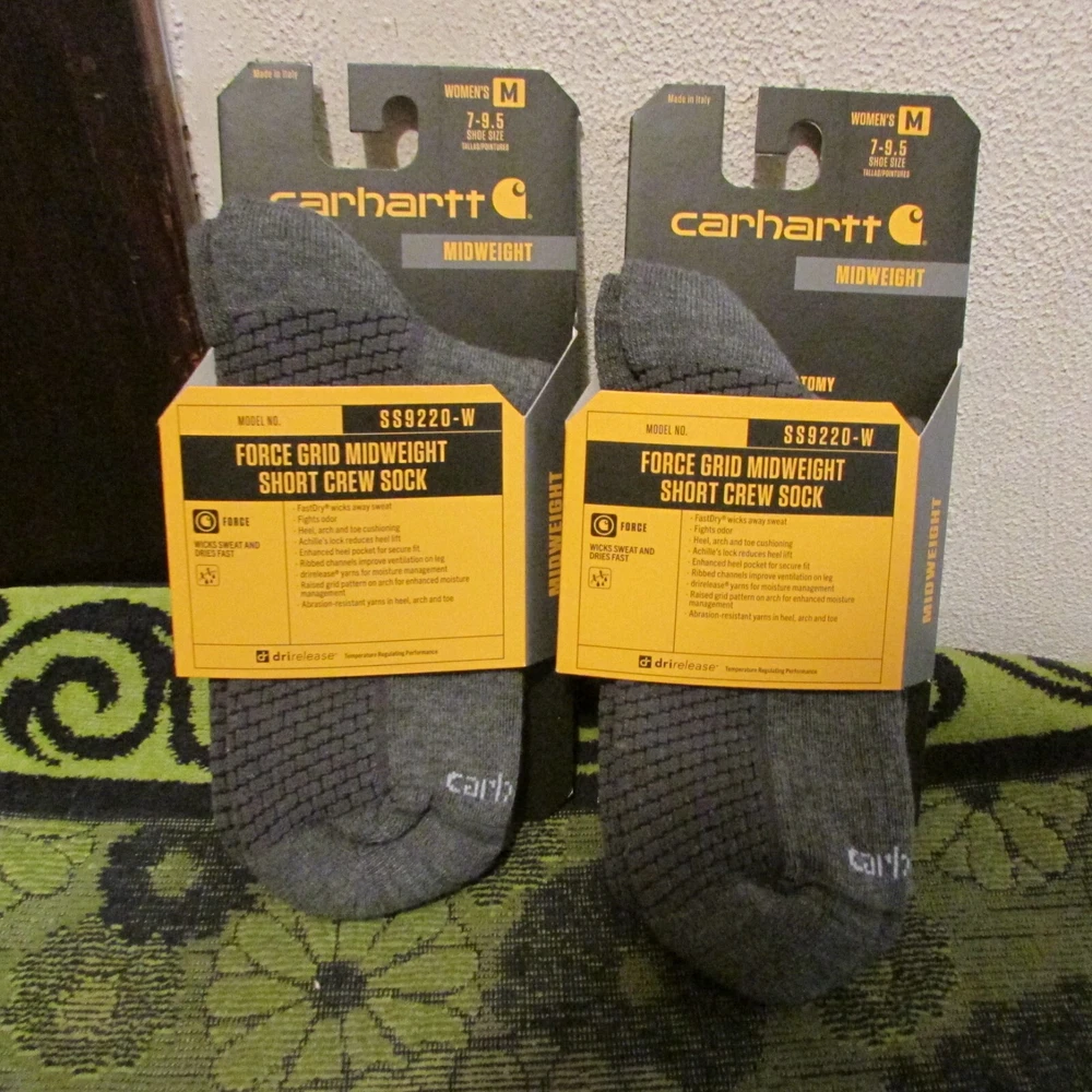Wrap your feet in the cozy comfort of Carhartt's grid wool blend socks, designed for unisex adults who value both warmth and style. Available in a versatile gray, these socks come in a size medium, offering a snug fit for a variety of foot sizes. The crew or short crew length options provide a classic look that pairs well with any casual or work attire. Crafted from a quality blended material, these socks ensure durability and moisture management, keeping your feet dry and comfortable throughout the day. Whether you're on the job or enjoying a laid-back weekend, these Carhartt socks are a dependable addition to any wardrobe. Listing is for 2 pairs of crew or 1 pair of short crew. These Carhartt midweight socks are offered in both crew or short crew. The difference is about an inch. They call the color asphalt gray. Men's size is 6-8.5, women's size is 7-9.5. As I tried to show in the picture, these socks have a ton of features including moisture wicking, odor fighting & much more. Blended material content includes polyester, nylon, merino wool & elastine. Sticker price on these are about $20 for one pair. Offering these at a very competitive price. Lots more men's & women's socks in my Ebay store. Dickies, U.A., Wrangler & more. ***************************************************************************************************************************************************** Ships within 24 hours of payment received. Delivery confirmation included. Immediate payment required.
