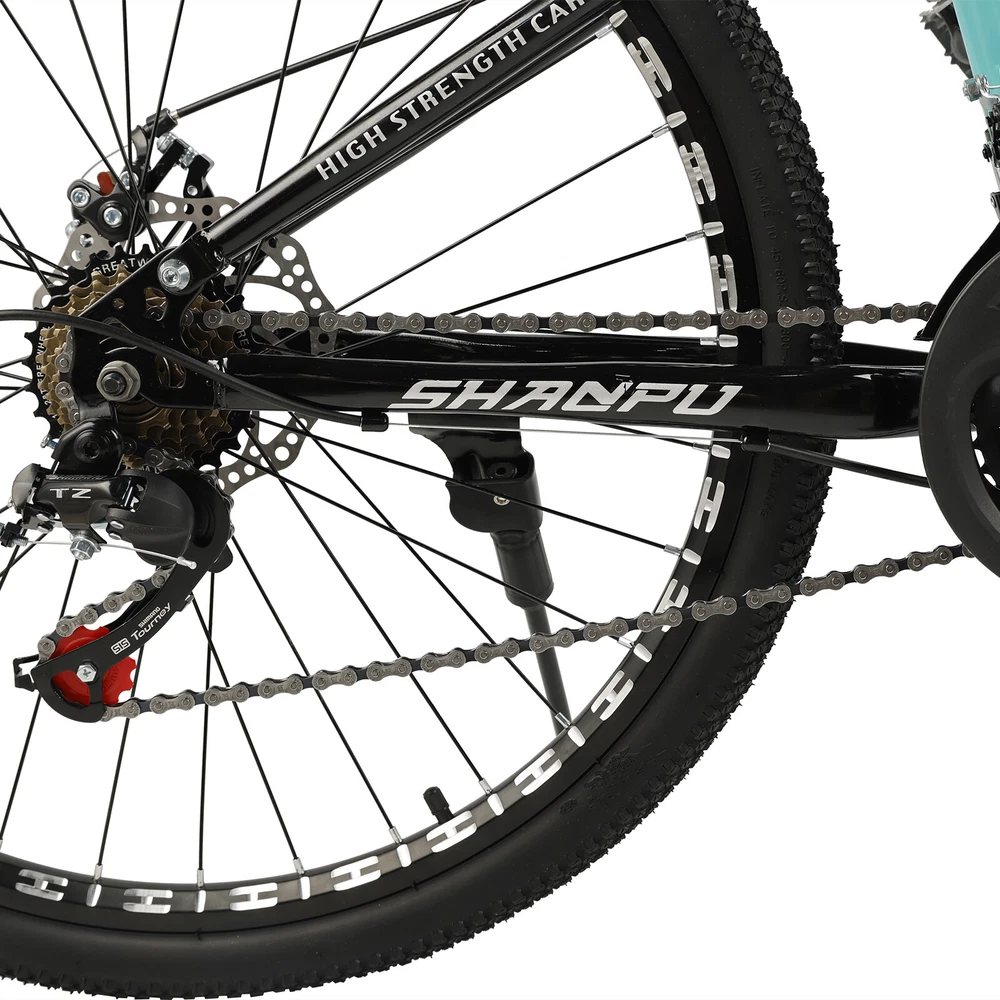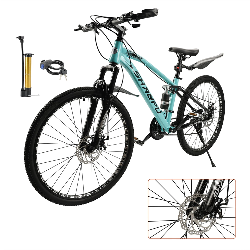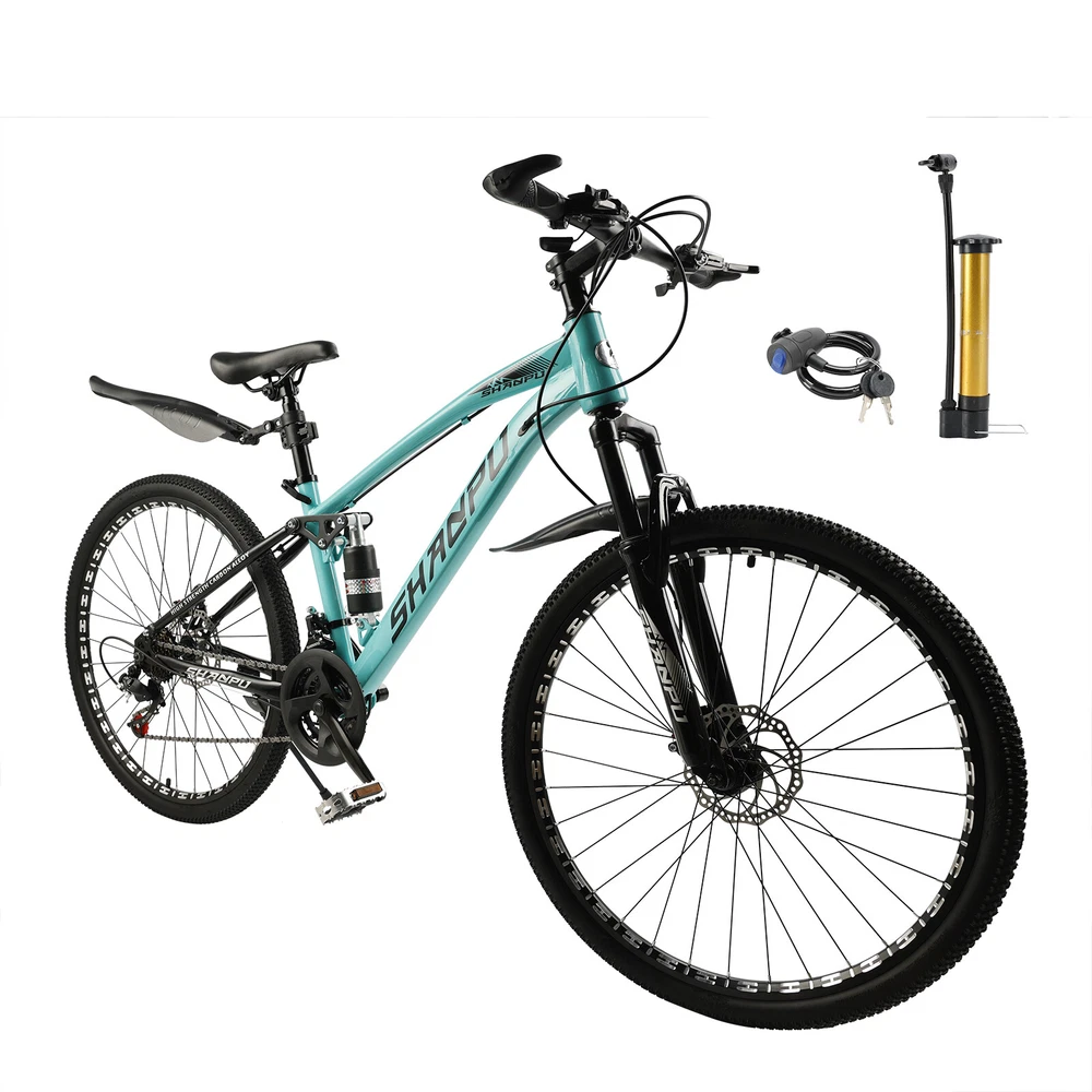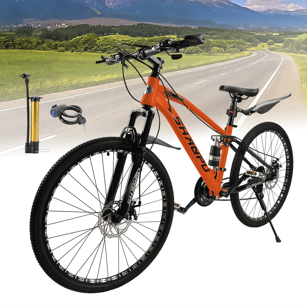 This mountain bike is an absolute game-changer! The 26-inch frame makes it super comfortable for both teens and adults, whether you're hitting trails or cruising through the city. The full suspension smooths out bumps effortlessly, and the disc brakes give reliable stopping power. Love that it comes mostly pre-assembled—setup was a breeze. Perfect for commuting, weekend adventures, or just staying active. The sleek design turns headsoric while being super functional. Definitely worth for anyone looking for a versatile, high-quality ride!