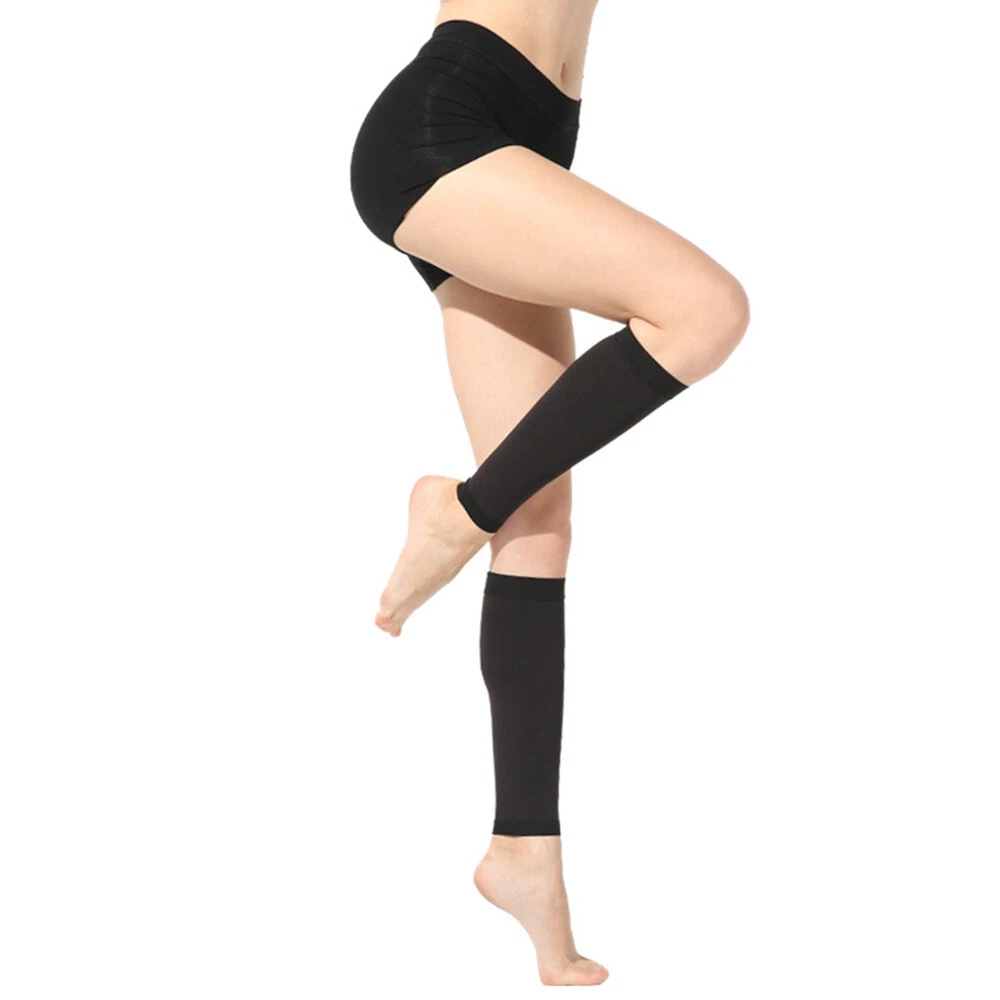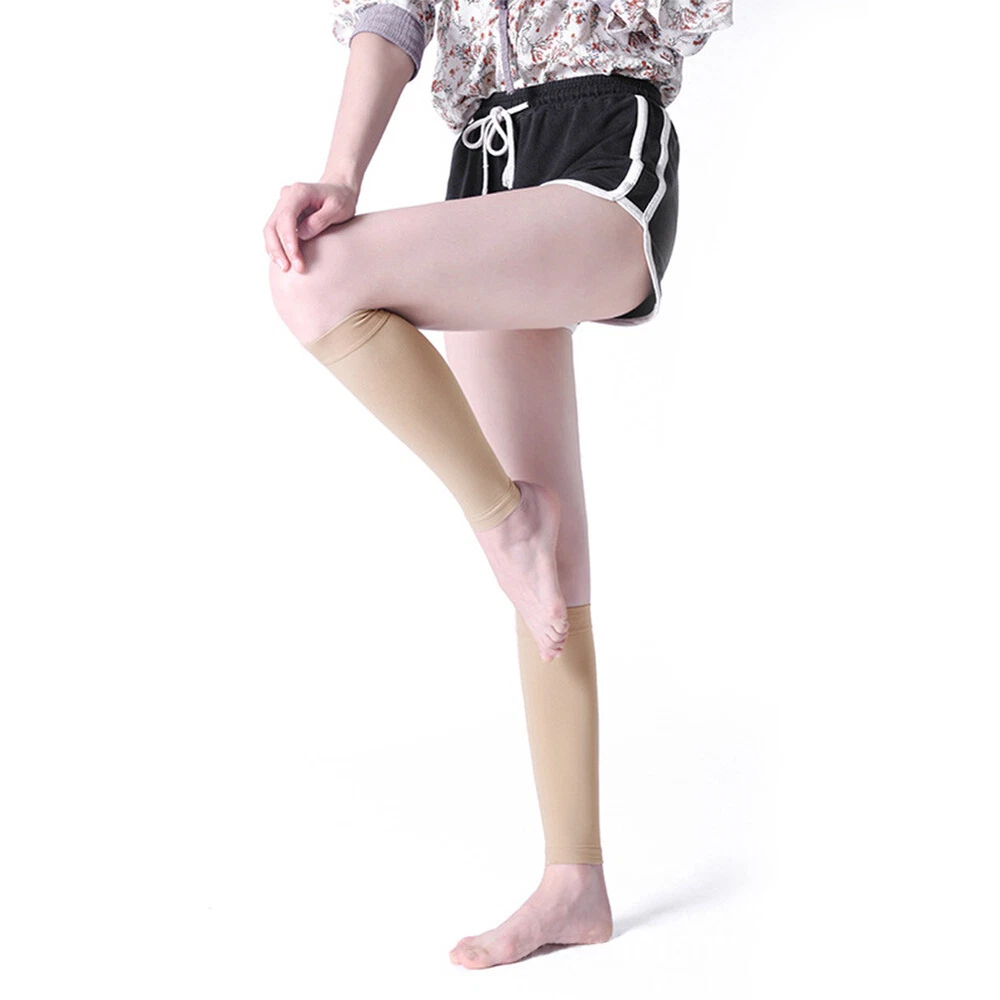 Item Description: Material: Lycra Color: Beige/Black Compression Strength: 23-32 mmHg (Class II) Typical Applications: Moderate edema, Lymphedema, Post-surgery, Pregnancy, Moderate varicose veins, Deep Vein Thrombosis(DVT) Why you need compression socks? If you've suffered with varicose veins for a long time, you'll be familiar with soreness, swelling and fatigue on your aching leg. Varicose veins appear when the one-way valves in your veins fail and allow blood to leak backward. It's the pooling of blood because of this valve failure that causes the squiggly, bulging blue veins to pop out. Our compression socks can help relieve from varicose veins, promoting blood and oxygen circulation more effectively, preventing cramping, fatigue, stiffness and swelling, faster recovery. How compression socks work? Our medical compression socks has strict compression level of each key measuring point. The graduated compression provides maximum compression at the ankle with a progressive reduction through the calf, which enhance the return of venous blood to the heart. Who can benefit from compression socks? Long-distance travellers Aircraft flight related practitioner Professionals involving prolonged sitting / standing in one place Sufferers of varicose veins & related venous disorders Pregnant women with lower limb edema Which compression class should I choose? A higher level of compression requires more physical strength to don and doff. Higher level is tighter. If you are unsure, we recommend you to consult your physician for the appropriate level of compression, as noted in mmHg value. Warm Tips: 1.If conditions permit, we strongly recommend purchasing 2 pairs to replace, as double its life for each pair. Don't wear a single pair for more than 3 days, because a long time wear will affect the recovery of elastic socks. 2.Better to wear your compression stockings during the day and take them off before going to bed. Washing Instruction: 1.It's imperative that the garment is washed after each use. Washing brings back the elasticity to the socks. 2.To prolong the garment life, hand wash with warm water (below 30℃) and mild laundry soap or detergent. Use chloride-free bleach. Do not wring out, gently squeeze excess water to hang and air-dry. Do not dry clean or iron. Package Includes: 1 Pair Unisex Compression Calf Sleeves
