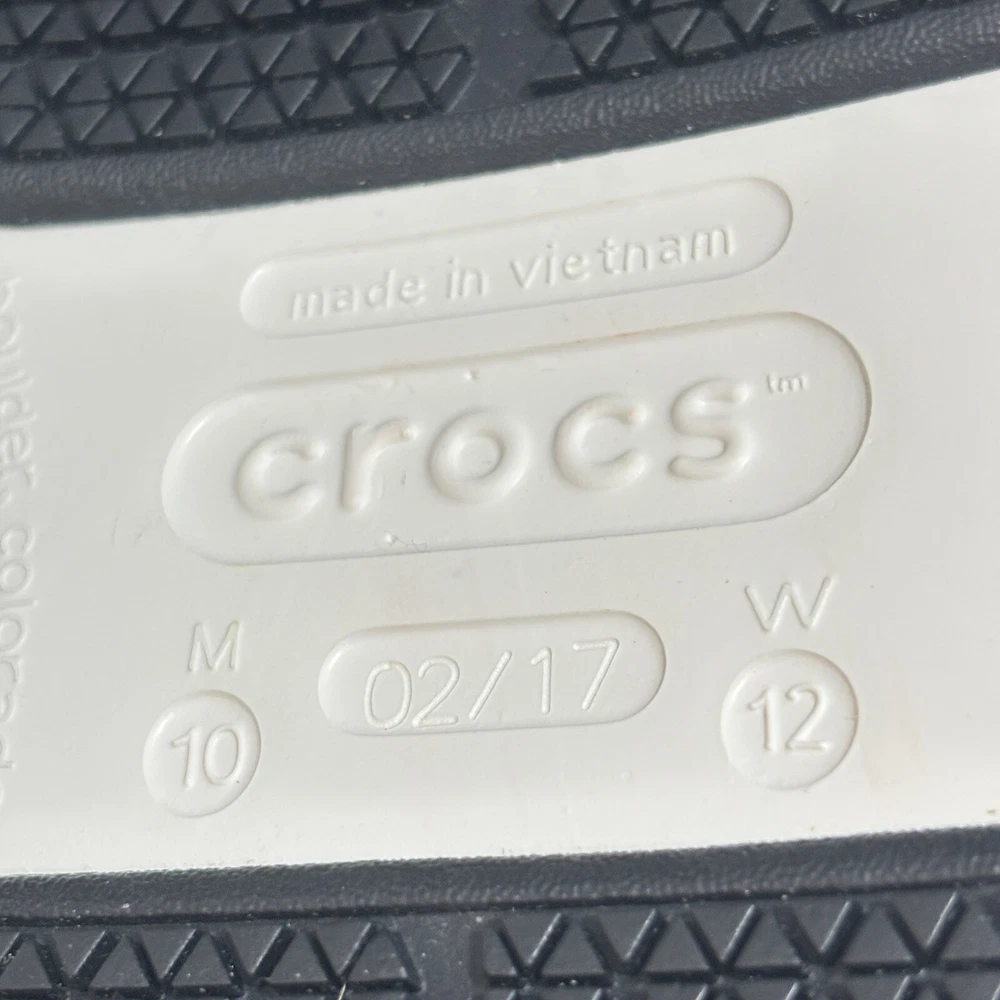 MPN: 10001 Type: Casual Theme: Classic Character: Crocs US Shoe Size: 10 Brand: Crocs Customized: No Accents: Logo Fabric Type: Croslite Season: Spring Product Line: Crocs Classic Clog Department: Men Seller Notes: “These are New .They were tried on and walked around for a few minutes. Great” Insole Material: Croslite Lining Material: Croslite Features: Comfort Closure: Slip On Toe Shape: Round Toe Color: White Upper Material: Croslite Occasion: Casual Vintage: No Country/Region of Manufacture: China Outsole Material: Croslite Pattern: Solid Style: Clog Model: Classic Clog Shoe Width: M