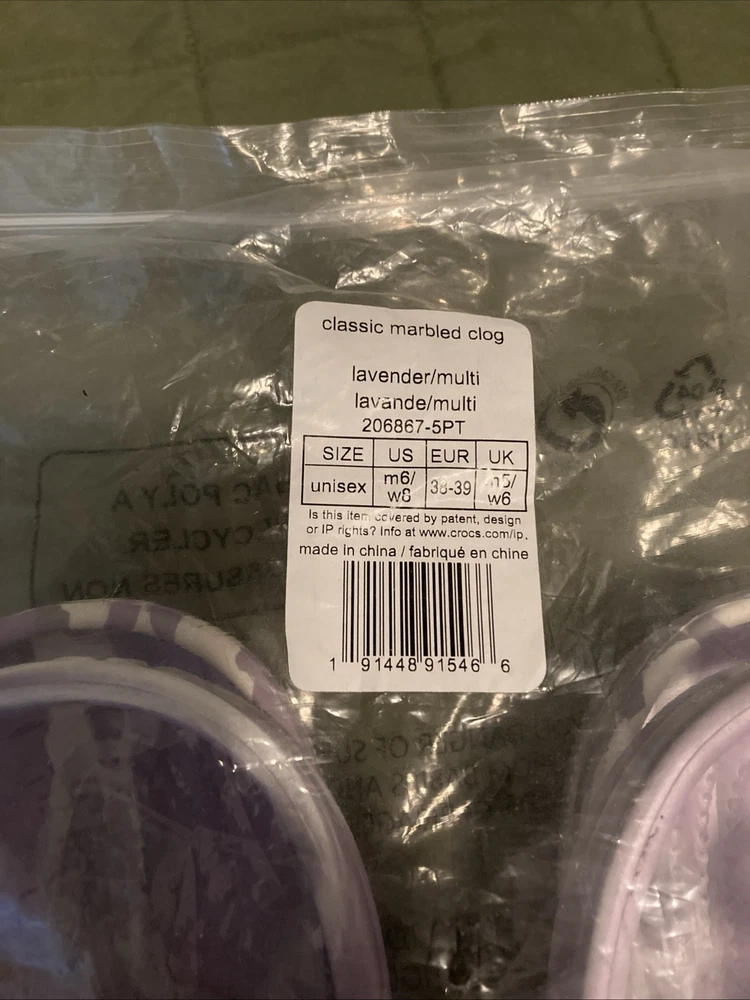 Unisex crocs classic marbled clog lavender multi M6 W8 new