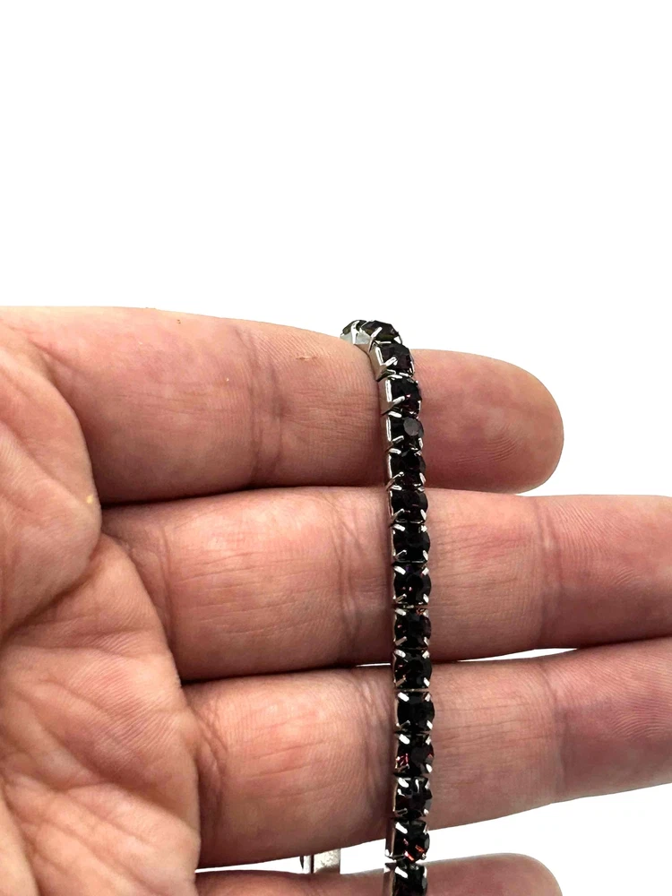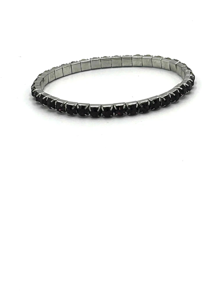 Unisex Dark Purple Black Stones Silver Band Tennis Bracelet This stylish unisex tennis bracelet adds a touch of elegance to any outfit. Featuring stunning dark purple rhinestones set in a stretch design for easy wear, it's perfect for any occasion. The silver band provides a chic contrast, making it a versatile accessory. Condition: Good condition. Size: Features: Dark Purple, Black Stones, Silver Band, Stretch Design Brand: Type: Bracelet Style: Tennis Color: Dark Purple Material: Rhinestone, Silver Tone Metal Measurements: See pictures. Keywords: Casual, Evening, Unisex, Jewelry, Gift, Stylish, Chic, Elegant