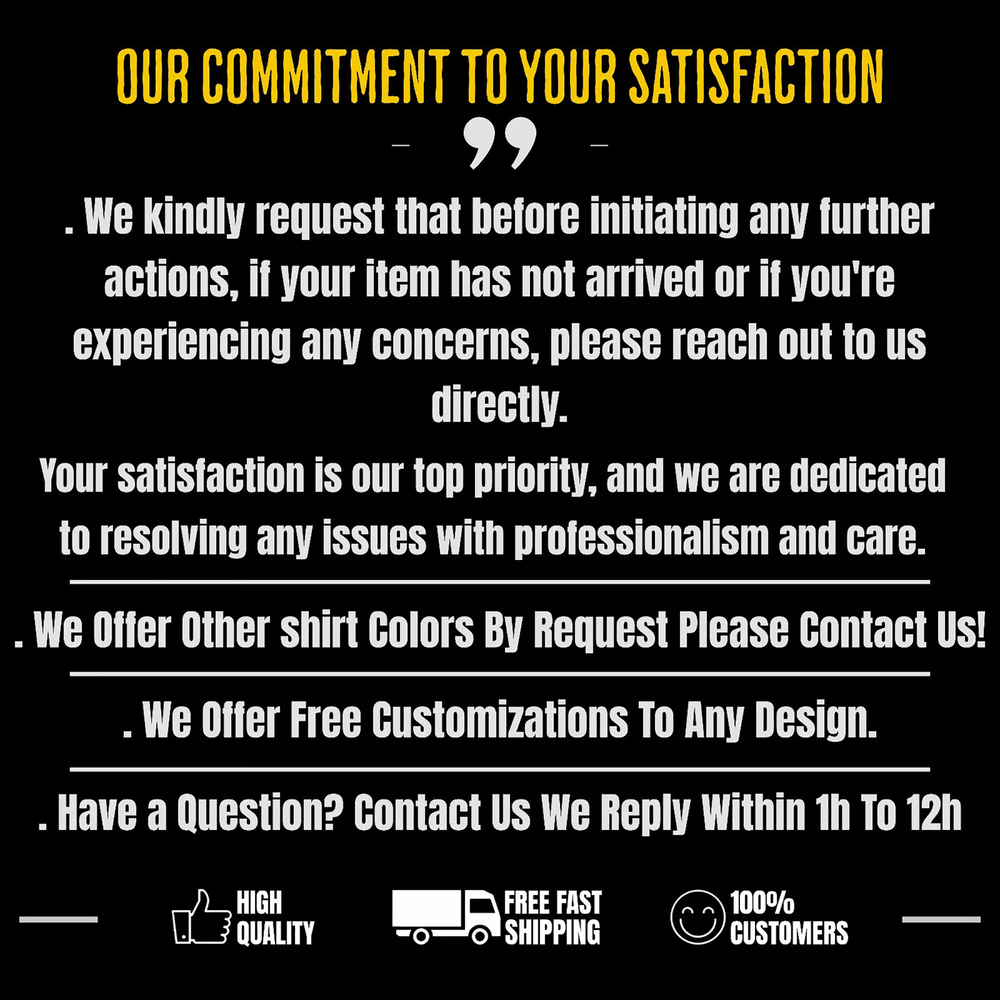 PREMIUM QUALITY T-SHIRTS For any issues with your order or if you have not received your item, please contact us directly. We are committed to resolving any concerns with the highest level of professionalism. Product Specifications Material: 100% cotton (fiber content may vary for different colors) Weight: Medium (5.3 oz/yd² (180 g/m²)) Pre-shrunk Shoulder-to-shoulder taping Quarter-turned to avoid crease down the center Size Chart Size Chart in Inches Size Width (in) Length (in) Sleeve Length (in) S 18.00 28.00 7.75 M 20.00 29.00 8.25 L 22.01 30.00 8.25 XL 24.02 31.00 8.76 2XL 26.03 32.00 9.26 3XL 28.04 33.00 9.77 4XL 29.97 34.00 10.24 5XL 31.97 35.00 10.75 Size Chart in Cm Size Width (cm) Length (cm) Sleeve Length (cm) S 45.70 71.12 18.40 M 50.80 73.66 19.70 L 55.80 76.20 20.90 XL 60.90 78.74 22.20 2XL 66.00 81.28 23.50 3XL 71.10 83.82 24.80 4XL 76.30 86.36 26.00 5XL 81.20 88.90 27.30 Interested in more items? Contact us to arrange combined shipping and save on costs Contact us Payment Options We accept a variety of payment methods, including credit and debit cards, Apple Pay, Google Pay, PayPal, and PayPal Credit. Contact Us Check back soon for updated contact information. In the meantime, add us to your favorite sellers and visit our shop again later. Thank you for your patience! Visit Our Shop Please note: Orders of incorrect sizes are not eligible for refunds. All products are made on demand, so exchanges require producing a new item. Heavy Cotton? Tee Gildan 5000 | Product Details