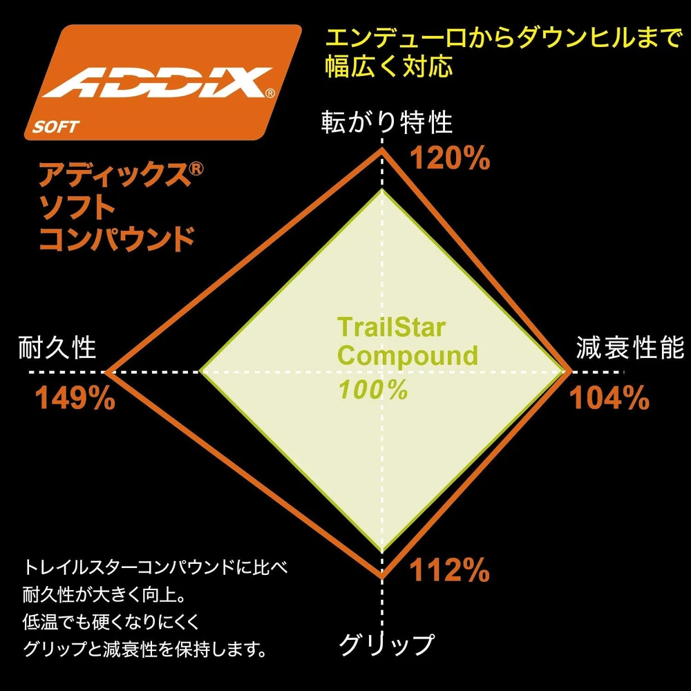 Nylon Imported The favourite among downhill and enduro experts. The perfect choice for virtually any track. Intermediate tread: maximum brake traction and corner grip even on extremely muddy terrain thanks to strong shoulder studs and the aggressive, open tread design.