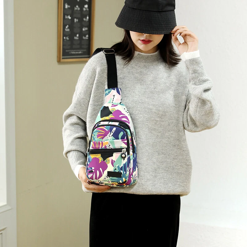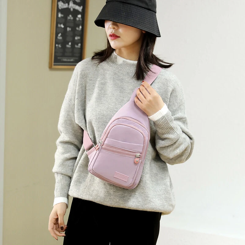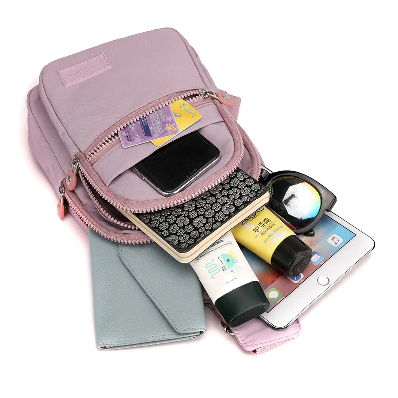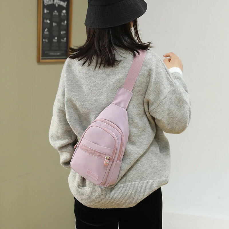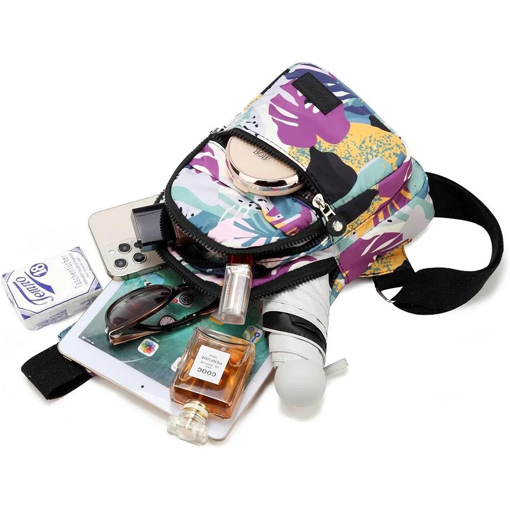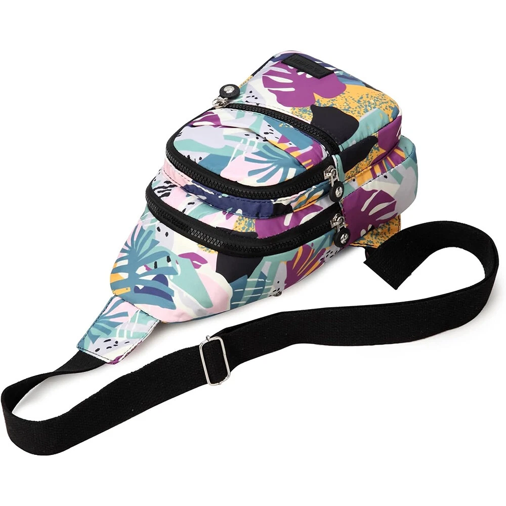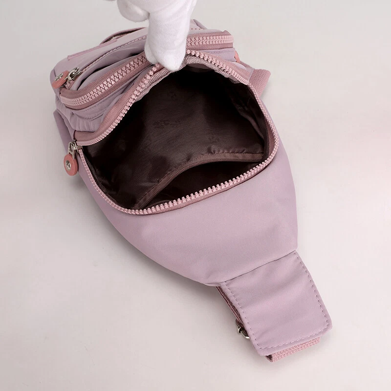 Package includes: 1 x sling backpack women Material: Nonly Color: pink purple Size: 6.7” x 4.3” x 11.8” (Length x Width x Height) Features: - Water Resistant - Multi-Compartment - Large Capacity - Hidden Anti-Theft Pocket - Light weight - With the addition of its unique color. - as a travel bag and a hiking bag - as a purse or day pack.