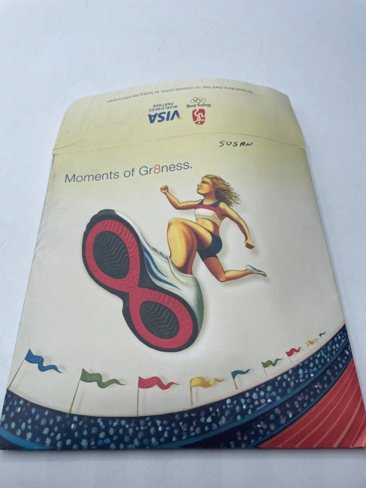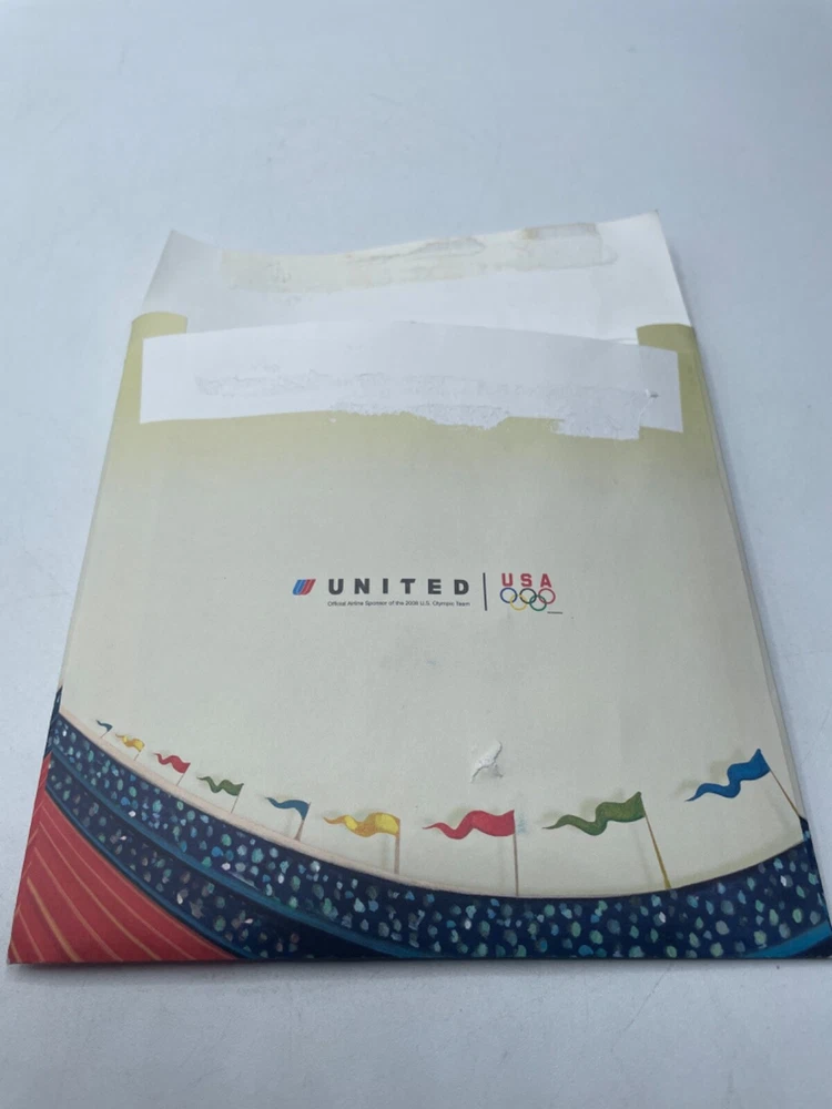 United Airlines Pamphlet and Pin Beijing Olympics 2008 Moments of Gr8ness Items are in used condition with normal signs of wear (marks, bends, writing on paper, yellowing, discoloring). The pin seems to have yellowed a bit with age, but still new in plastic. Comes with assortment of paperwork. Please look over photos.