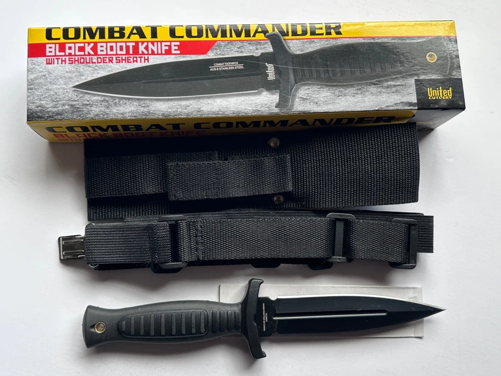 T is for Toys Description: Up for bid is one Combat Commander Black Boot Knife and sheath. Condition: New Old Stock. Notes: Shipping Options United States : USPS Media Mail(3 to 9 days ETA), USPS Priority Mail(2-3 days ETA ) and USPS Express Mail/Next Day. International :All of our international orders are shipped out through eBay's Global Shipping Program. Combined Shipping We combine shipping on all orders, regardless of quantity or location. If you have any specific questions or requests, please feel free to let us know. The Terms All of our items are guaranteed as described and are offered on an “as is” basis with no warranty privileges implied. Returns are always accepted, provided the item is returned in the same shape and condition it left in. If you have any questions about shipping, local order pick-ups, alternate payment options, please feel free to let us know, we will get back to you as soon as possible. As always, all of our items are from a pet and smoke free home.