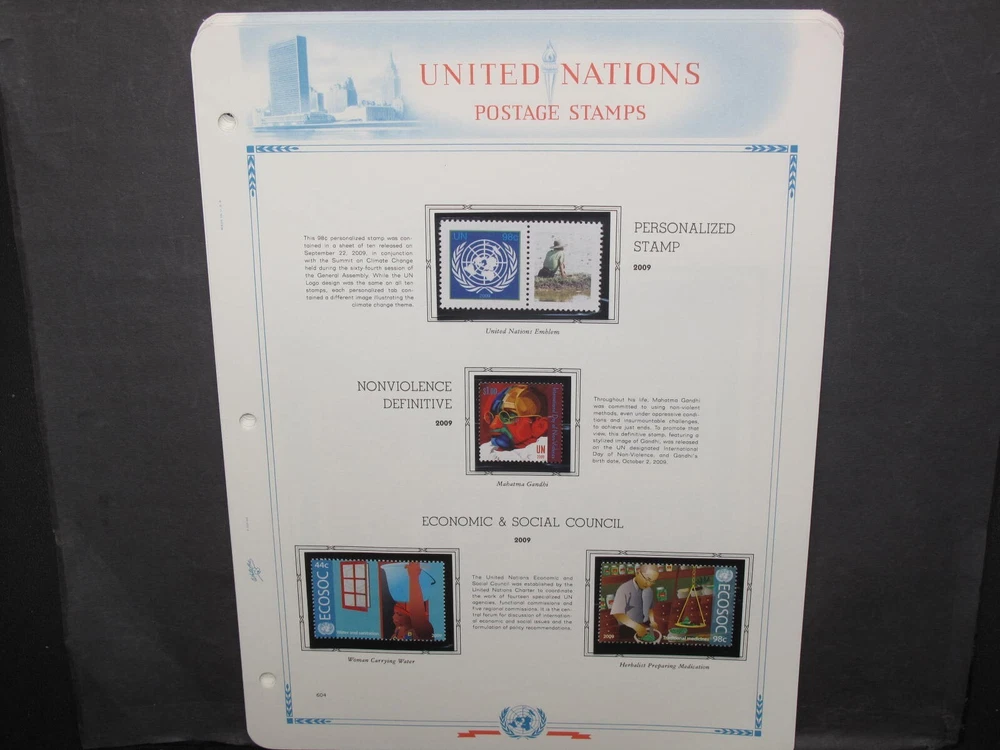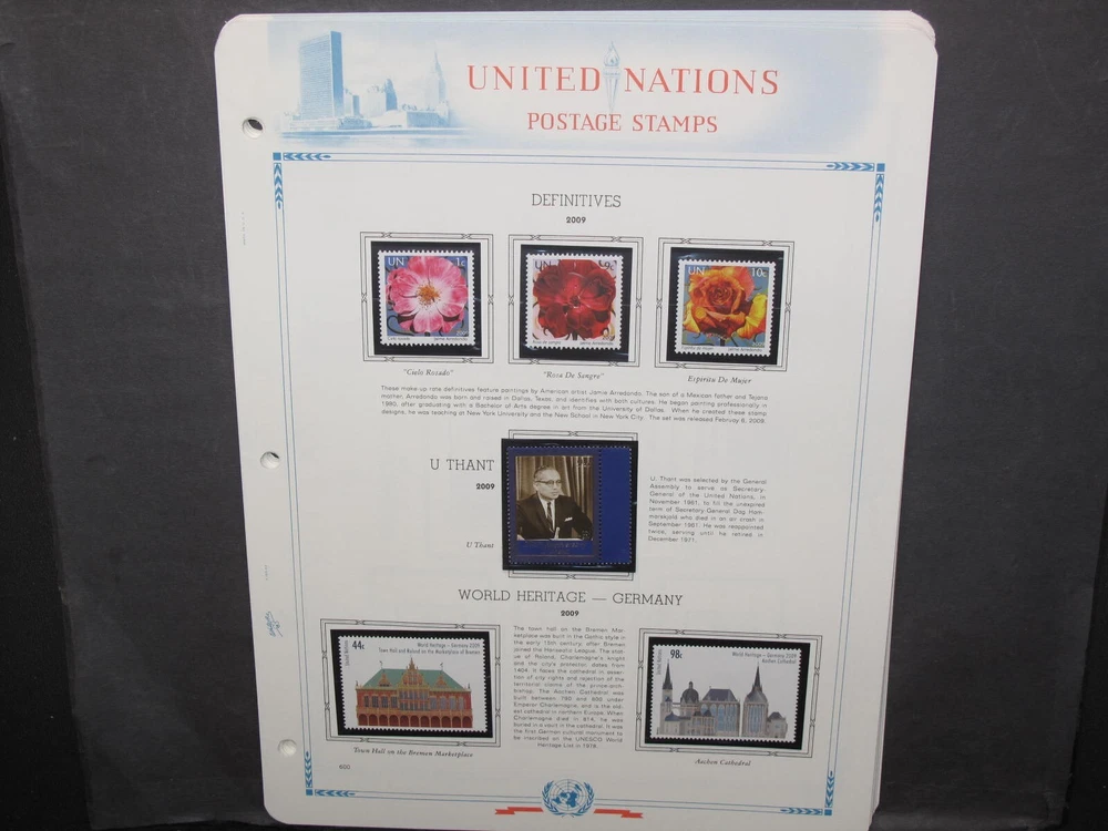 Description: A collection of United Nations on White Ace album pages issued 2009. Stamps are MNH in mounts. Photos show actual lot. At DanTheStampMan, you can expect all of these services: All shipping for items won in the same week will always be combined to lower your cost. Please do not pay until you receive my combined invoice if you won more than one item. We use only new packaging and pack well. All items will be shipped securely and wrapped in plastic to prevent water damage. We are International Shipping Experts. International customers are more than welcome here! We can ship anywhere! All items are shipped within 24 hours of payment receipt. Nobody ships faster than Dan-The-Stamp-Man. I e-mail delivery status updates so you know exactly when to expect your item. I personally guarantee every sale. Buy with confidence!