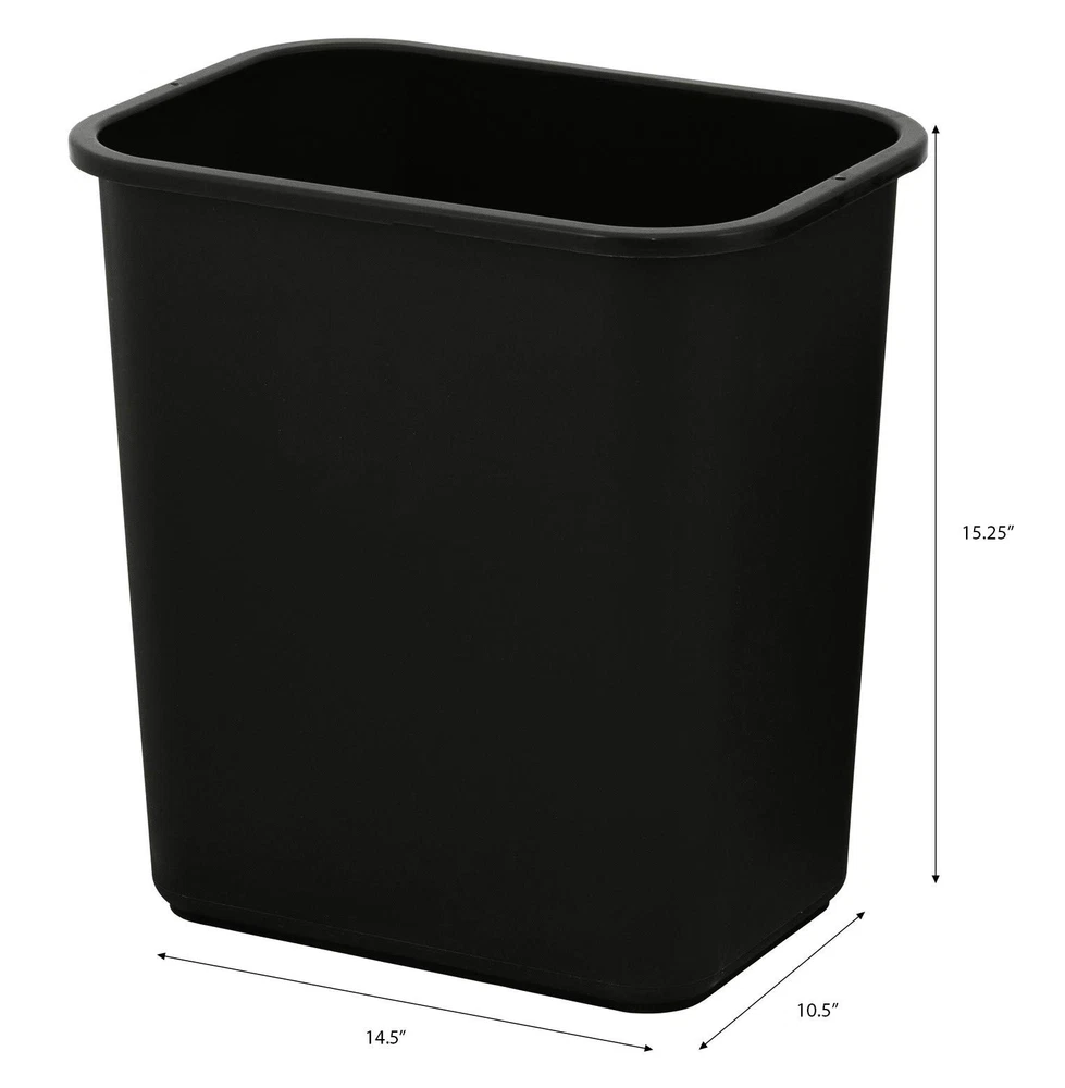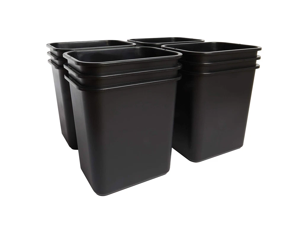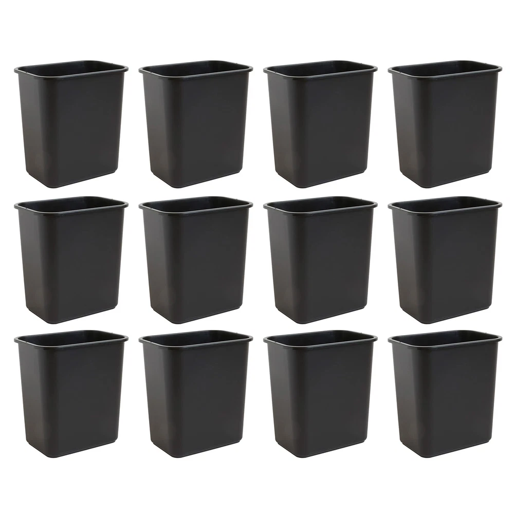 Keep your space clean and tidy with the United Solutions 28 Quart wastebaskets. These 7 Gallon/28 quart wastebaskets provides plenty of room for your discarded trash. With a slim rectangular shape, this wastebasket will fit in the corner of your office or under your desk. The folded rim allows for a garbage bag to fit securely inside. The small waste basket is constructed with quality, heavy-duty black plastic to make this a product that lasts for years to come. Wipe it down and let it air dry to protect its pristine condition. Use this trashcan in small spaces and eliminate the need to walk from room to room searching for a waste bin. United Solutions' 28 Quart wastebasket is the perfect addition to your home, office, garage, or other space. Made in the USA. SMALL SPACES IN MIND – Rectangular, open top 7-gallon garbage cans fit nicely under the desk, in the kitchen cabinet or in between tight spaces. This small garbage can is a great discreet addition to any room in your home or as an office trash can. EASY TO CLEAN – This small plastic trash can is simple to maintain and can be wiped clean and air dried with ease for long-lasting use. Use it as an indoor or outdoor garbage can and discard small or medium waste, debris, or recycling. FOR EVERY ROOM – Ideal for the bathroom, bedroom, kitchen, and office space. Standardize your small wastebaskets and purchase enough for every room. Their sleek design and subtle color make this black trash can the perfect fit for almost anywhere. MULTI-PACK FOR BUSINESS – Heavy duty set of 12 creates a consistent look and feel in any small business or corporate office where space is limited. Great commercial trash cans for small business or corporate offices where space is limited. DIMENSIONS - Each small wastebasket is 14.5 inches wide, 10.5 inches deep, and 15.25 inches high, making them the best choice for use as a desk trash can or under sink trash can. Their small profile makes them widely versatile.