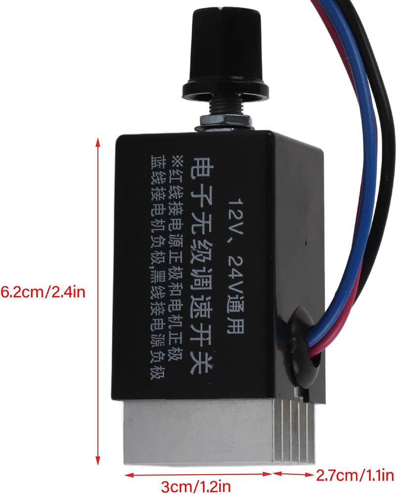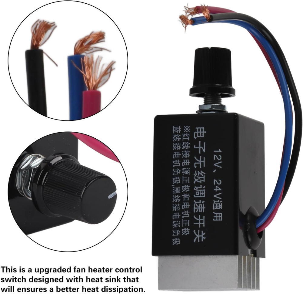 Store New Arrivals Add to Favorite View Feedback Contact Universal 12V/24V DC Rheostat Marine, DC Motor Speed Controller for Adjusting Speed of Automobile Fan Heater Defroster Fans Description Item model number Yosoo Health Gearnmhoifx5u6 Part Number Yosoo Health Gearnmhoifx5u6 Batteries Required? No Spout Height 1 Centimeters Power Source PowerSource Item Package Quantity 1 Included Components inc Wattage 120 watts Accessory Connection Type default Item Weight 1.8 ounces Handle Material default Batteries Included? No Voltage 24 Volts Installation Method InstallationMethod Manufacturer Yosoo Health Gear [Description of Red, Blue and Black Lines]: The red wire is connected in parallel to the positive pole of the power supply and the positive pole of the motor, the blue wire is connected to the negative pole of the motor, and the black wire is connected to the negative pole of the power supply [Attention]: Parallel connection of two red wires is prohibited, and parallel connection of black wires and blue wires is prohibited. The 4 wires must be wired separately, otherwise, the switch will not be able to adjust the speed normally [Rated Current and Voltage]: This electronic switch rated power is 120W at 12V, 240W at 24V, which support high power, this fan heater speed controller rated heating current is 10A, continuously variable type [Good Heat Dissipation]: This dc motor speed controller designed with a heat sink that will provide better heat dissipation [Easy Wiring]: This motor governor is easy to install and disassemble, simple wiring and convenient to use, and is an ideal substitute for broken wires, which is suitable for adjusting the wind speed of car heaters, defrosters, fans Product description Universal 12v/24v DC Rheostat Marine, DC Motor Speed Controller for Adjusting Speed of Automobile Fan Heater Defroster Fans Features: - This is a upgraded fan heater control switch designed with heat sink that will ensures a better heat dissipation. - Universal electronic stepless speed controller fit for 12V or 24V, supports high power, 120W at 12V, 240W at 24V. - The adjustable rheostat is continuously variable type, the rated thermal current is 10A. -This heater fan speed control is easy to wire, convenient to use, which is a great replacement for broken ones. - This fan speed controller is widely used for adjusting speed of automobile fan heater, defroster, fans, etc. Specifications: Voltage: 12V or 24V (universal) Rated power: 120W at 12V, 240W at 24V Rated Thermal Current: 10A Size: 62*27*30mm/2.44*1.06*1.18" Wiring: Red: Power supply+, Motor+ Blue: Motor- Black: Power supply- Package Includes: 1 x Switch ABOUT US We offer the best prices around on high quality products. Our E-store includes media such as books, movies, music and games while offering electronics, toys, sporting apparel, clothing, tools, general home, garden items and more. SHIPPING We are always working hard to ensure your package arrives as soon as possible. Please understand that some factors like weather, high postal traffic, and the performance of shipping companies are outside of our control. We offer free shipping to the lower 48 states and ship within 2 business days of payment, usually sooner. We do not accept P.O. Boxes. Please provide a physical address. RETURNS We offer a 30-Day Return Policy on items which you are not completely satisfied with. You have the option for a full-refund or an exchange of the item. No returns are available on items shipped outside of the USA. PAYMENT We accept PayPal. CONTACT US This page content is yet to come Please ad us to your favorite seller and visit again later Thank You CUSTOMER SATISFACTION We try our very best to make sure every customer is completely satisfied. If there's a problem, message us! We're happy to help.