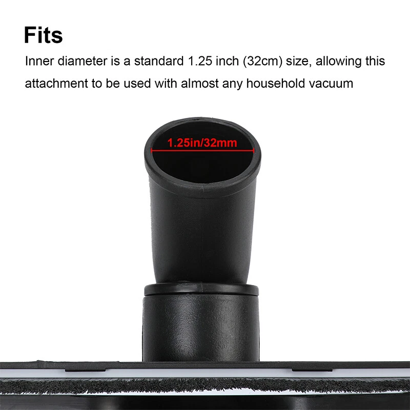 Universal 12" Vacuum Cleaner Attachment Floor Brush Tool 1.25" 1-1/4" 32mm Features: Inner diameter is a standard 1.25 inch (32mm) size, allowing this attachment to be used with almost any household vacuum 12 inch swivel neck is at a 45 degree angle and can swivel 360 degrees for easy cleaning at all angles and all surfaces European style hair Brush has roller wheels for easy movement. Works with bissell, dirt Devil, dyson, Electrolux, Hoover, Kenmore, miele, oreck, Panasonic, Shark, etc. Fits: uprights that have attachment hoses, most canister vacuums and all Central vacuum systems Please measure your vacuum hose before purchasing. It may not fit all mile vacuum Specification: Material:Plastic + Handle Color:Black Inner Diameter: 32mm/1.26''(Approx.) Size: (L) X (W) 295X45mm/11.61'' X 1.77''(approx) Package Includes: 1 x 12-inch Swivel Vacuum Cleaner Attachment 360 Floor Brush Tool Payment Delivery details Terms of sales About us Contact us Payment Payments: Paypal, Google Pay, Visa, Master Card, Amerian Express, Discover. Delivery details All items are shipped from US warehouse located at NJ . We ship to your eBay or Paypal address. Please make sure your eBay or Paypal address is correct before you pay. Terms of sales Free return About us Pls contact our customer service firstly if have any problems , we will help to solve the issue, and could offer free return service for full refund or free replacement after confirming. You can buy from us with confidence Contact us If have any problems, please feel free to contact us.