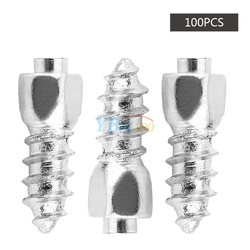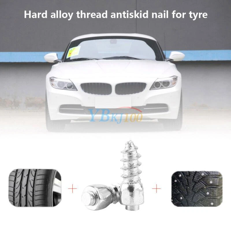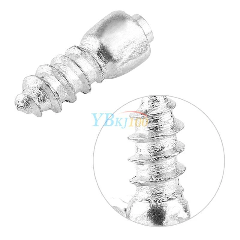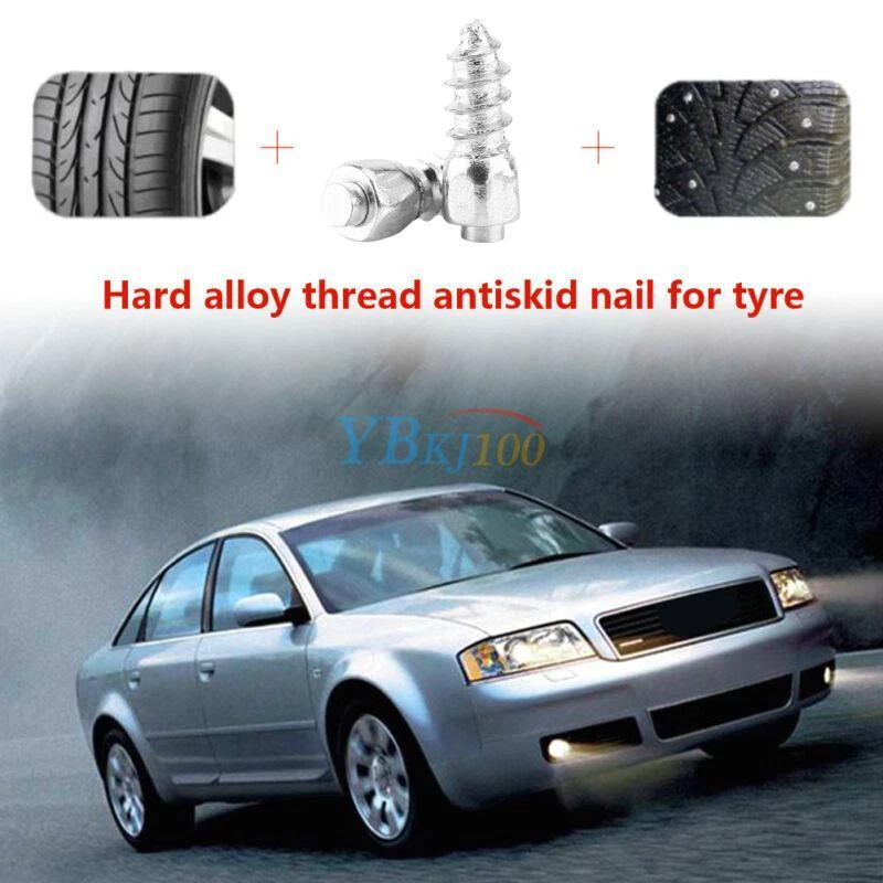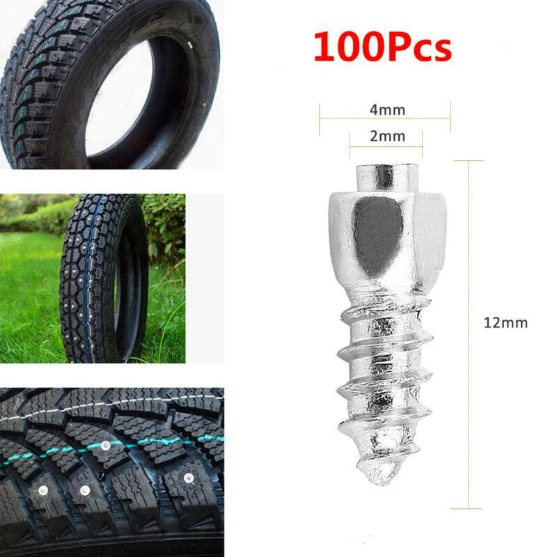 Features: This kind of screws are suitable for most of tires and add off-road capacity to your ordinary, UTV or 4X4 vehicles. It brings a good anti-slip property for your tires. Made of hard metal, these kind of tire stud screws are strong and in use. It has a low ground pressure and it is environmentally with minimum impact. It is easy to install with certain drill and can match well with your vehicle tires. Please choose appropriate size of new studs in the installation process in terms of the depth of tire thread. Specifications: Material: Metal Color: Silver Item Size: 1.2 x 0.4cm/0.47'' x 0.16'' Diameter: 0.2cm/0.078'' Item Quantity: 100 pcs/bag Package Weight: approx. 74g Installation: Drill (using a very small bit) down from the center of chosen knob into the tire. Drill a screw up from inside to out. If the angle isn't perpendicular to the tire, it will stick out one side or the other. Do one hole and screw at a. Put duct tape over the screws on the inside of the tire. Sometimes it is best to use two layers of tape. Package Included: 100 x Tire Stud Screws Note: It is easy to install, but professional installation is highly recommended.