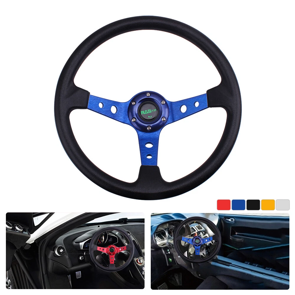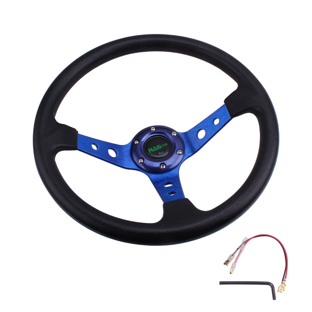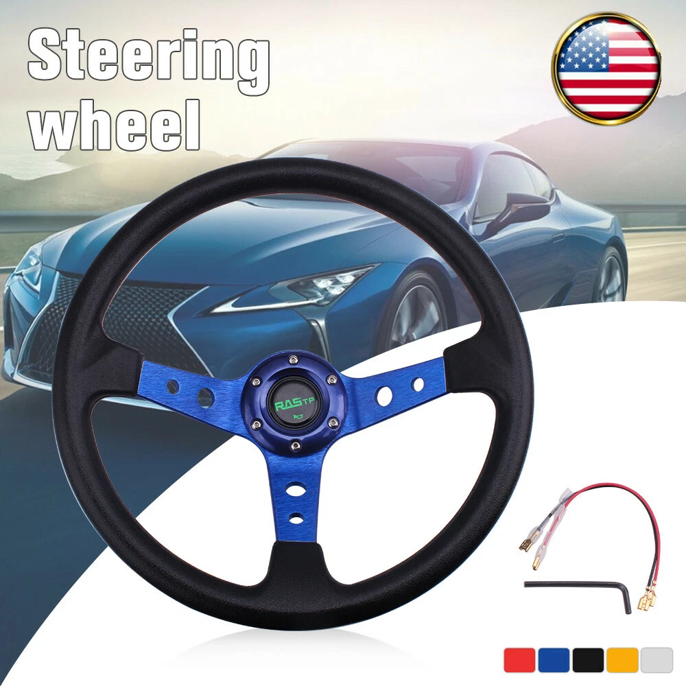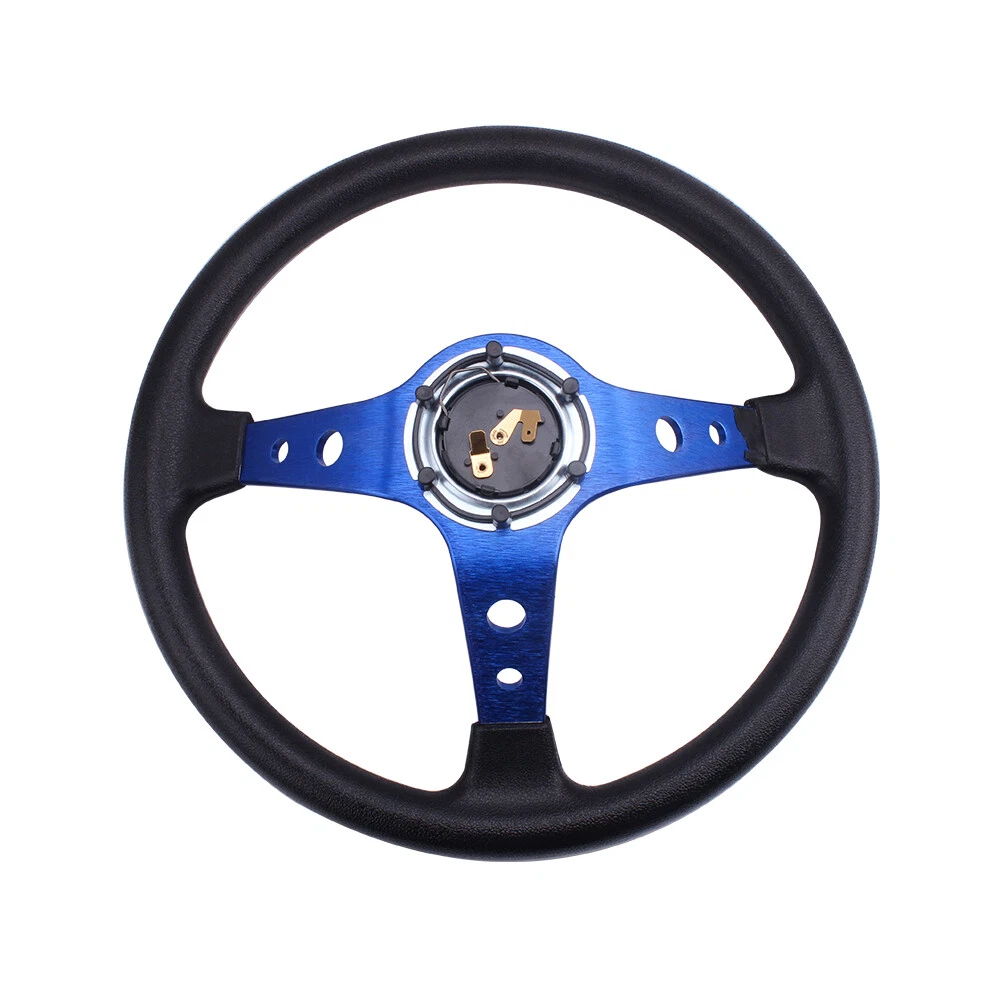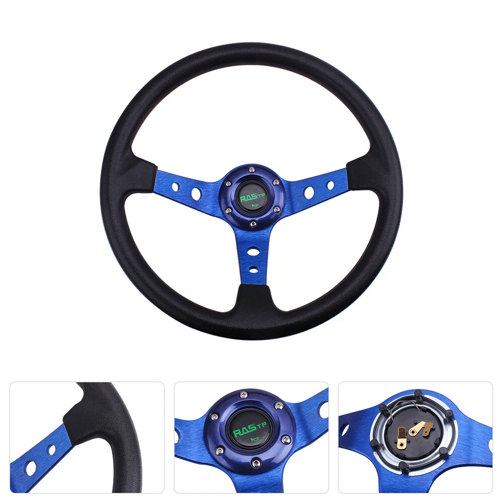 Features: 1.100% brand new 2. Suitable for any car and model 3. Easy to install 4.Black Anodized Spokes With Logo 5.2020 The steering wheel has been improved better, and adding some carbon fiber, which are more popular! Specification Style:Racing style Material: Vinyl Leather grip & Aluminum spoke Diameter: 13.8 "(350mm) Color:Blue Weight:1197g Fitment:Universal Package Included: 1x Steering Wheel (100% Brand New Never Used Or Installed) Notes: 1.Due to the difference between different monitors, the picture may not reflect the actual color of the item. We guarantee the style is the same as shown in the pictures. 2.Please allow slight dimension difference due to different manual measurement. NOTE: All items are Brand New unless stated otherwise on the listing. We sell DIY (Do It Yourself) . We take no responsibility in teaching you how to install. Professional installation is strongly recommended. We offer discount if you buy a lot quantity ,please feel free to contact us.WE HIGHLY RECOMMEND PROFESSIONALINSTALLATION!For any inquiries or special requests such as larger amount ordering please write to us.