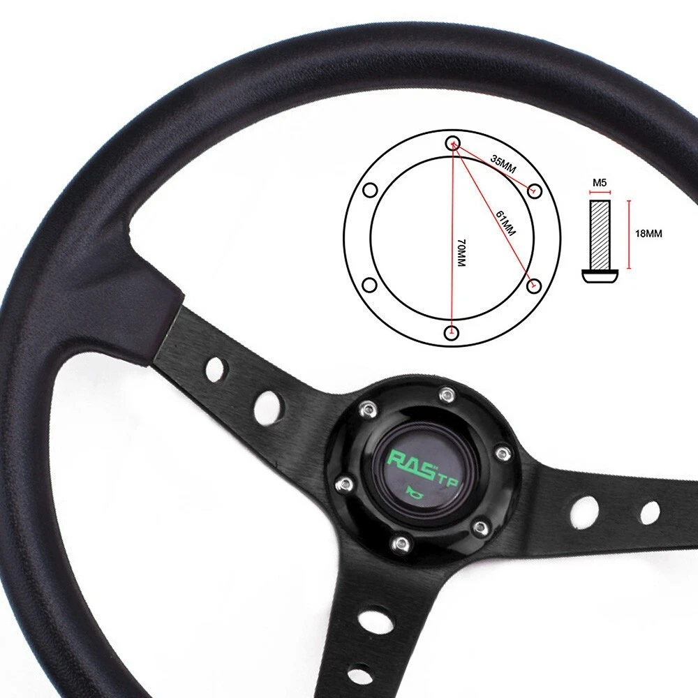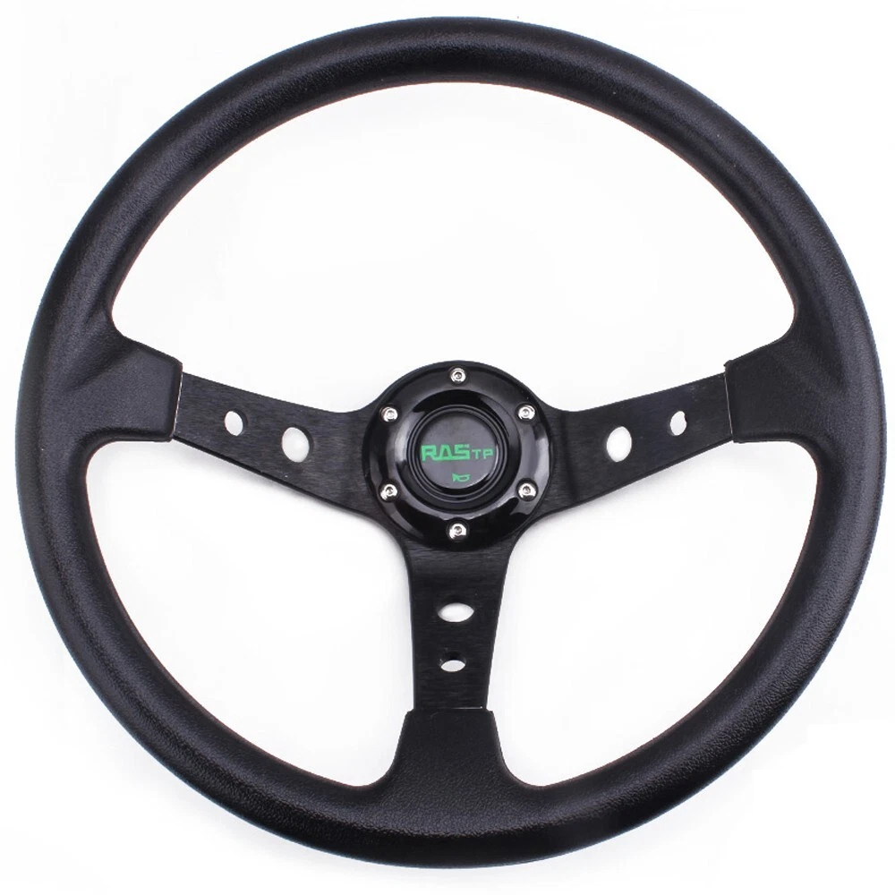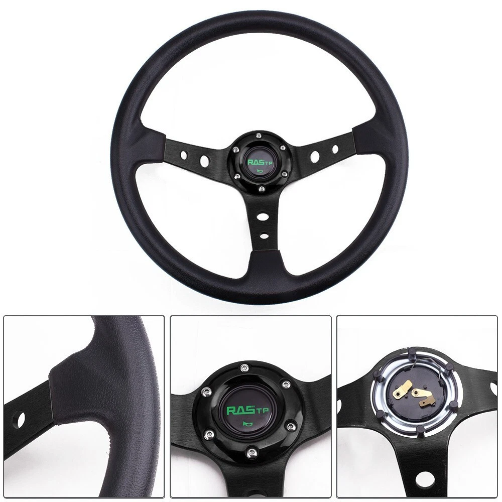 Universal 14" Deep Dish 6 Bolt Racing Steering Wheel With Horn Button Black Features: 1.100% brand new 2. Suitable for any car and model 3. Easy to install 4. Suede Leather With Black Stitching 5.Black Anodized Spokes With Logo 6.2020 The steering wheel has been improved better, and adding some carbon fiber, which are more popular! Specification: Style:Racing style Material: PV+Aluminum Diameter: 13.8"/350mm Color:Black Fitment:Universal Package Included: 1x Steering Wheel (100% Brand New Never Used Or Installed) Notes: 1.Due to the difference between different monitors, the picture may not reflect the actual color of the item. We guarantee the style is the same as shown in the pictures. 2.Please allow slight dimension difference due to different manual measurement. Payment policy Shipping policy Return Policy Product & Price description Contact us Payment policy We only accept PayPal and Payoneer payment, Please be sure your shipping address is correct. Please make sure your account balance is adequate Shipping policy 100% of orders shipped within 24-48 hours. Tracking number will be added to ebay after the shipment, u can track the item status on 17 track net. It's usually delivered within 1-5 business days, If it takes longer than this time, please contact us and we will explain the reason and deal with it. Thank you for your understanding Above time are for reference ONLY. Shipping might be delay by holidays, events and other uncertainties. Note: If there are any customs duties, local taxes or any other import charges, the buyer will bear these charges. Every country has different policies, so you need to know your country's tax policy. Return Policy Please contact us before leaving neutral or negative feedback and we will try our best to resolve any issue. Feedback will be left to every buyer who completed the transaction and left positive feedback to us. We accept 30 days return only if item is original. Refund will be issued once we receive your returned items. Buyer is responsible for all return shipping charges. Product & Price description About the product --- The product has been adjusted, you can rest assured to use. If you are not sure whether the model is suitable, please contact me by email, thank you About Price ---The price of the product is reasonable. If you want a lower price , please send a message to my email address. I will discuss with you the appropriate price Contact us For any reason you want to contact us,We aim at satisfying every visitor, no matter what kind of situation you meet with, we will be right here to serve you. Please contact our team.If you are happy with the transaction with us, leaving us an ALL-5-STAR positive feedback would be greatly appreciated. Have a good shopping.