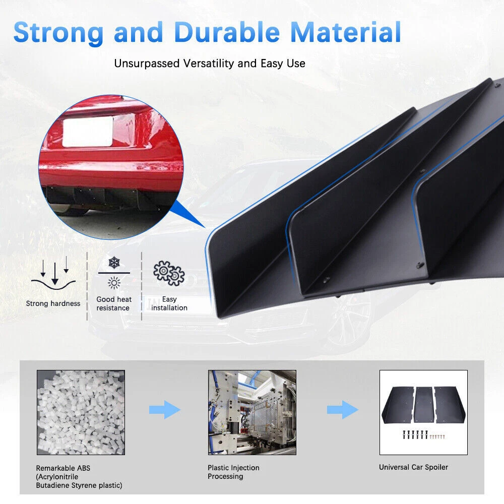 Features: Keep the car steady and reduce the noise during high-speed driving. Fin Design, look fashion and beautiful, make your car unique and impressive. Made of high Quality ABS, Midweight, Scratchproof and Wear resistant, Durable and not easy to rust. Easy to install, Non-destructive installation and Removable, professional installation is recommended. Specification: Condition: 100% Brand New Material: High Quality ABS Plastic Color: Raw Black Dimension: Approx 22"x 20" (Check image for detail) Placement on Vehicle: Lower Quantity: 1Pc Fitment: For Mitsubishi Lancer EVO X , please measure your vehicle length and dimensions prior to purchasing. *Item Compatibilities is for reference only.* Package Included: 1x Rear Bumper Diffuser Fin and Screws On Dec 24, 2024 at 21:56:07 PST, seller added the following information: On Jan 8, 2025 at 13:55:29 PST, seller added the following information: