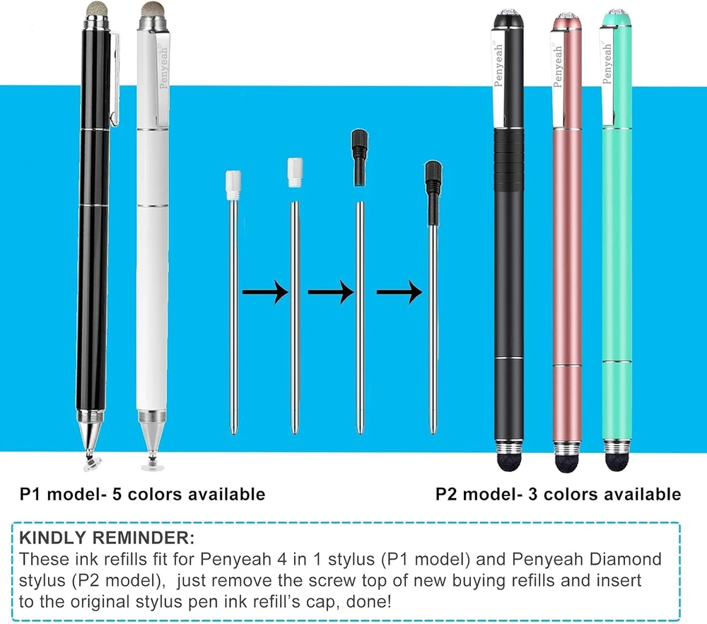 Store New Arrivals Add to Favorite View Feedback Contact Penyeah Stylus Pen 4 in 1, Universal Stylus Pens for Touch Screens, High Precision and Sensitivity (Black), with Replacement 2.75" Ballpoint Pen Refills (12Count, Black Ink) Description Batteries Required? No Are Batteries Included No Color Black Brand Penyeah Material Rubber Compatible Devices Smartphone Universal Stylus Pen (Black Stylus) *1 Replacement Tips Pack*1: including Disc Tips *5; Mesh Tip *1; 0.27'' Rubber Tip *1; 0.2'' Rubber Tip *1; Black Ink Pen Refill*1 Pack of 12 count Black Ink Pen refills *1 This is the bundle of Penyeah 4 in 1 stylus pen black color and 12 count of ballpoint pen black ink refills. if you need other color Penyeah stylus pen or blue ink refills, please visit Penyeah brand store. ABOUT US We offer the best prices around on high quality products. Our E-store includes media such as books, movies, music and games while offering electronics, toys, sporting apparel, clothing, tools, general home, garden items and more. SHIPPING We are always working hard to ensure your package arrives as soon as possible. Please understand that some factors like weather, high postal traffic, and the performance of shipping companies are outside of our control. We offer free shipping to the lower 48 states and ship within 2 business days of payment, usually sooner. We do not accept P.O. Boxes. Please provide a physical address. For shipping outside of the continental USA, we only use eBay's Global Shipping Program.The item is shipped to KY and then sent to the rest of the world. International customers are responsible for all duties and taxes. Continue to check out in order to calculate costs for shipping the item to your country. Messages regarding eBay's Global Shipping Program MUST be directed at eBay EXCLUSIVELY. RETURNS We offer a 30-Day Return Policy on items which you are not completely satisfied with. You have the option for a full-refund or an exchange of the item. No returns are available on items shipped outside of the USA. PAYMENT We accept PayPal. CONTACT US This page content is yet to come Please ad us to your favorite seller and visit again later Thank You CUSTOMER SATISFACTION We try our very best to make sure every customer is completely satisfied. If there's a problem, message us! We're happy to help. WE ACCEPT Copyright © 2021 AutoDS. | All Rights Reserved