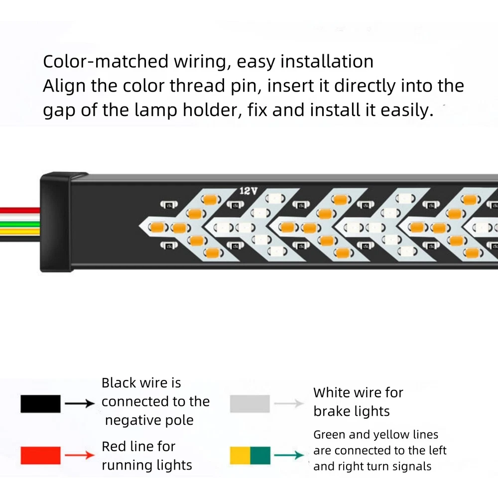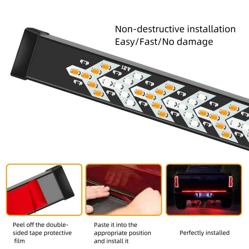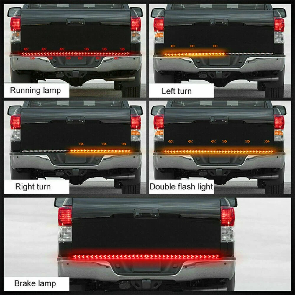 Product Description Universal 60" LED Truck Strip Tailgate Turn Signal Brake Tail Light Bar DC12V Features: FULL FUNCTIONS: The new style tailgate light features full functions of the brake, flowing turn signal, double flash, and brake light. BRIGHT LIGHTS: With 528pcs(276Pcs Red+252Pcs Yellow)2835 SMD led chips to give out the super-bright beam. Adds clear visibility to the rear drivers, better-ensuring safe traffic on roads. UNIVERSAL FITMENT: This flexible light strip features 60 inches long, widely suited for almost all 12V operated at DC 12V wide voltage, Pickup Trucks, Trailers, Cars, SUV, RV, VAN, boat anchor, etc. Specifications: Type: Truck Tailgate Strip Bar Shell Material: PVC LED Color: Red/Yellow Red For Brake Light and running light (Will Not override Turn signal) Yellow For Turn Signal Light (flowing) (Will override brake light) Brake Light Quick flash 3 times and stay on. (Red color) Double flash: Yellow streamer from the middle to the left and right Light Source Power: 5W Current: 0.3A Luminous Flux: 1000LM Use Voltage: DC12V Waterproof Rate: IP67 Package contents: 1x 60inch Truck Tailgate LED Light Strip Bar If you have any questions, please feel free to contact us via ebay. We usually respond within 24 hours. Payment Shipping Returns Contact Us We accept all verified payments from ebay. Orders will be shipped after receiving cleared payment. Payment due within 7 days after auction ends and for buy it now listings. We ship most of our orders within 24 hours, and may up to 48 hours for. If you want faster shipping way. Please contact us before making payment. Sometimes due to problems with our transportation company system, your shipping information may be delayed to update. We recommend that you try again after 3-4 days. If you still haven't checked the shipping information, you can contact us by ebay message. Always believe we can figure things out with communication, if it comes to return, the pacakge must be intact and the same as you receive. If you have any questions, please feel free to email our service specialists 24 Hours a Day, 7 Days a Week. We will reply you ASAP. Return/refund is accepted within 30 days after the buyer receives the item. NO exchange will be accepted after 30 days from the date when the item is received. Please contact us first before returning your product!!! If you have any questions, our Customer Service staffs welcome you to email us. We strive to answer all questions and resolve any problems as quickly as possible. You can contact us 7*24, we will reply at the first time, and we will surely solve your problems. Note: 1.We try our best to reply to your emails as soon as possible, however, due to high volume of daily incoming emails and time zone difference, we may not be able to reply your emails immediately. Please allow 1 business days for us to response. If you do not receive any reply from us, please check your email ensuring your mailbox has not reached full size. 2.Due to some ISP SPAM filter settings, you may not be able to receive our replies; if you have problems receiving our emails, you may need to use a different email account to contact us. 3.Please give us the opportunity to resolve any problem. We understand the concerns and frustrations you might have, and will try our best to resolve the issues. Please email us before leaving any negative feedback or open any dispute on PayPal. 4.We care about our valued customers, and will always try to help you. So if you have any problems, please e-mail us immediately. Payment We accept all verified payments from ebay. Orders will be shipped after receiving cleared payment. Payment due within 7 days after auction ends and for buy it now listings. Shipping We ship most of our orders within 24 hours, and may up to 48 hours for. If you want faster shipping way. Please contact us before making payment. Sometimes due to problems with our transportation company system, your shipping information may be delayed to update. We recommend that you try again after 3-4 days. If you still haven't checked the shipping information, you can contact us by ebay message. Returns Always believe we can figure things out with communication, if it comes to return, the pacakge must be intact and the same as you receive. If you have any questions, please feel free to email our service specialists 24 Hours a Day, 7 Days a Week. We will reply you ASAP. Return/refund is accepted within 30 days after the buyer receives the item. NO exchange will be accepted after 30 days from the date when the item is received. Please contact us first before returning your product!!! Contact Us If you have any questions, our Customer Service staffs welcome you to email us. We strive to answer all questions and resolve any problems as quickly as possible. You can contact us 7*24, we will reply at the first time, and we will surely solve your problems. Note: 1.We try our best to reply to your emails as soon as possible, however, due to high volume of daily incoming emails and time zone difference, we may not be able to reply your emails immediately. Please allow 1 business days for us to response. If you do not receive any reply from us, please check your email ensuring your mailbox has not reached full size. 2.Due to some ISP SPAM filter settings, you may not be able to receive our replies; if you have problems receiving our emails, you may need to use a different email account to contact us. 3.Please give us the opportunity to resolve any problem. We understand the concerns and frustrations you might have, and will try our best to resolve the issues. Please email us before leaving any negative feedback or open any dispute on PayPal. 4.We care about our valued customers, and will always try to help you. So if you have any problems, please e-mail us immediately. powered by