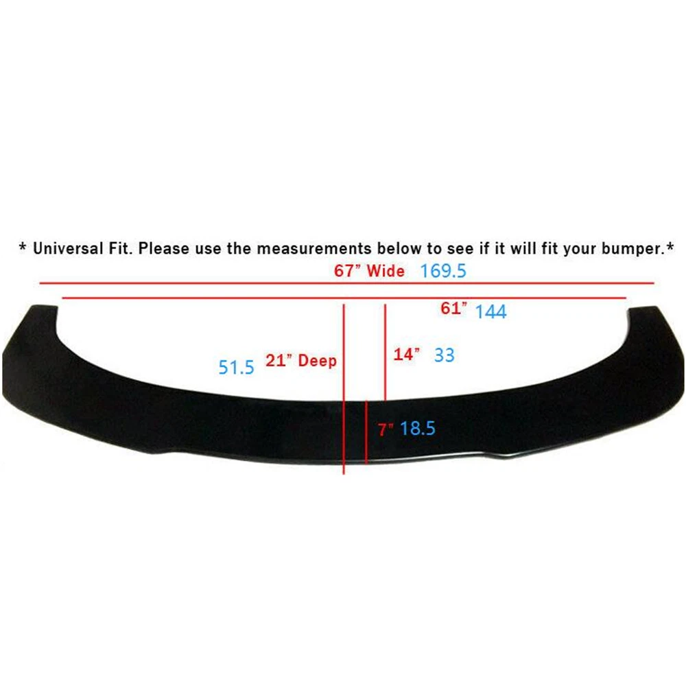 Store Categories Store Categories Business & Industrial ATV, Side-by-Side & UTV Parts Windshields Grab Bars & Guards Other Car & Truck Parts & Accessorie Interior Exterior Lighting & Lamps Bumpers & Reinforcements Grilles Seats & Seats Cover Racks Body Moldings & Trims Exhaust System Suspension & Steering Radiators Fenders & Mud Flaps Dash Parts Body Kits Snow Plows & Parts Mirrors Other Golf Cart Parts & Accessories Home & Garden Lawn Mower Parts Other Sporting Goods Electric Bicycles Other Motorcycle Accessories Backrests & Sissy Bars Fairings & Body Work Foot Pegs & Pedal Pads Intake Ducts & Scoops Other Luggage Seat Parts Saddlebags & Accessories other Other Detail Universal 67’’ x 21’’ Bumper Lip Spoiler Chin Flat Splitter Plate Under Diffuser Specifiction Condition:100% New Material:Plastic Color:Black Surface Finish:Painted Item Length: 67" Item Width: 21" Warranty:1 Year Fitment Type:Direct Replacement Placement on Vehicle:Front Installation Instructions:Not included Easy installation with basic hand-tools, drilling may required. Self-tapping screws only if applicable. Some lips re-uses the factory hardware or only double-sided tape.Professional Installation Is Highly Recommended Fitment Universal (Please Measure your bumper BEFORE purchase - 67"L) Package 1x Front Bumper Lip Flat Splitter Plate Industrial Double-sided Tape is NOT Included, but is REQUIRED for installation. No hardware included. Shipping All items will be shipped out in 1 business day,no expedited service available. (USA only,Does NOT include Hawaii,Alaska or Puerto Rico, PO Boxes/APO's) Contact us Any Questions,Just feel free to contact us on eBay.We will reply you in 1 business day. Payment Method Shipping Policy Returns Policy Contact Us Payment Method Payment is expected within 4 days. Product availability will not be guarantee after 4 days. Payment received on weekends or holiday will be process on the next working day. Item will be ship to the address provided in eBay/PayPal. For faster service, please update your correct address before sending payment. We accept instant PayPal Payment or Credit/Debit Card payment thru PayPal. All items paid by eCheck will be process as soon as payment clears. Feel free to contact us for more information. Shipping Policy (USA only,Does NOT include Hawaii,Alaska or Puerto Rico, PO Boxes/APO's) Returns Policy For return, all we ask is you send it back in the same condition it was received - new and unused. In order to process a return or exchange instantly for you, please send us a message with pictures firstly when you contact us,we will be happy to assist you immediately. Your satisfaction is our priority. Contact Us Any Questions,Just feel free to contact us on eBay.We will reply you in 1 business day. On Apr 18, 2024 at 04:06:42 PDT, seller added the following information:
