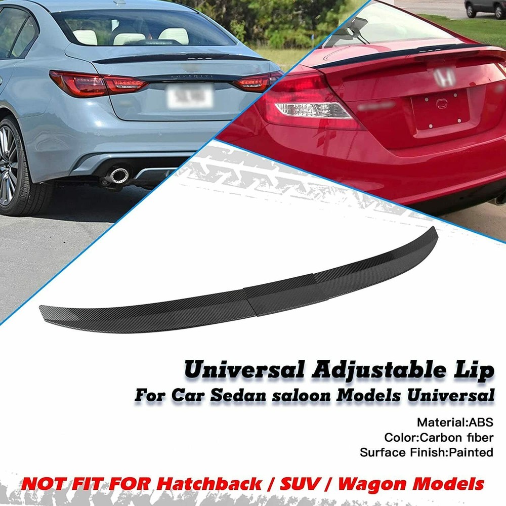 Specification: -Type: Rear Trunk Spoiler Lip -Material:ABS -Color:Black -Surface Finish: Carbon fiber -Fitment Type:Direct Replacement -Attachment Method: Adhesiver -Placement on Vehicle:Rear, Upper Automotiveparts_aa Best choice of motor parts Universal Adjustable Rear Trunk Spoiler Lip For Car Sedan Roof Tail Wing Black Specification: -Type: Rear Trunk Spoiler Lip -Material:ABS -Color:Black -Surface Finish: Carbon fiber -Fitment Type:Direct Replacement -Attachment Method: Adhesiver -Placement on Vehicle:Rear, Upper Feature: -100% Brand New & Never Used. -Direct Replacement For Original Spoiler or Perfect For Model Without the Factory Spoiler. Please Note that It May Not Cover The Holes From Original Spoiler. -Adjustable length to fit different size cars. -Made of High Quality Lightweight ABS Material. -Increase The Down-Force and Improve Handling. -Improve Your Car Aerodynamic & Sport Appearance. -No Instruction is included, Professional Installation Is Highly Recommended. Drilling is Only Optional. Installation Can Be Done By using Double Sided Tape Since the Spoiler is Lightweight. Fitment : For Car Sedan saloon Models Universal! NOT FIT FOR Hatchback / SUV / Wagon Models! For BMW F10/F11 520i 528i 535i 550i Sedan Models For BMW F32 F33 F36 4-Series 420i 430i 440i Sedan Models For BMW F30 F80 M3 F82 M4 320i 325i 330i 335i 340i Sedan Models For BMW G30 G31 5 SERIES All Sedan Models For BMW E39 E46 E90 E92 E93 Sedan All Models For Benz W205 W204 W203 C Class C200 C250 C300 C350 C63 AMG All Sedan Models For Benz W211 W212 W213 E Class E220 E250 E350 E280 E300 E63 AMG All Sedan Models For Benz CLA W117 C117 SedanModels For Benz AMG GTR All Models For AUDI A3 A4 A5 A6 A7 A7 A8 RS5 RS6 RS7 S3 S4 TT All Sedan Models For LEXUS IS200T IS250 IS350 ISF GS350 GS450H RC-F All Sedan Models For LEXUS ES300h ES330 ES350 CT LC LS LX All Sedan Models For Infiniti Q50 Q60 Q70 G25 G37 All Sedan Models For HONDA Civic Accord 9 Sedan Models For Nissan SENTRA Altima Maxima 300Z 350Z 370Z Skyline R33 GTR All Sedan Models For Toyota Corolla Camry Sienna 86 Scion FR-S All Sedan Models For Mitsubishi Lancer Evolution All Sedan Models For Subaru WRX STI Impreza BRZ Legacy SedanModels For VW CC Passat Jetta Models For Mazda 3 Axela 6 Atenza 3 6 All Sedan Models For Ford Mustang Mondeo All Sedan Models Package Includes : 1 x Rear Trunk Spoiler Lip Notes: (1)Please make sure the part numbers matches the part you are replacing. Please review the information above carefully to make sure this part fits your vehicle. (2)If you have questions on whether this part fits your vehicle, please feel free to contact us via eBay.Thank you! (3)We will process your order within 1 business day upon payment. (4)If you have any questions about quality, shipping or other problems, please contact me first via eBay message. (5)Please don't open cases or return requests without contacting me. I will give you a satisfy solution. Certificates of our product: Our Factory: Item Specifics Brand CarBole Type Rear Trunk Spoiler Lip Placement on Vehicle Rear Material ABS Plastic Color Black Features Easy Installation Fitment Type Direct Replacement Quantity 3 Manufacturer Part Number Rear Trunk Spoiler Lip OE/OEM Part Number Rear Trunk Spoiler Lip Attachment Type With double-sided tape Universal Fitment Yes Manufacturer Warranty Lifetime Interchange Part Number Rear Trunk Spoiler Lip Superseded Part Number Rear Trunk Spoiler Lip Finish Carbon Fiber Texture Adjustable length 45.27inch-53.14inch Note NOT FIT FOR Hatchback / SUV / Wagon Models! Payment Returns Automotiveparts_aa Best choice of motor parts DESCRIPTION PAYMENT SHIPPING RETURN POLICY CONTACT US Shop Category Store Home Ignition Coils ◈ Ignition Coils Series Automotive Tools & Supplies Exterior Parts & Accessories Home&Garden Home Major Appliance Business & Industrial Car & Truck Parts & Accessorie Motorcycle & Scooter Parts Boat Parts Other Hot Item Set Of 40 Car Push Retainer Pin Body Bumper Rivet Trim Moulding Clips Parts Kits USD 7.99 Stainless Steel Mount Hood Pins Plate Bonnet Lock Kit Universal Racing Style US USD 10.74 8XIgnition Coil Pack & SP479 Iridium Spark Plug For Ford F-150 4.6/5.4L V8 DG508 USD 65.95 8X Ignition Coils For 1999-2004 Ford F-150 Expedition Lincoln 4.6/5.4L V8 DG508 USD 36.99 12V Universal Micro Electric Diesel Fuel Pump 5/16 inch Inlet 35GPH 5-9PSI USD 23.99 Excellent Delivery Help & Info Payment Policy Shipping Policy Return Policy FAQ About Us New List Item Engine Timing Chain Tool Kit for Audi A3 A4 Q3 Q5 Volkswagen Golf Jetta 2.0 TFSI USD 127.94 Engine Timing Chain & Tool Kit for Audi A3 A4 Q3 Q5 Volkswagen Golf Jetta 2.0T USD 127.94 3X Ignition Coil DR39+Spark Plug+Wire For Chevrolet Impala Buick LaCrosse 3.8L USD 76.99 6X Ignition Coil Pack for Ford Escape Taurus Mazda Mariner Mercury 3.0L V6 DG500 USD 31.59 4X Ignition Coil & Spark Plug Pack For Nissan Altima Sentra Infiniti QX70 UF549 USD 75.86 Universal Adjustable Rear Trunk Spoiler Lip For Car Sedan Roof Tail Wing Black Specification: -Type: Rear Trunk Spoiler Lip -Material:ABS -Color:Black -Surface Finish: Carbon fiber -Fitment Type:Direct Replacement -Attachment Method: Adhesiver -Placement on Vehicle:Rear, Upper Feature: -100% Brand New & Never Used. -Direct Replacement For Original Spoiler or Perfect For Model Without the Factory Spoiler. Please Note that It May Not Cover The Holes From Original Spoiler. -Adjustable length to fit different size cars. -Made of High Quality Lightweight ABS Material. -Increase The Down-Force and Improve Handling. -Improve Your Car Aerodynamic & Sport Appearance. -No Instruction is included, Professional Installation Is Highly Recommended. Drilling is Only Optional. Installation Can Be Done By using Double Sided Tape Since the Spoiler is Lightweight. Fitment : For Car Sedan saloon Models Universal! NOT FIT FOR Hatchback / SUV / Wagon Models! For BMW F10/F11 520i 528i 535i 550i Sedan Models For BMW F32 F33 F36 4-Series 420i 430i 440i Sedan Models For BMW F30 F