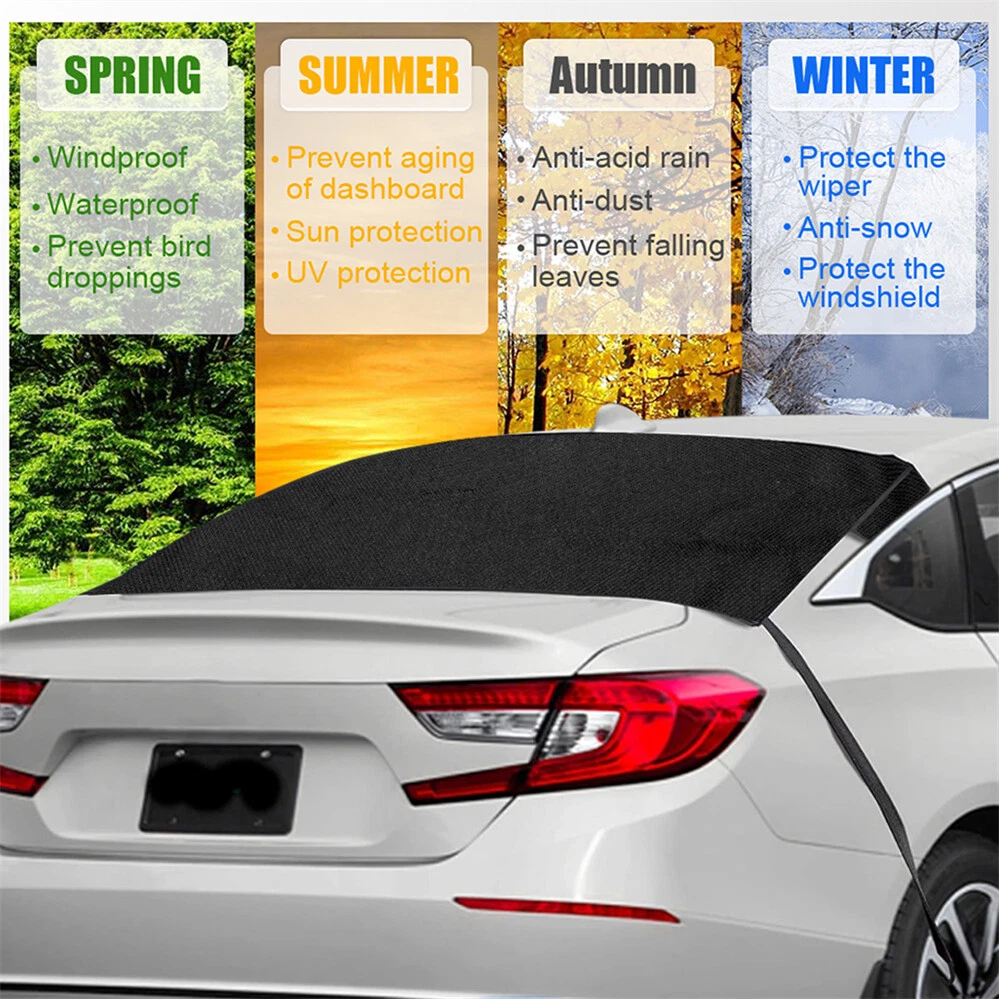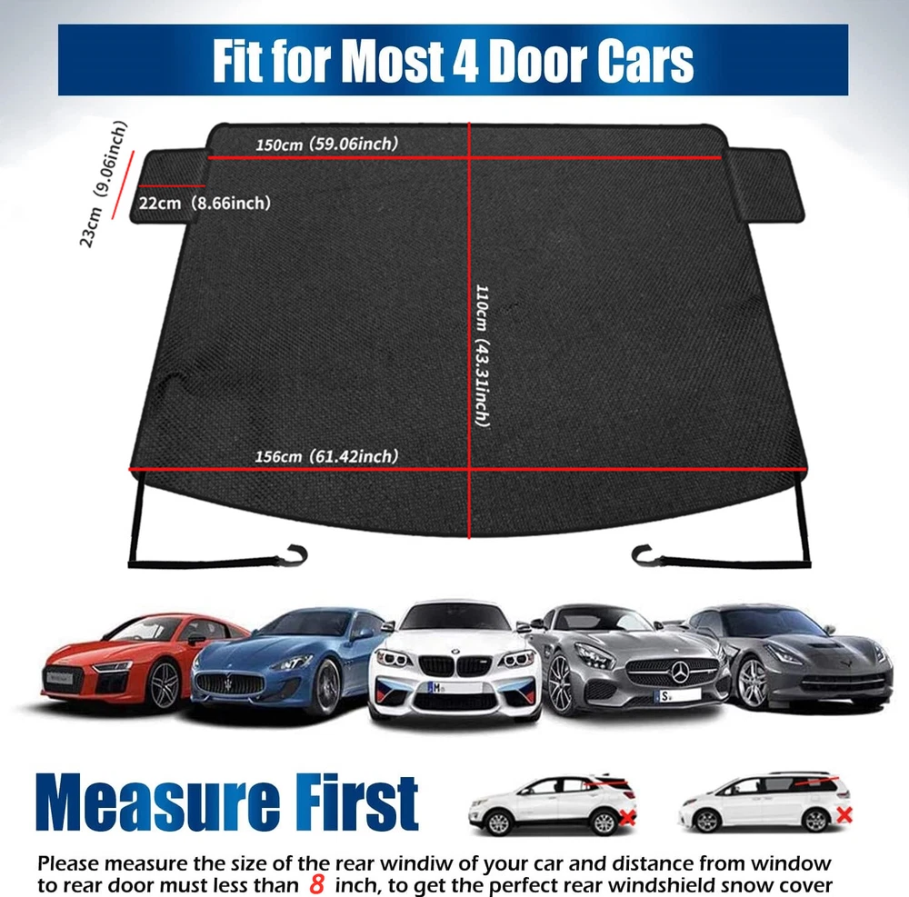 Universal Rear Snow Cover Black Windshield Ice Frost Sun Shade Protector Guard Features 【Size】 The size of the rear window snow cover is 59"Lx43"W (not including the length of the flaps), and the flaps on each side are 9"L. Note: To make sure full cover your car better, measure the dimensions of your rear windshield before purchase! 【Heavy Duty Oxford Material 】The rear window frost protector is made of 600D oxford fabric . It can be soft and effectively waterproof. The soft inner prevents scratches on the windscreen and also prevents the car windshield from frosting. The interior is PVC material, which is a thicker and good sense of draping. Prevent your car from snow/ice/dust/frost/sleet slush hail/other winter debris. 【Hook Straps and Security Flaps】 The nylon elastic hook straps can help the cover stay in its place preventing harsh winds. The side panel flap acts as an anti-theft design, the flaps are clipped to the car door when used and prevent the car back window cover from being blown away by heavy wind. 【Easy To Install】 Easy install and easy storage into a compact size into a draw-string package bag after use. A person can easily do it. All weather protection, easy to deal with any weather. Summer can prevent sunscreen and rain; Fall can prevent leaves and dust; Winter can prevent snow and frost. Size Recommend It will fit for ALL SUV, Vans, and Cars with rear windshields not exceeding 59x43 inch ! Product Details Type: Windshield Snow Cover Material: 600D oxford fabric Related Parts: Rear Windshield Attachment Method: Unfold Behind Windshield Color: Black Size: 59"Lx43"W Net Weight (g/lb): 600g Package Included 1x Black Rear Windshield Snow Cover Payment We can accept payment of Paypal only. Payment should be made within 7 days after purchasing. (No payment orders eBay system will automatically open unpaid dispute, and this is not good to your account.) Shipping Item will be shipped out within 48 hours upon receipt of your cleared payment. We can not ship on Sundays and other public holidays. International Buyers Please Note: 1, Import duties, taxes and charges are not included in the item price or shipping charges. These charges are the buyer's responsibility. 2, Please check with your countrys customs office to determine what these additional costs will be prior to bidding/buying. Please make sure your address in paypal is correct. we will only follow your address listed in the Paypal payment for the shipment. Combine shipment is not allowed. If you want to combine all the items together, you should still pay for all of the shipping, insurance and handling fee! Returns We offer you 30 days return. The buyer is responsible for return shipping including a result of customer error or wrong item bought: 1) If you received an incorrect, damaged, defective, or item not as described, contact us for a partial/full refund or replacement on our cost. 2) If you want to return the item, please contact us within 60 days after package received. Return products must also be in its original condition: including box, packaging and all other accessories. Feedback 1.We are appreciated your business and to improve our customer service and our commitment to quality. 2.We will leave a positive feedback immediately after payment is received. We appreciate a positive feedback as much as you do. 3.If for some reason there is any issue with the purchase, please contact us prior to leaving feedback, and we will be glad to work with you to have it resolved. Contact Us We do appreciate your purchase from our store. If you are satisfied with the item as well as our service, please kindly leave us a Positive Feedback to help develop our business. Thank you in advance. Our office hours are MONDAY - FRIDAY 9:00PM - 18:00PM PST , we do not answer any E-mails or eBay messages on weekend. All E-mail or eBay message take us around 24 hours to respond. Thanks a lot. Universal Rear Snow Cover Black Windshield Ice Frost Sun Shade Protector Guard Features 【Size】 The size of the rear window snow cover is 59"Lx43"W (not including the length of the flaps), and the flaps on each side are 9"L. Note: To make sure full cover your car better, measure the dimensions of your rear windshield before purchase! 【Heavy Duty Oxford Material 】The rear window frost protector is made of 600D oxford fabric . It can be soft and effectively waterproof. The soft inner prevents scratches on the windscreen and also prevents the car windshield from frosting. The interior is PVC material, which is a thicker and good sense of draping. Prevent your car from snow/ice/dust/frost/sleet slush hail/other winter debris. 【Hook Straps and Security Flaps】 The nylon elastic hook straps can help the cover stay in its place preventing harsh winds. The side panel flap acts as an anti-theft design, the flaps are clipped to the car door when used and prevent the car back window cover from being blown away by heavy wind. 【Easy To Install】 Easy install and easy storage into a compact size into a draw-string package bag after use. A person can easily do it. All weather protection, easy to deal with any weather. Summer can prevent sunscreen and rain; Fall can prevent leaves and dust; Winter can prevent snow and frost. Size Recommend It will fit for ALL SUV, Vans, and Cars with rear windshields not exceeding 59x43 inch ! Product Details Type: Windshield Snow Cover Material: 600D oxford fabric Related Parts: Rear Windshield Attachment Method: Unfold Behind Windshield Color: Black Size: 59"Lx43"W Net Weight (g/lb): 600g Package Included 1x Black Rear Windshield Snow Cover On Feb 28, 2025 at 01:20:33 PST, seller added the following information: