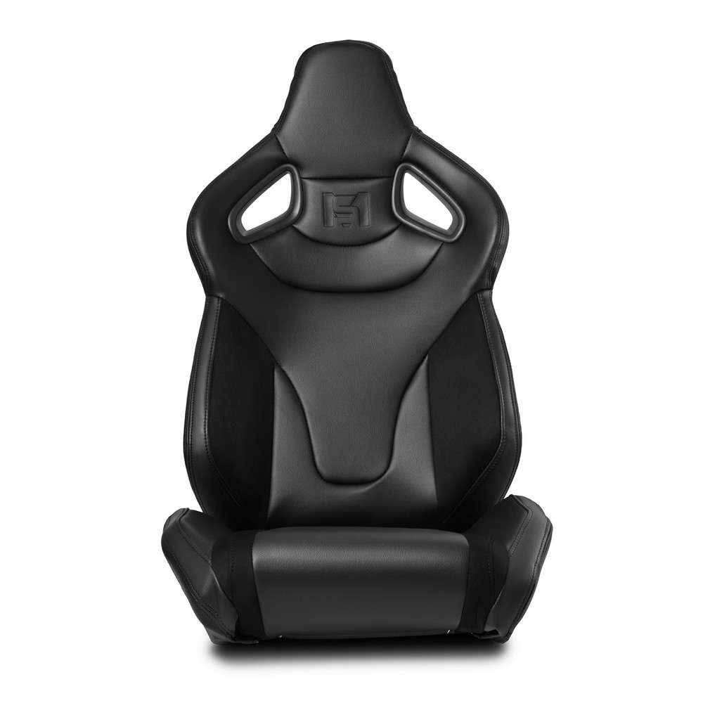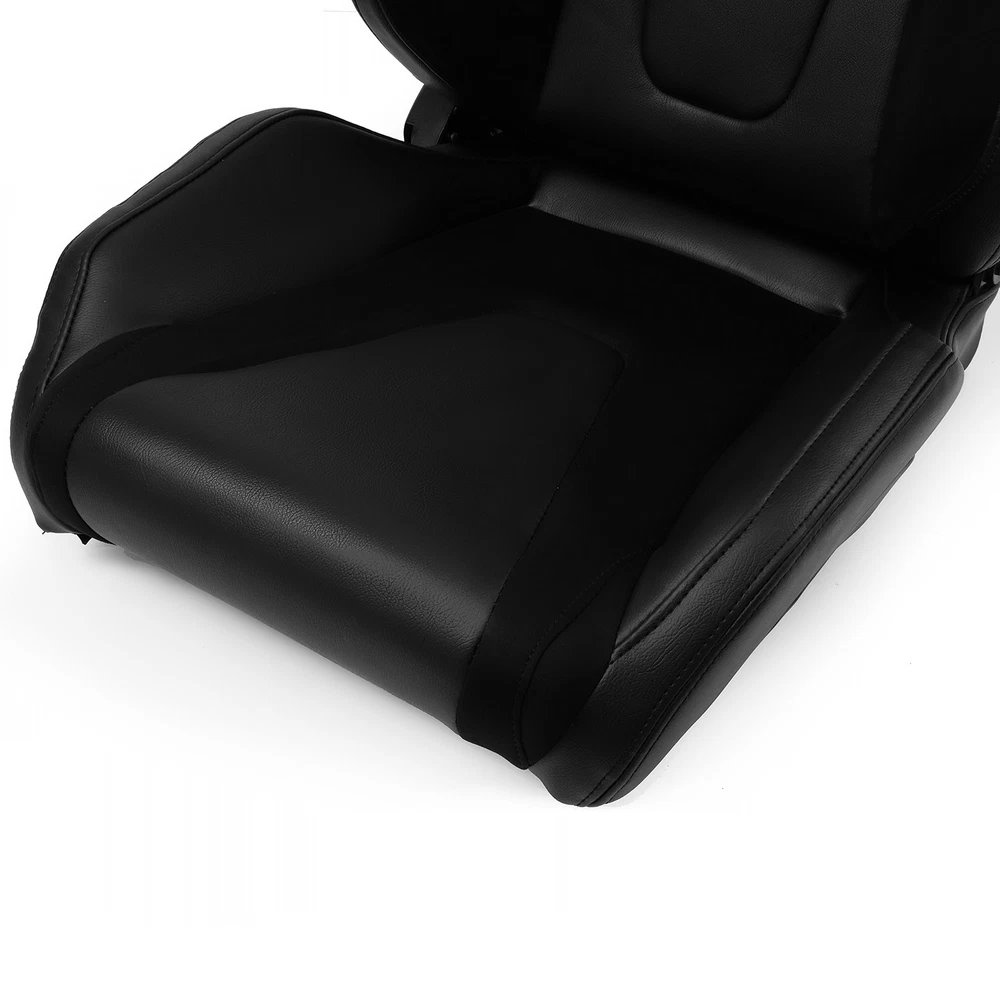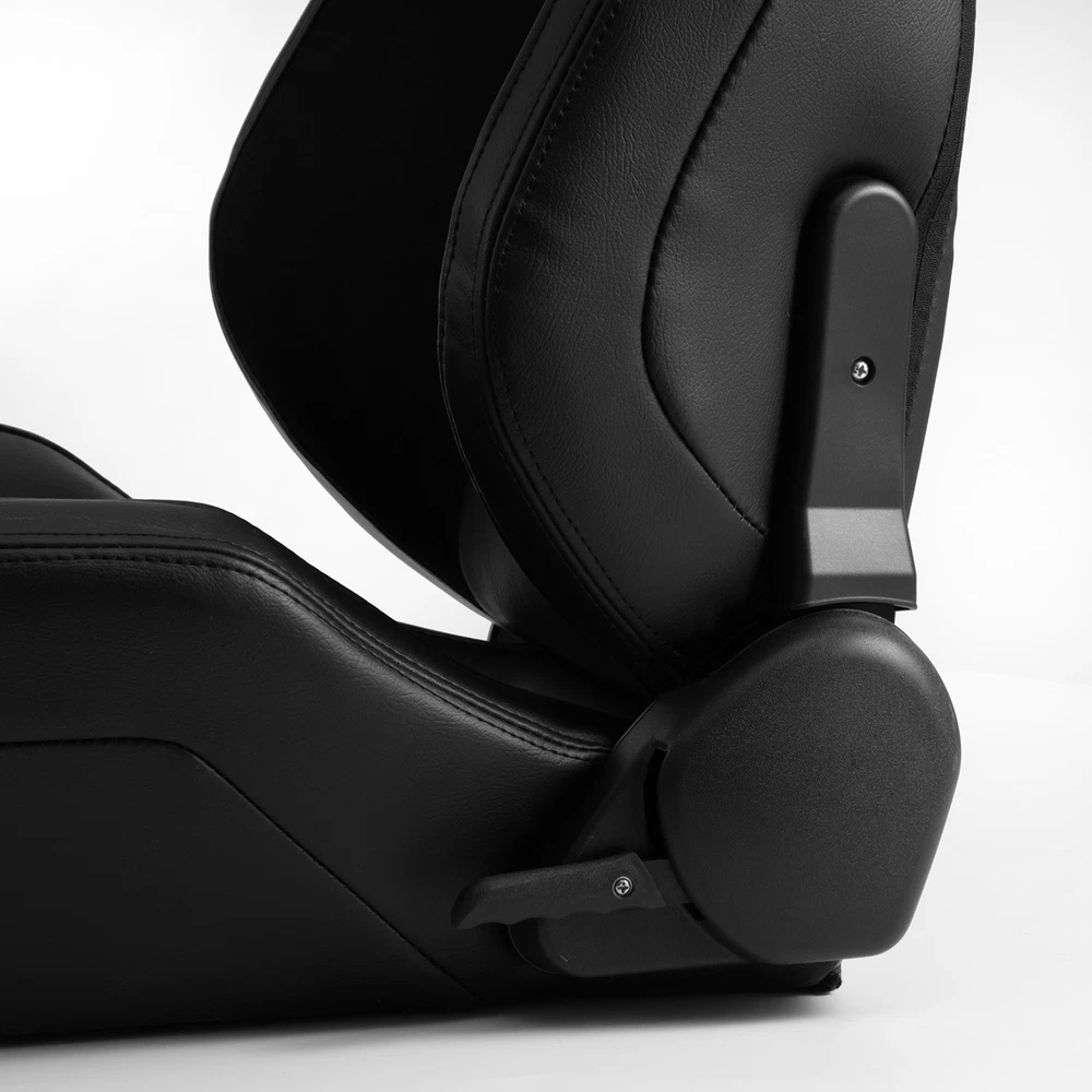 2 x Reclinable Racing Seats Pair Black PVC Main White Line Reclinable Seats