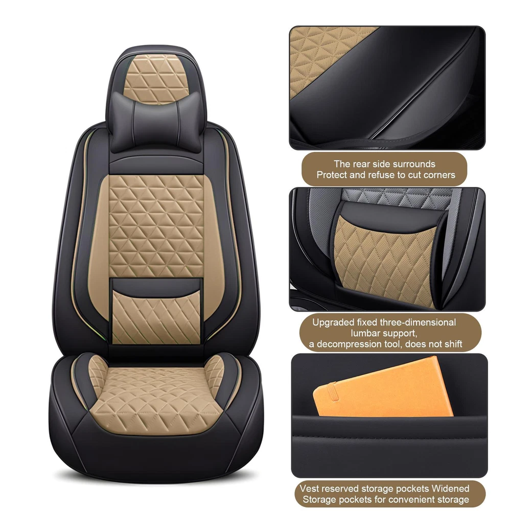 Store category Sign Up Now ! You may also like Product Description Car Seat Cover Leather Full Set | Breathable Nappa Seat Protector | Front Rear Seat Covers Set of 5 Car Interior Accessories for Most Cars. Experience comfort and style on the road with our Car Seat Cover Full Set. The 360 Degree Full Surround Design caters to both driver and passenger. Punching equipment ensures durability, while a full set of accessories caters to different needs. Specification: Product Name: car seat cover leather full set Color: black and white, black and red, black and blue, beige Material: Nappa Package method: all-inclusive Suitable models: 5-seater models such as cars and SUVs; Style: Simple and comfortable Suitable for season: four seasons Packing List: Seat covers x5 Heads cushion x5 Headrest x2 1 pack of fixed buckles (18 buckles, 8 buttons) Payment Delivery details Terms of sales About us Feedback & DSRs Payment Before you palce an order, please kindly make sure that you have a paypal account. We accept PAYPAL payment only. Payment should be completed within 2 days after auction closed, or unpaid dispute will be filed for an closing auction. An unpaid case will be filled after 4 days. Delivery details We ship to your eBay address. Each package will be shipped to US by UPS Regular Parcel with tracking number. Please check your shipping address carefully before checkout, it can't be changed if order completed. All items will be shipped within 1-2 business day upon receipt of payment.Orders placed on weekend will be shipped within 3 days. If you do not receive your item in 7-10 business days.please contact us immediately for further assistance. We will be responsible for any damages or losses incurred in the shipping process. About us We maintain high standards of excellence FIVE STAR and strive for 100% customer satisfaction! Positive Feedback is very important to us. We hope that you contact us immediately Before you give us neutral or negative feedback, so that we can satisfactorily address your concerns. We promise to offer the lowest price and high quality produce. Our working time: From Monday to Friday(9:30 am to 18:00pm), we don't working on holidays ,hope you can understand and know that , thank you. Please always talk to us via ebay Message. We appreciate your business and look forward to growing our e-Bay sales with satisfied customers. Feedback Contact us If you have any questions, please feel free to contact with us by ebay Message during our business hours ( 9:30a.m. to 5:30 p.m.), or email us through eBay, we will try our best to help you to resolve it. For any presale or after-sale questions,please do feel free to email us! Due to the time difference, each email will be replied within 1 working day,and weekend will be delayed a bit. Feedback